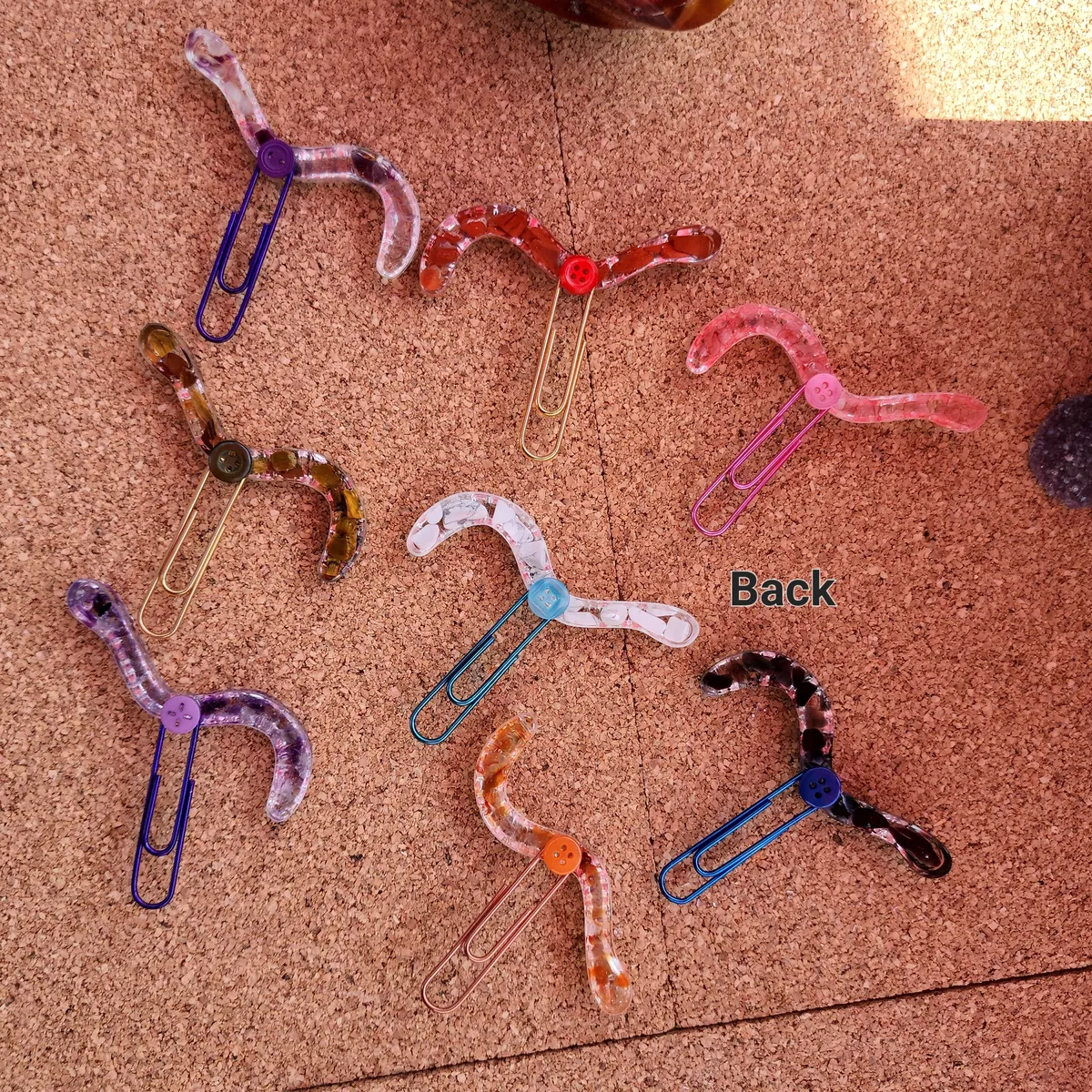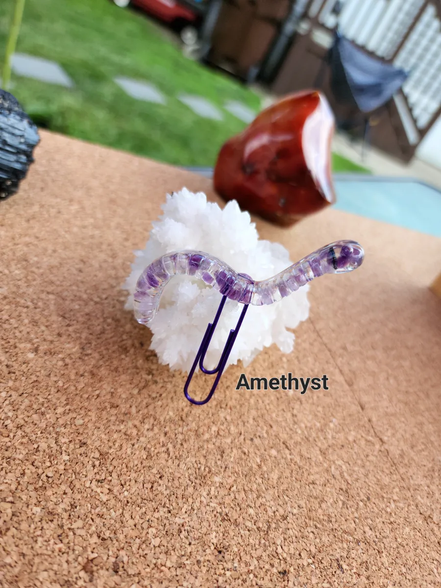 Keep your place in your favorite books with a touch of calming elegance using our Amethyst Bookworm Paperclip Bookmark. Crafted from genuine amethyst gemstone, known for its beautiful purple hues and soothing spiritual properties, this bookmark features a charming bookworm design attached to a sturdy paperclip for easy and secure use. Perfect for readers who appreciate unique and meaningful accessories, it adds a serene and stylish touch to your reading routine. Lightweight and durable, it makes a thoughtful gift for book lovers and gemstone enthusiasts.