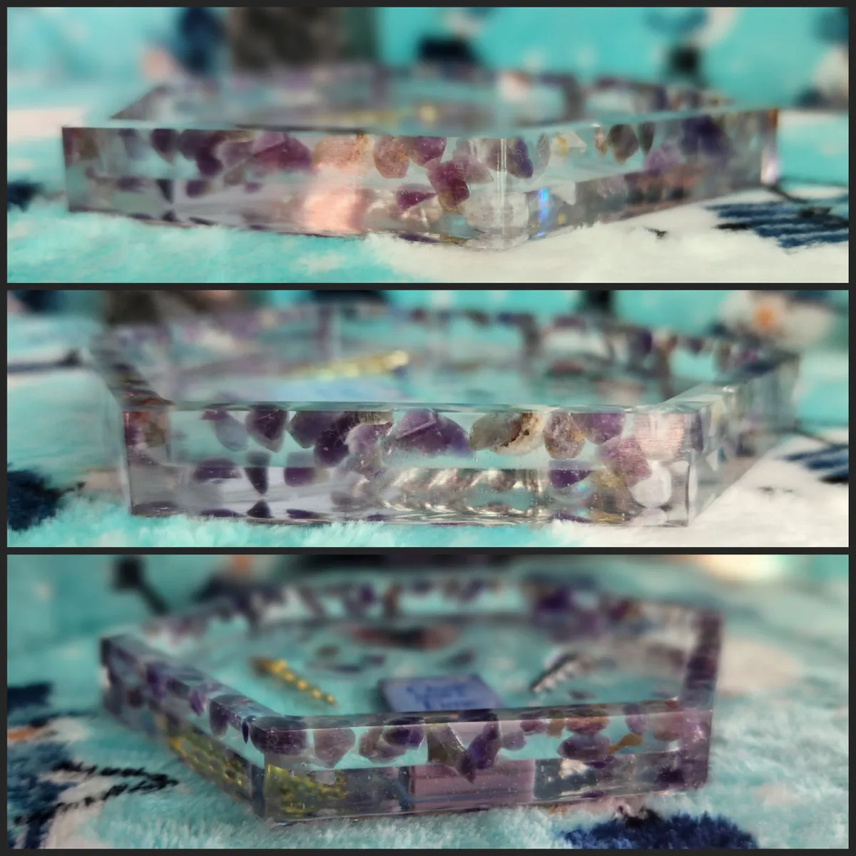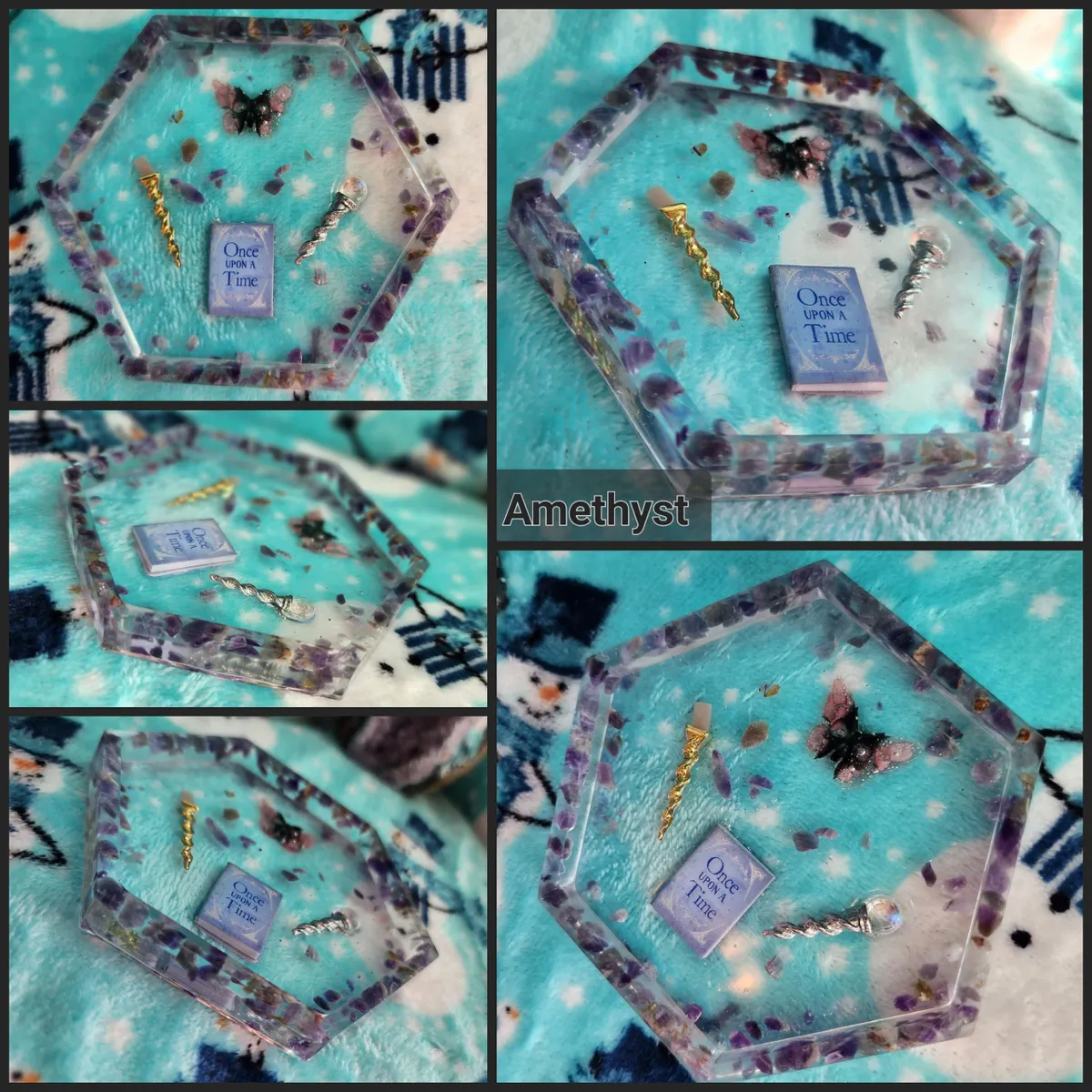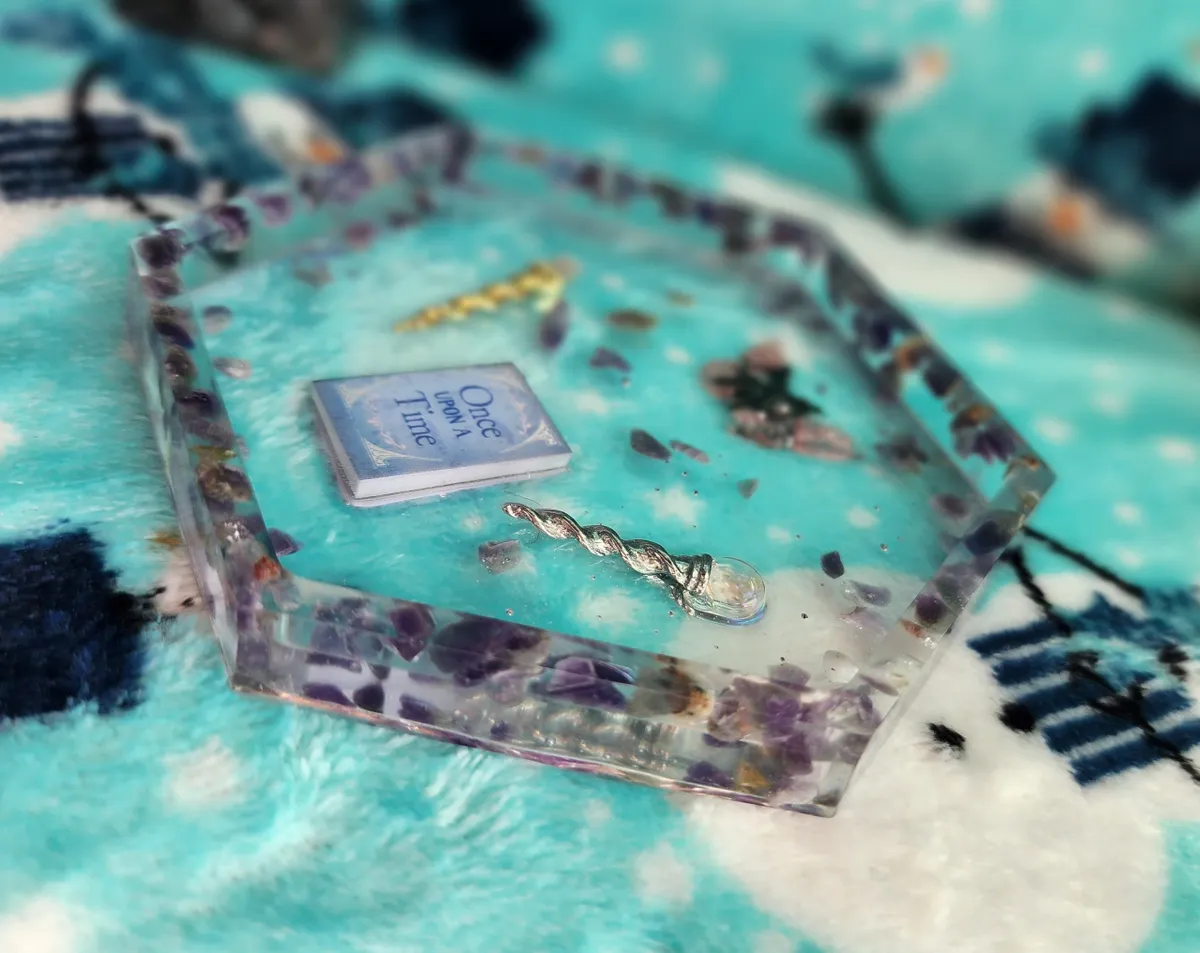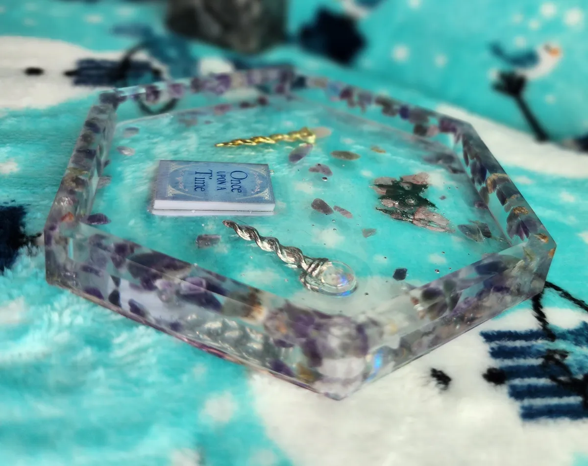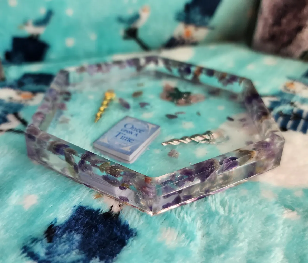 Introducing our Amethyst Shallow Trinket Dish/Coaster with whimsical Trinkets – the ultimate fusion of elegance and playfulness! This enchanting creation is a craft lover’s dream come true. Each photograph captures the essence of this captivating piece, showcasing a hexagonal shape, perfectly sized to hold your most cherished trinkets or serve as a charming coaster. But wait, there’s more! Adorning this delightful dish are an array of whimsical trinkets, adding a touch of whimsy to any space. Crafted with utmost precision and attention to detail, this Amethyst Shallow Trinket Dish/Coaster is a must-have for those seeking a dash of creativity in their lives. Get ready to infuse your space with a witty dose of originality!