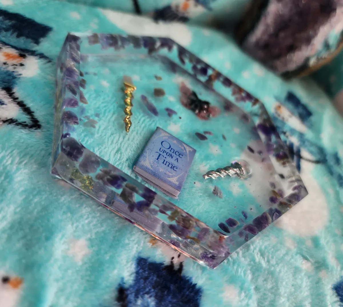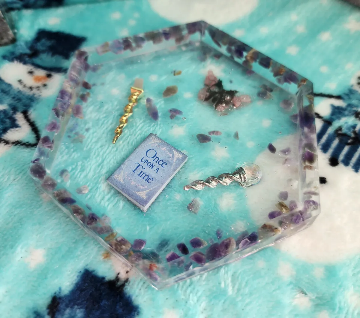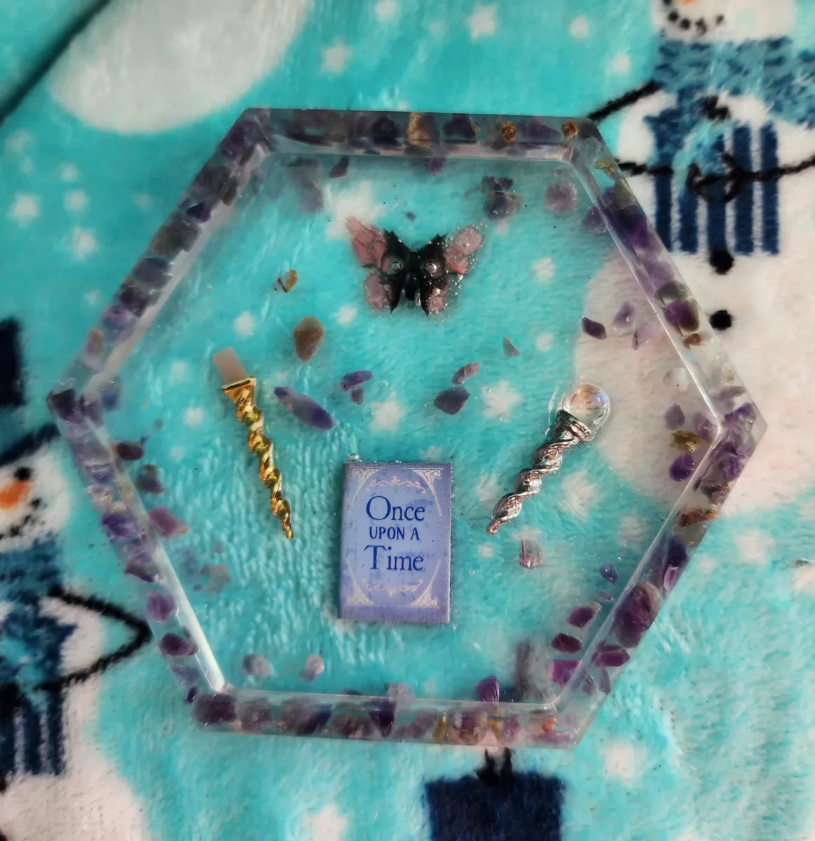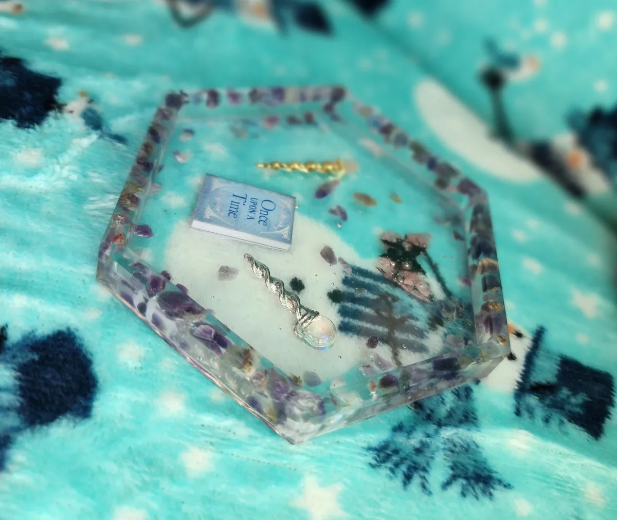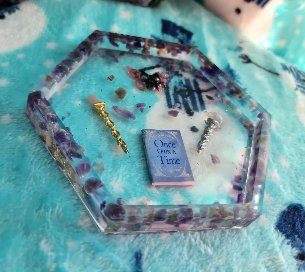 Introducing our Amethyst Shallow Trinket Dish/Coaster with whimsical Trinkets – the ultimate fusion of elegance and playfulness! This enchanting creation is a craft lover’s dream come true. Each photograph captures the essence of this captivating piece, showcasing a hexagonal shape, perfectly sized to hold your most cherished trinkets or serve as a charming coaster. But wait, there’s more! Adorning this delightful dish are an array of whimsical trinkets, adding a touch of whimsy to any space. Crafted with utmost precision and attention to detail, this Amethyst Shallow Trinket Dish/Coaster is a must-have for those seeking a dash of creativity in their lives. Get ready to infuse your space with a witty dose of originality!