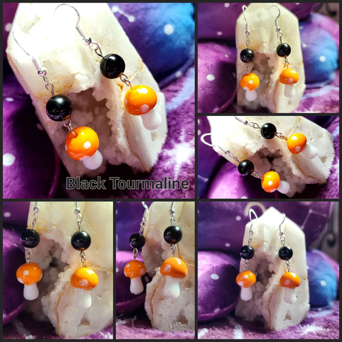 Introducing our exquisite Crystal Earrings with Glass Mushroom Charm, featuring a stunning array of gemstones including Black Tourmaline. Handcrafted with meticulous attention to detail, these earrings are a true embodiment of elegance and enchantment.