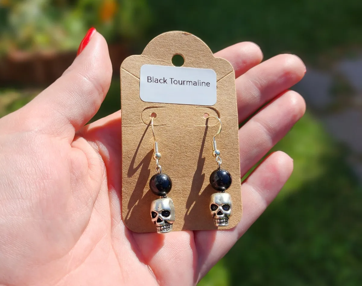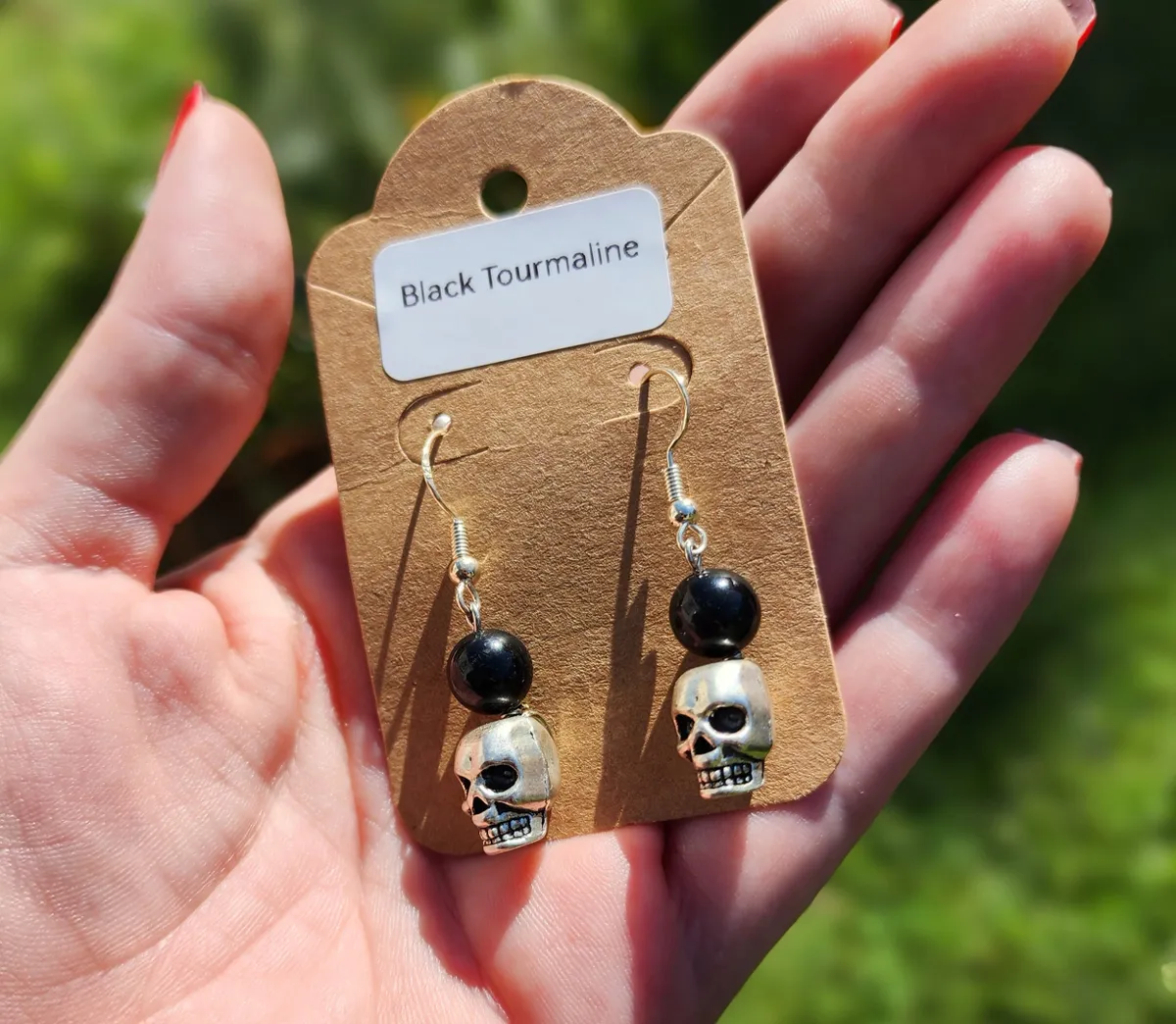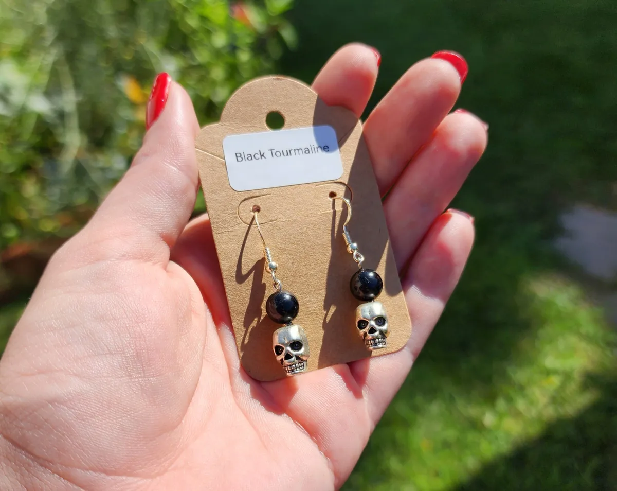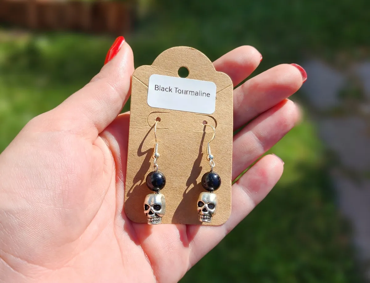 Add a touch of edge and mystery to your wardrobe with our Black Tourmaline Skull Earrings! These unique earrings feature skull charm hanging from black tourmaline beads that exude a bold and daring vibe. Each earring is carefully crafted to ensure durability and style, making them the perfect statement piece for any outfit. Whether you’re heading to a concert or just want to add some edge to your everyday look, these earrings are sure to make a statement. Embrace your inner rockstar and rock these Black Tourmaline Skull Earrings with confidence!