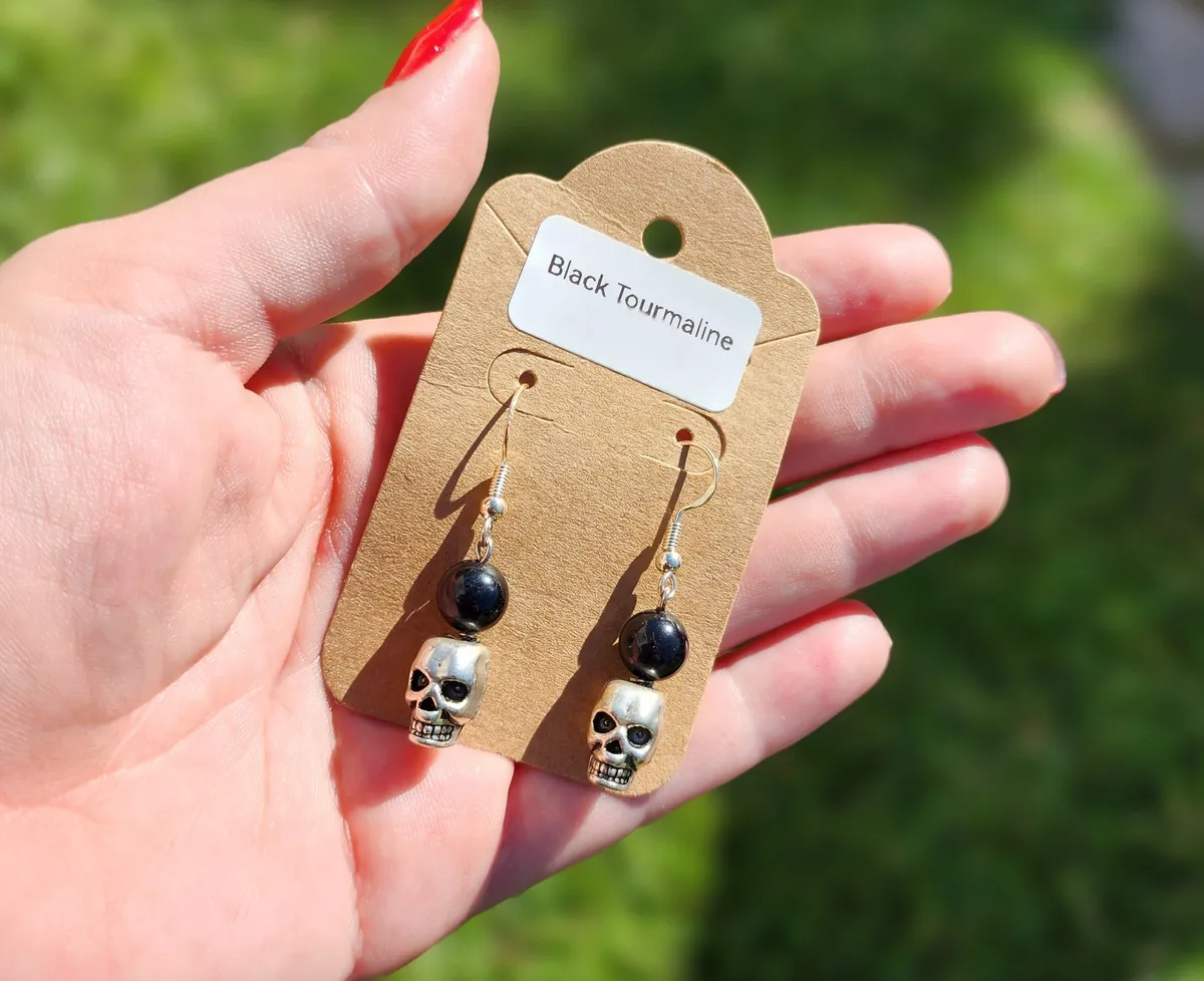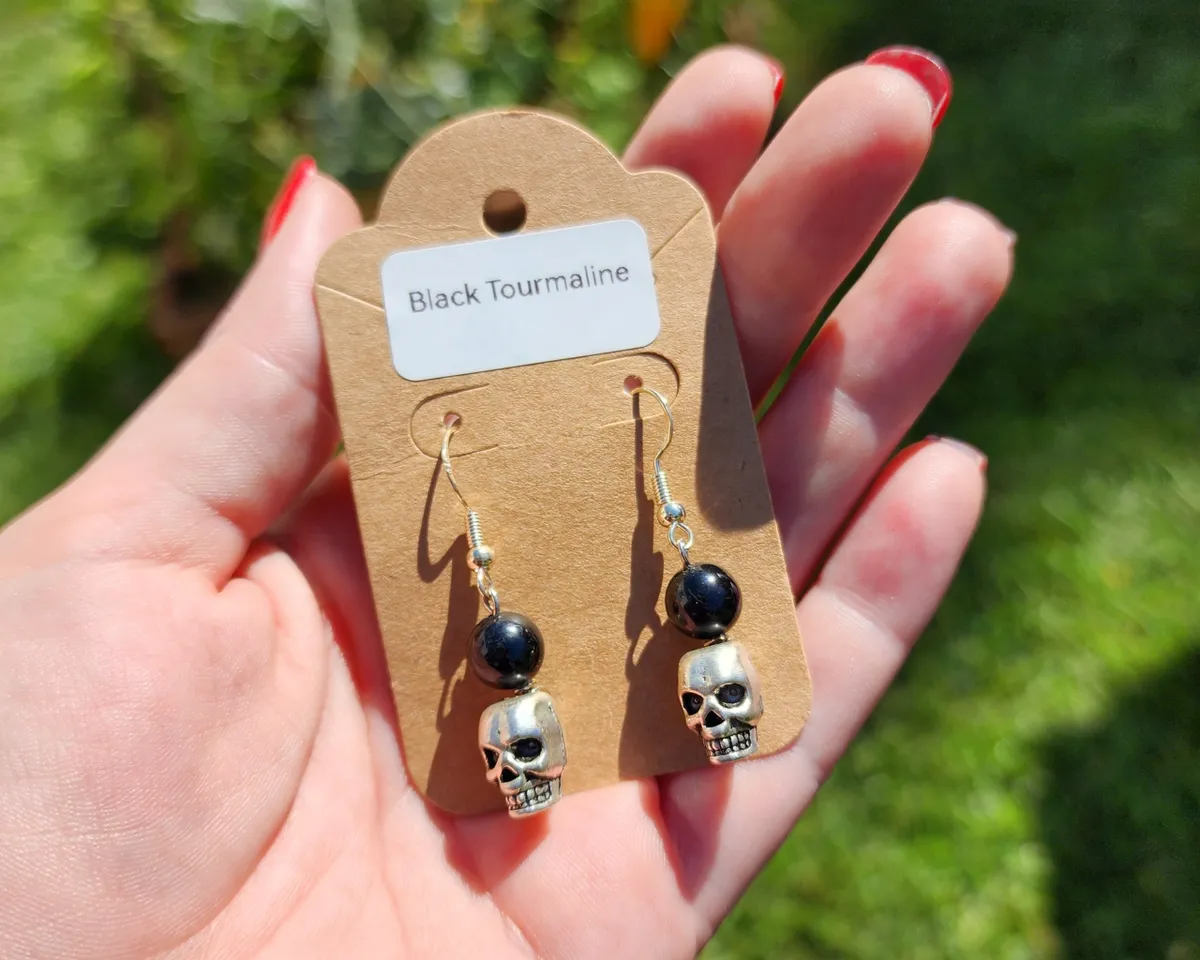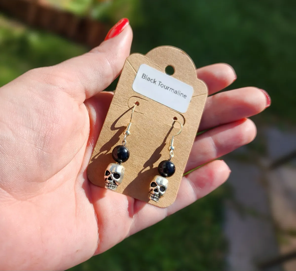 Add a touch of edge and mystery to your wardrobe with our Black Tourmaline Skull Earrings! These unique earrings feature skull charm hanging from black tourmaline beads that exude a bold and daring vibe. Each earring is carefully crafted to ensure durability and style, making them the perfect statement piece for any outfit. Whether you’re heading to a concert or just want to add some edge to your everyday look, these earrings are sure to make a statement. Embrace your inner rockstar and rock these Black Tourmaline Skull Earrings with confidence!