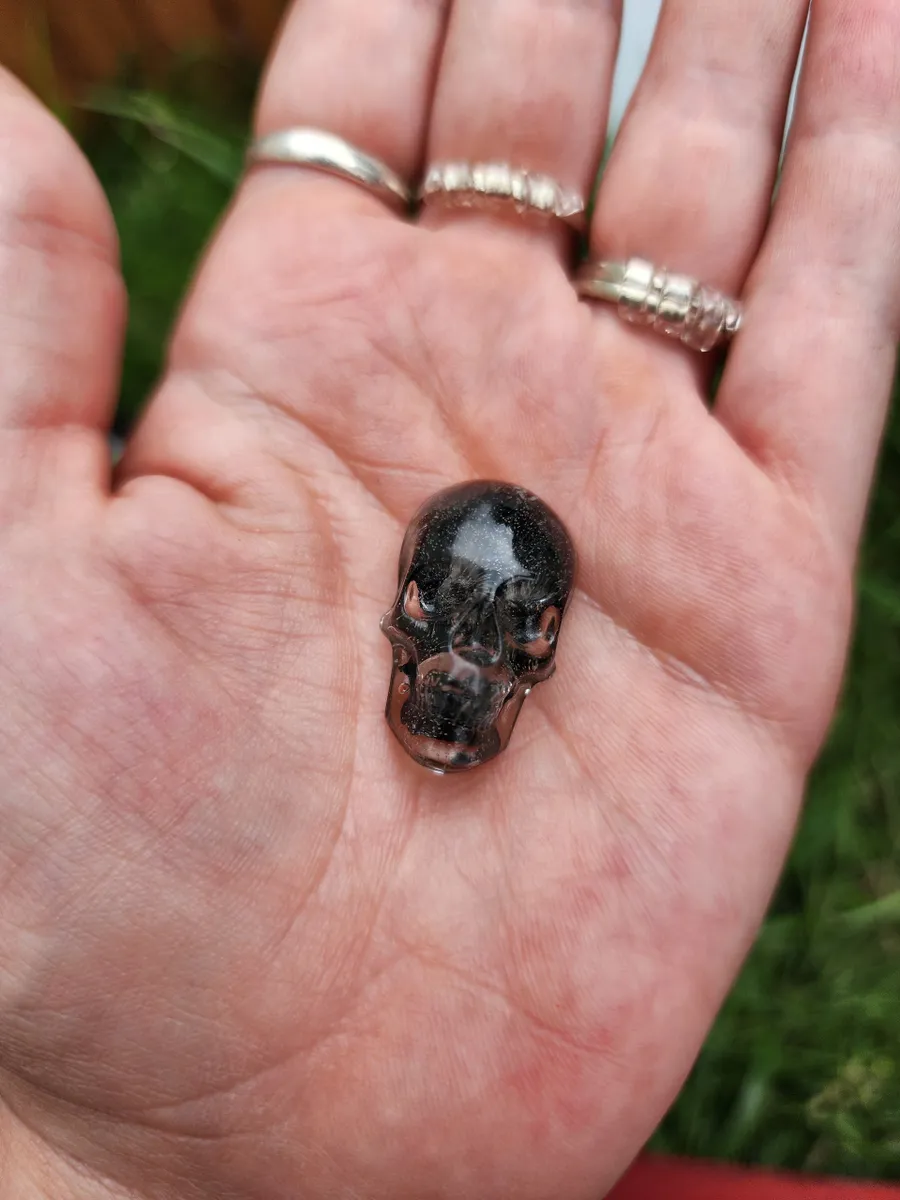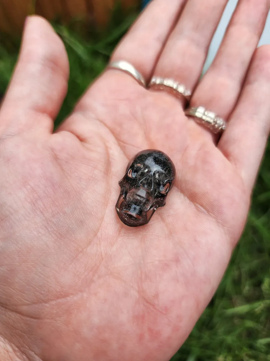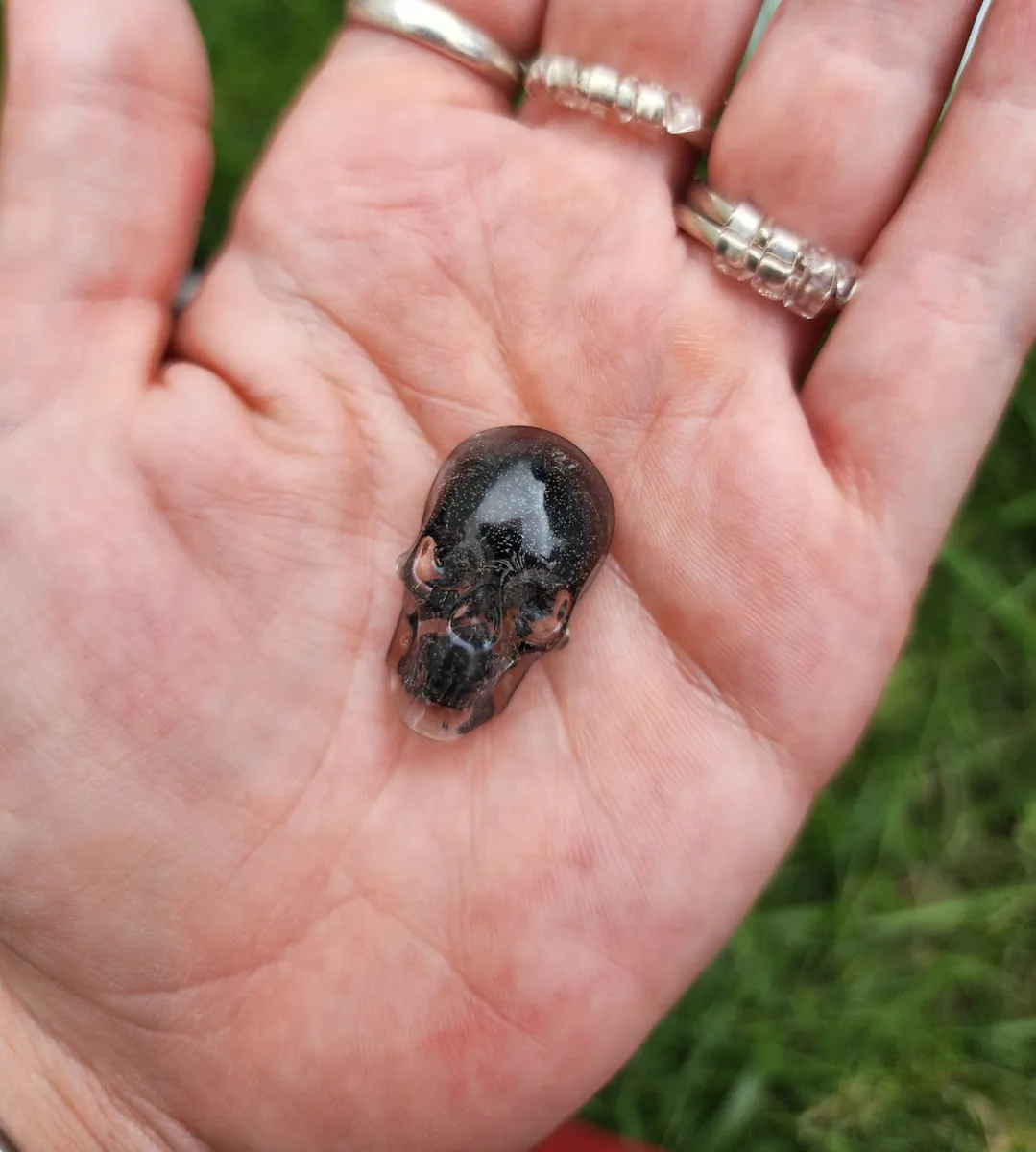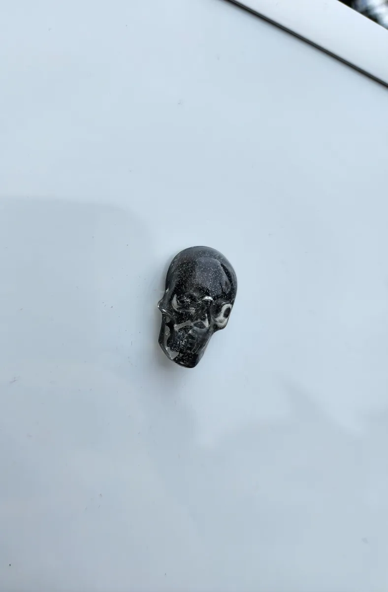 Introducing our Black Tourmaline Skull Magnet! Add a touch of mystique and protection to your space with this unique and powerful crystal skull. Crafted from authentic black tourmaline, known for its grounding and protective properties, this small magnet is perfect for holding up notes, photos, or just adding a cool touch to your fridge or desk. The intricate details of the skull design make it a standout piece for any crystal enthusiast or collector. Embrace the energy of black tourmaline while adding a touch of edgy style to your decor with our Black Tourmaline Skull Magnet!