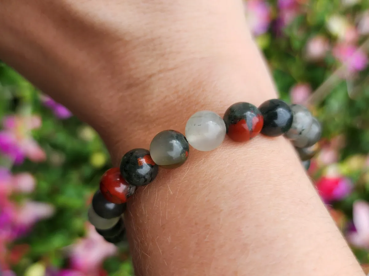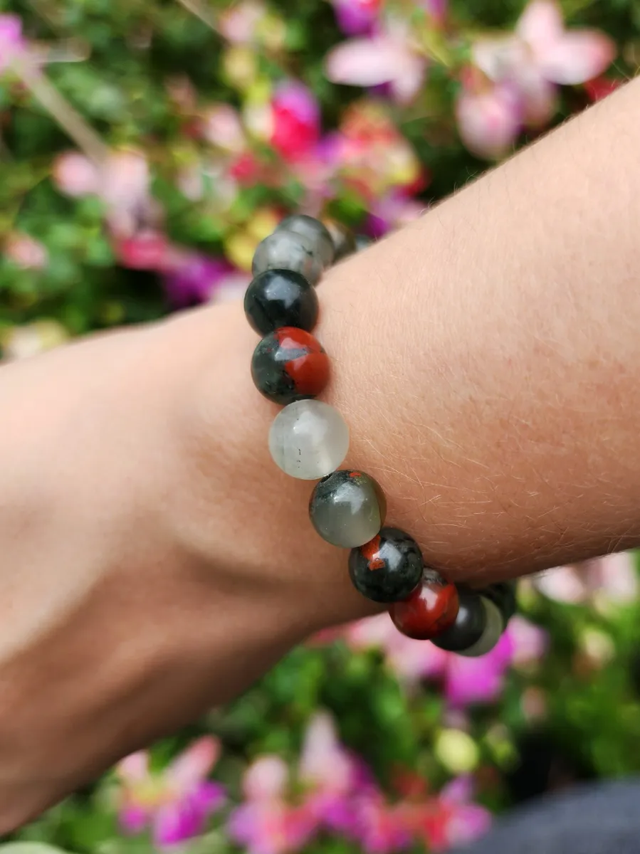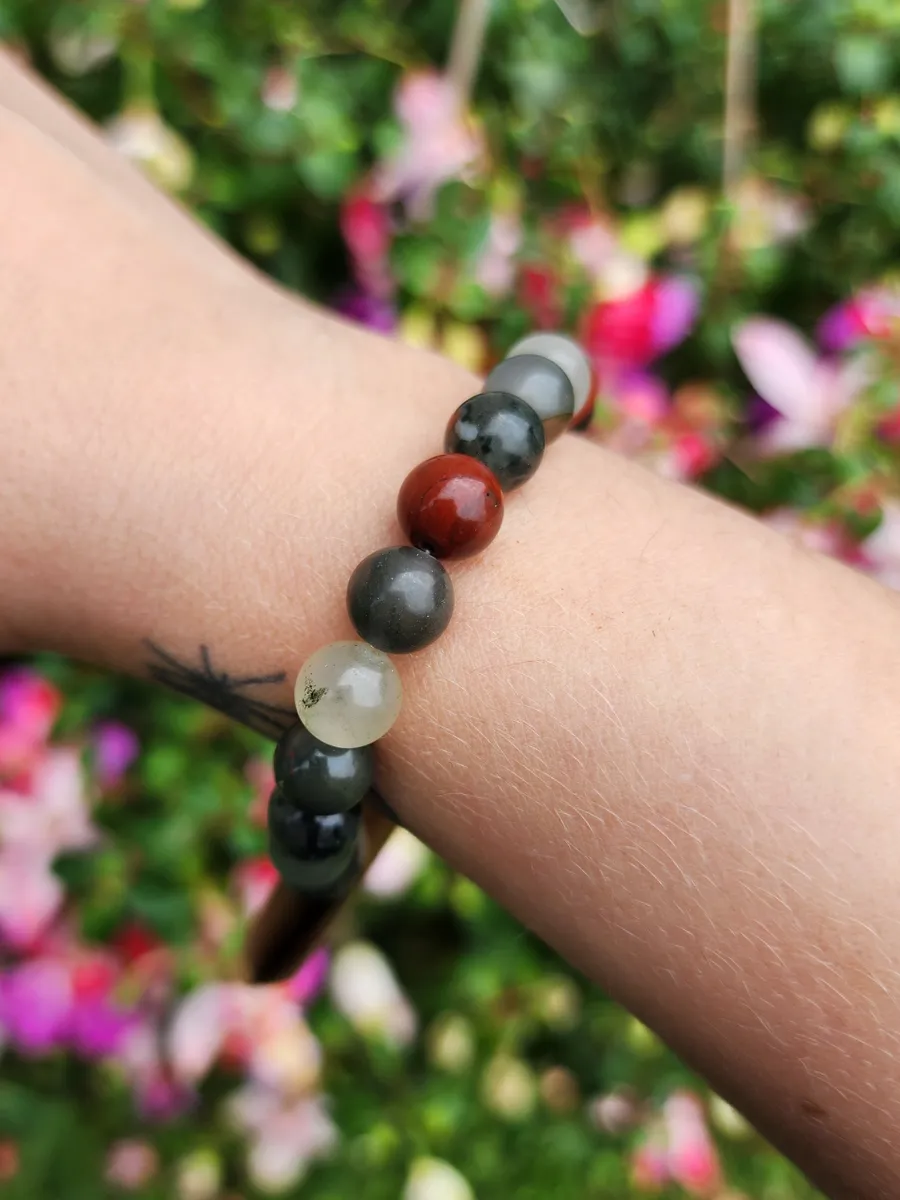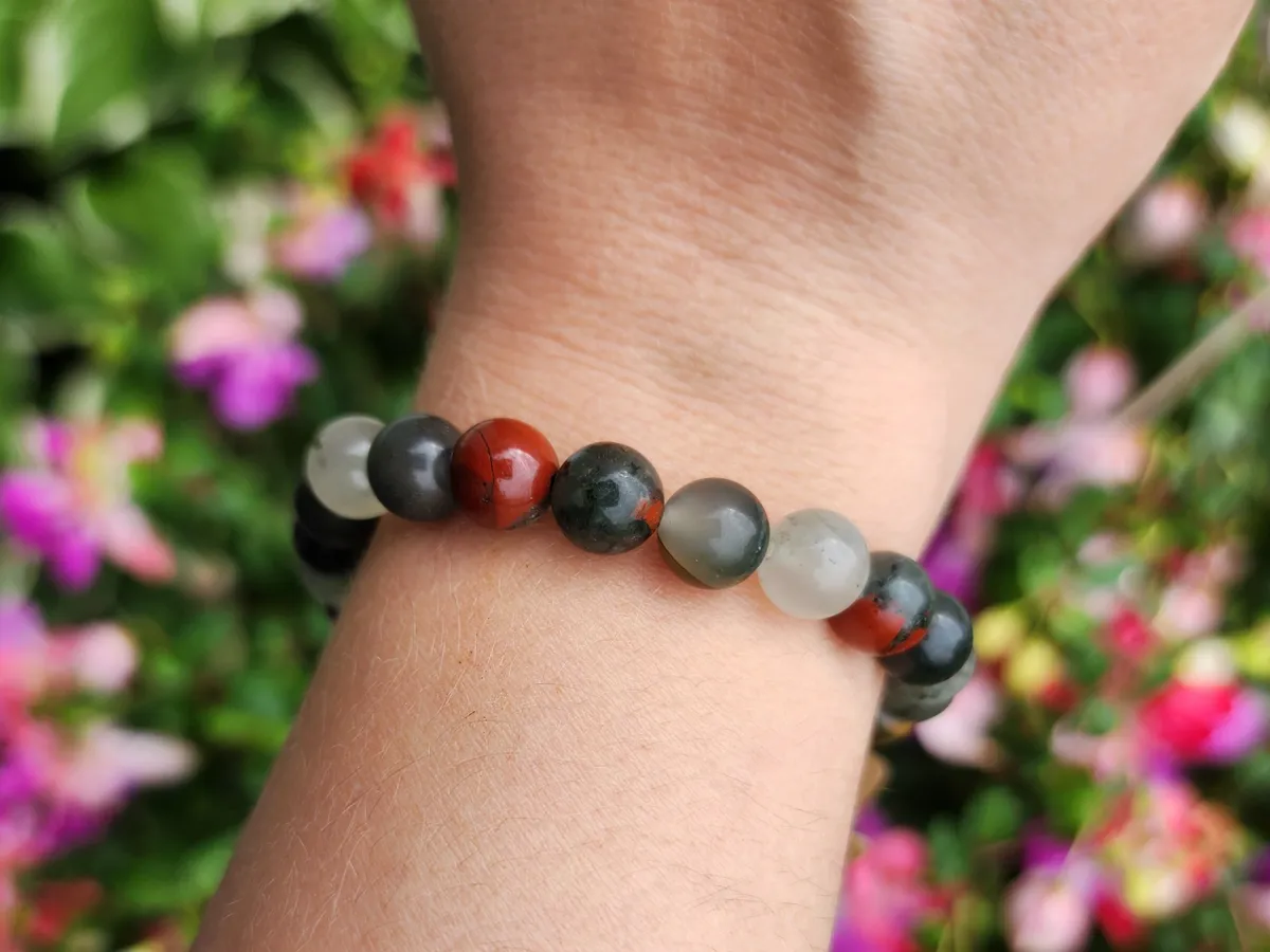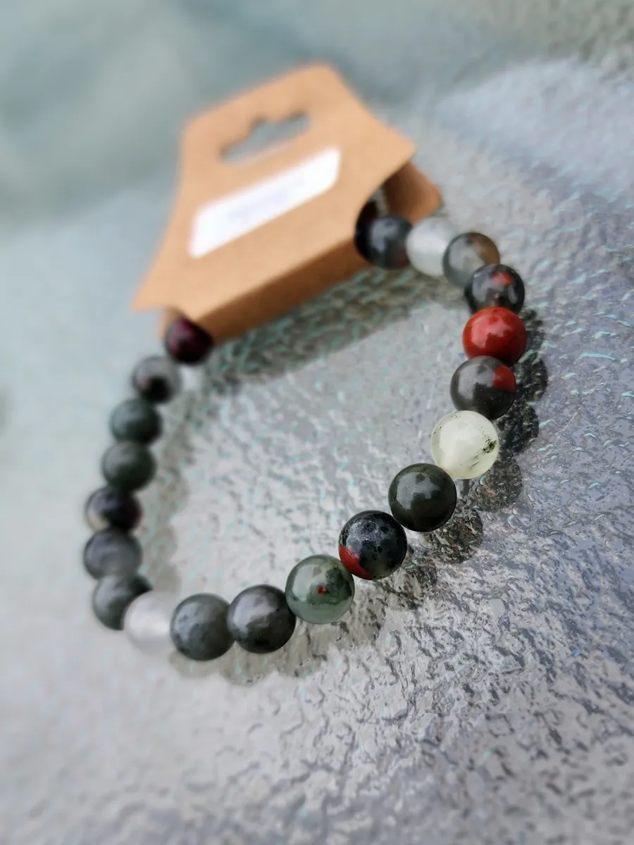 Introducing our stunning Bloodstone Bracelet! Handcrafted with care and attention to detail, this unique piece features a beautiful combination of bloodstone beads that radiate positive energy and healing properties. The vibrant colors add a pop of brightness to any outfit, making it the perfect accessory for any occasion. Whether you’re looking to add a touch of nature to your ensemble or seeking spiritual protection, this bracelet is sure to become a favorite in your jewelry collection. Treat yourself or surprise a loved one with this one-of-a-kind creation from our craft business. Embrace the beauty of nature and elevate your style with our Bloodstone Bracelet today!