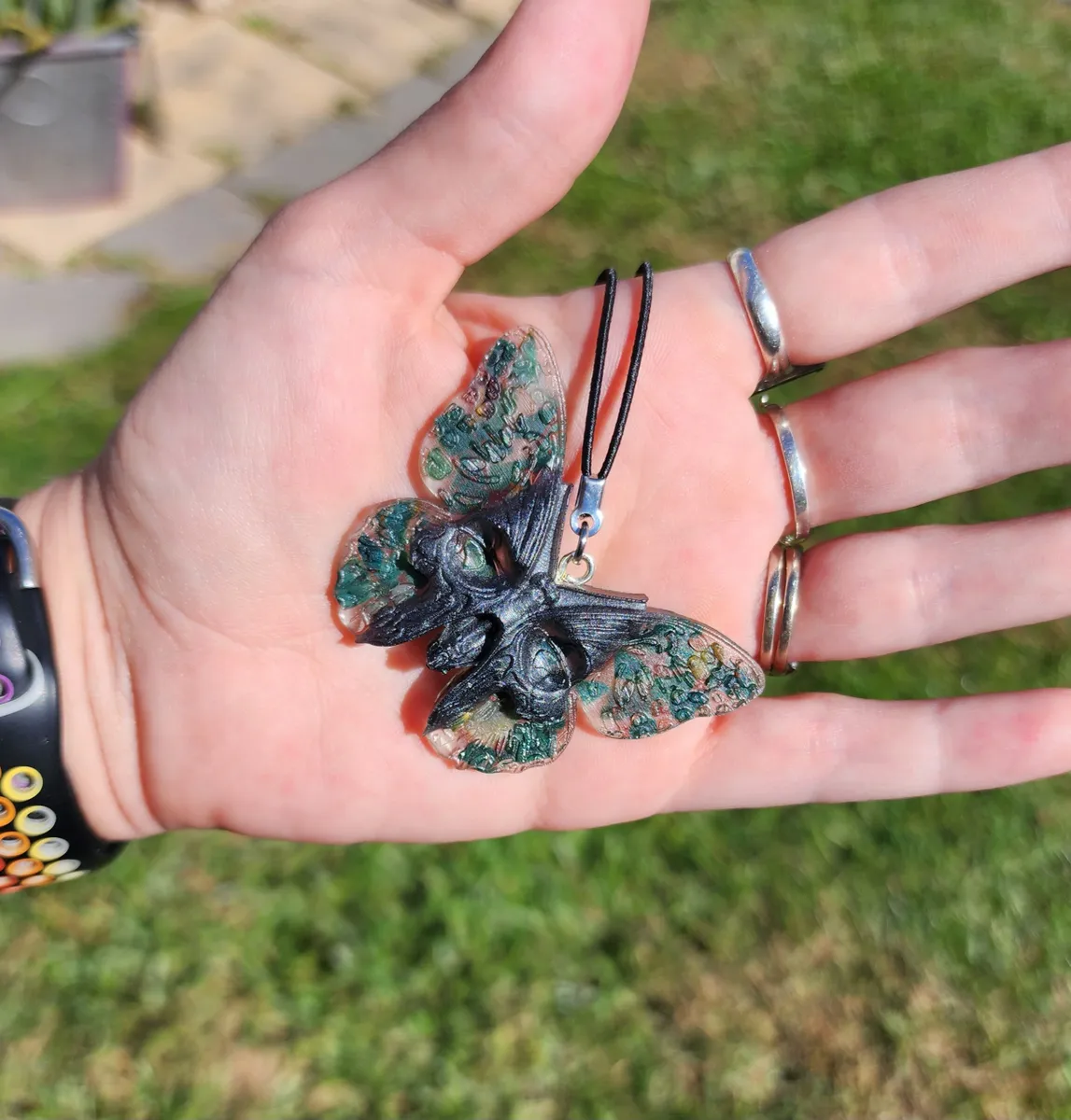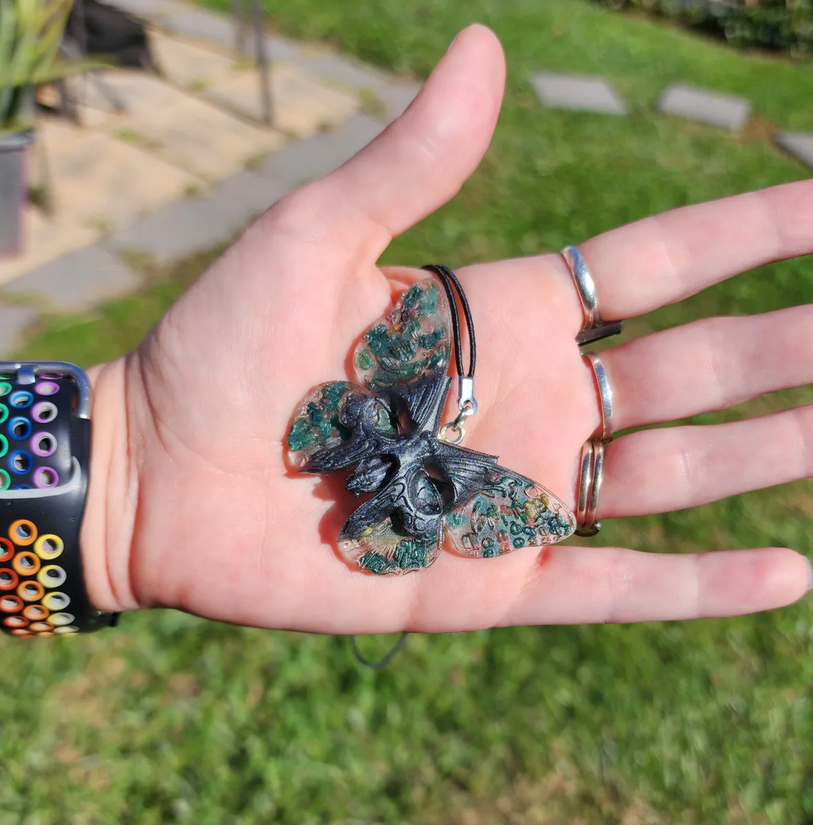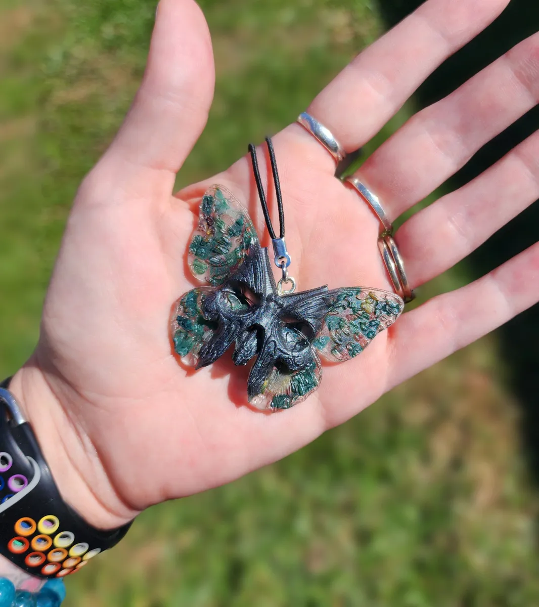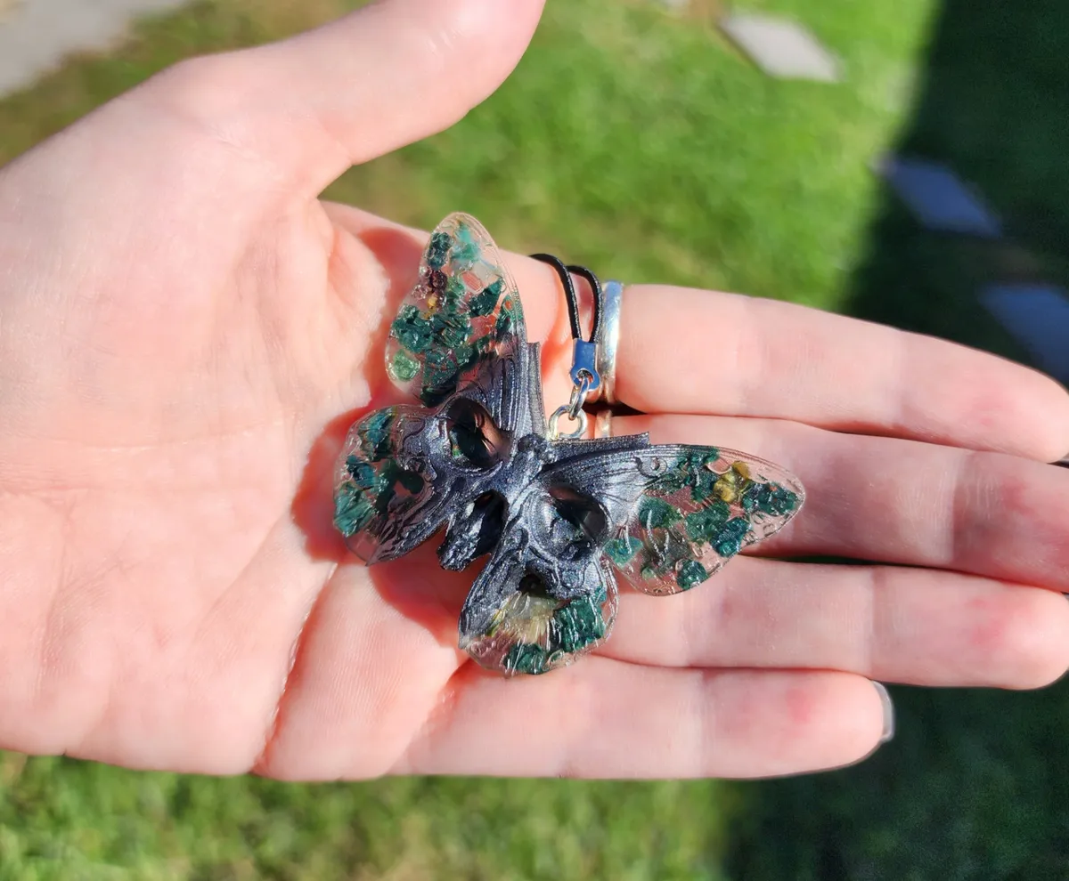 Introducing the Bloodstone Butterfly Skull Hanger, a truly unique and eye-catching addition to your home decor! This intricately crafted hanger features a stunning butterfly design with a skull face, creating a mesmerizing and edgy look! Hang it in your living room, bedroom, or even in your garden for a touch of mystique and charm. Whether you’re a lover of gothic decor or simply enjoy adding unconventional pieces to your space, the Bloodstone Butterfly Skull Hanger is sure to impress. Don’t miss out on this one-of-a-kind piece from our craft business collection