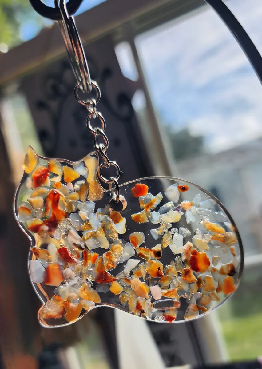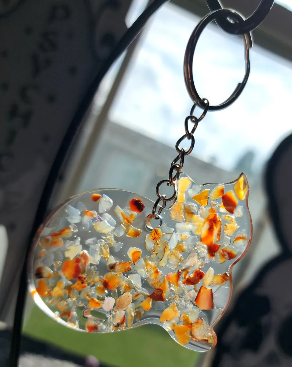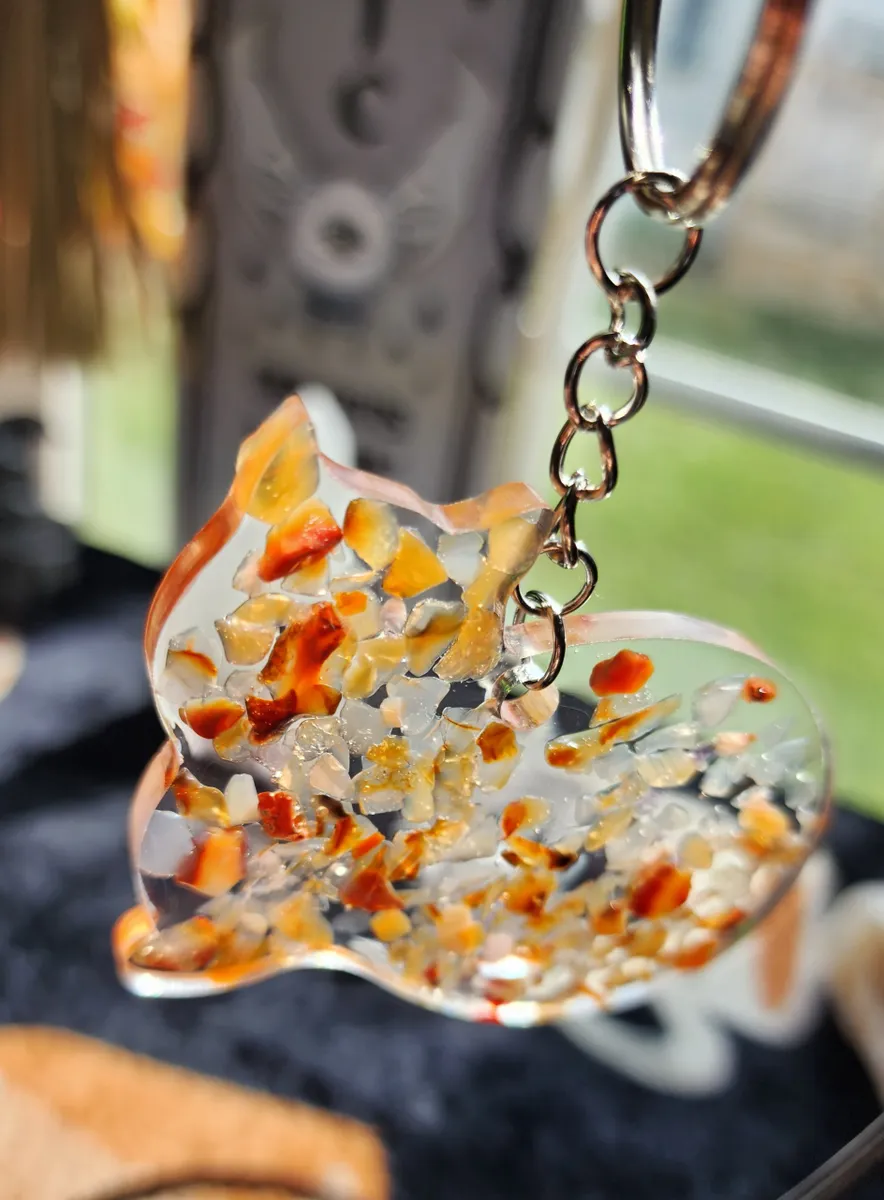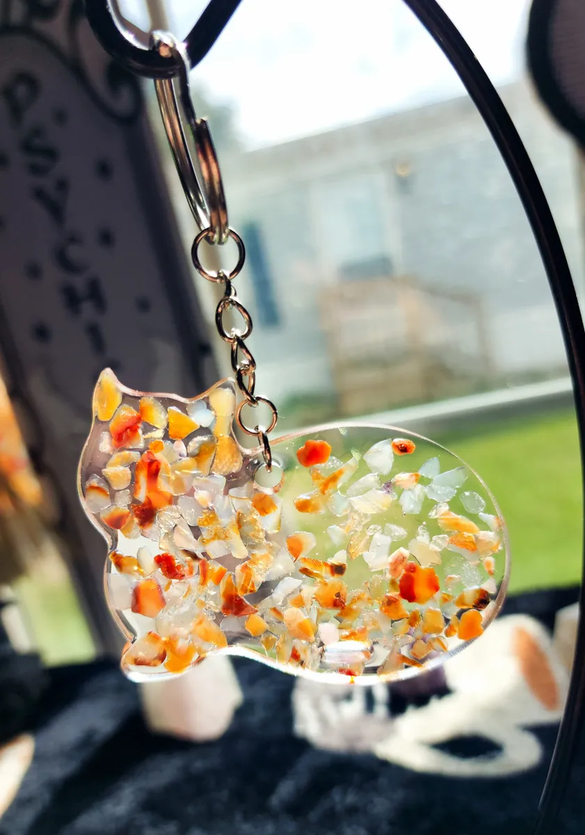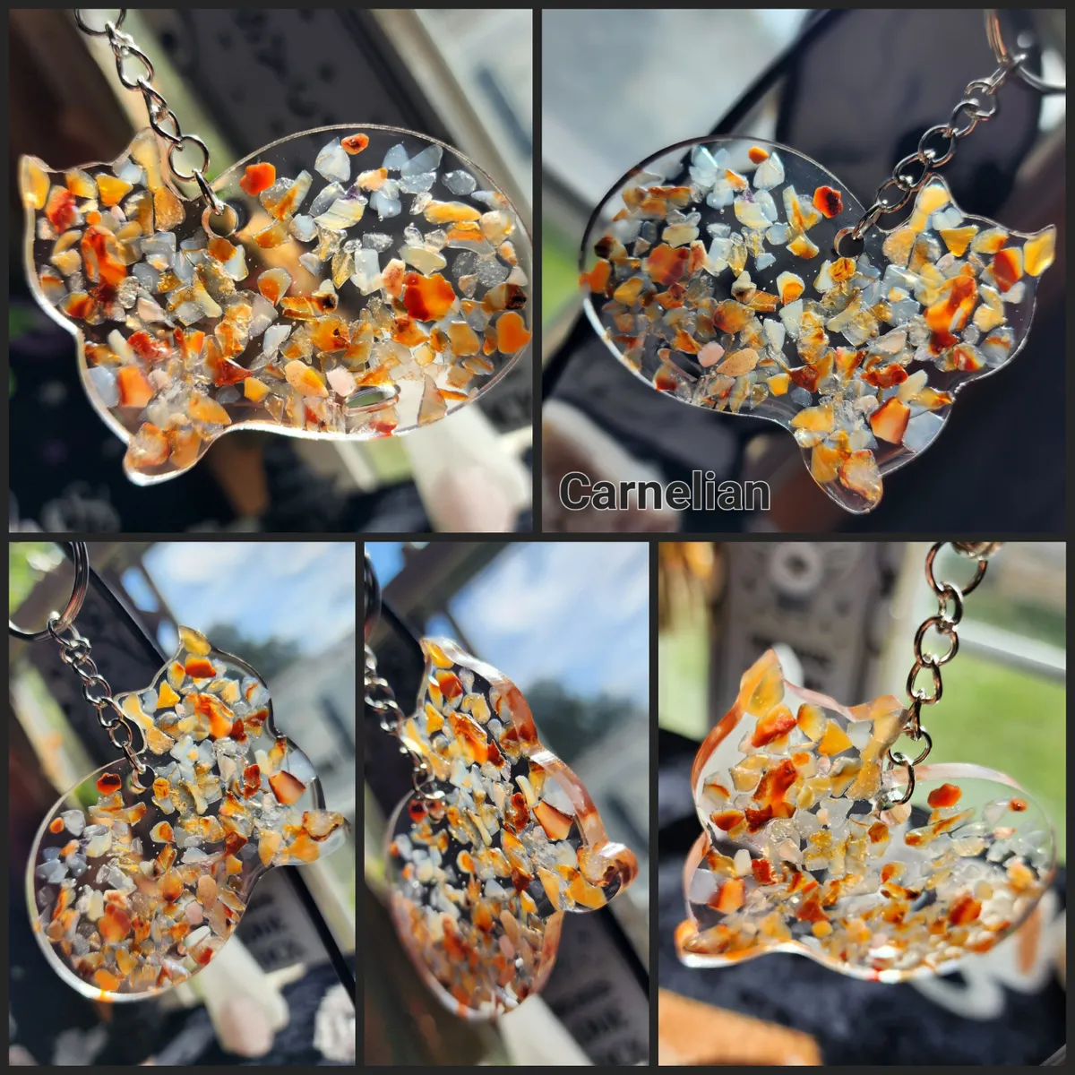 Introducing our exquisite Carnelian Cat Keychain, a delightful fusion of elegance and creativity. This meticulously crafted keychain showcases a captivating collage of images, taking you on a visual journey through the intricate process of its creation. Handcrafted by us, this accessory features a beautiful array of orange, yellow, and white stones on a sturdy metal chain. The vibrant hues of the carnelian beads exude warmth and positivity, while the charming cat design adds a touch of playfulness. Perfect for keeping your keys organized in style, this Carnelian Cat Keychain is an ideal accessory for any cat lover or a thoughtful gift for a dear friend. Elevate your everyday essentials with this unique and enchanting craft piece, exclusively from our craft_business.