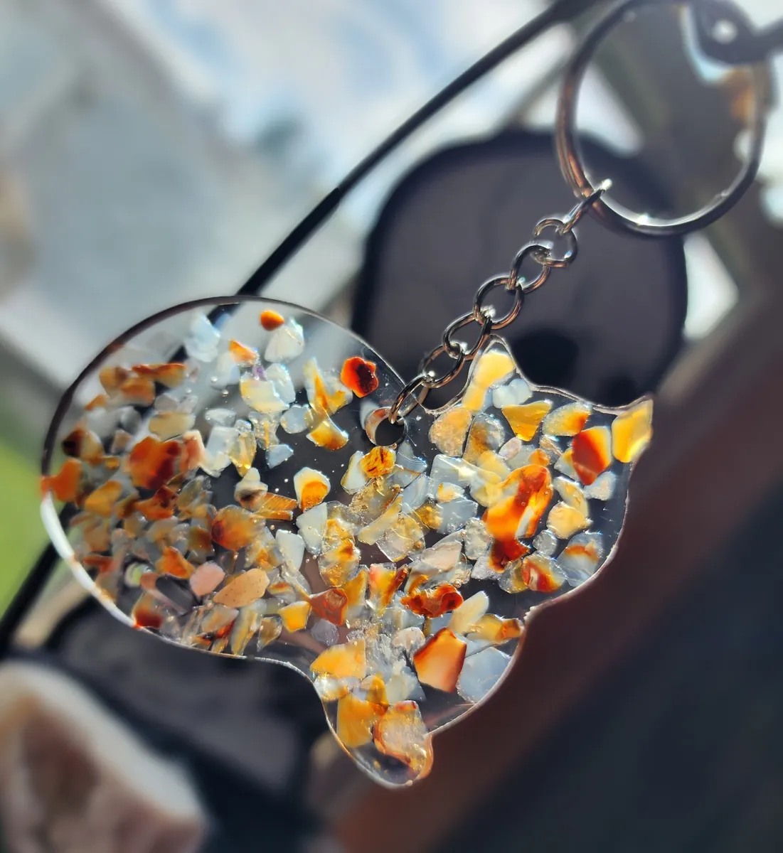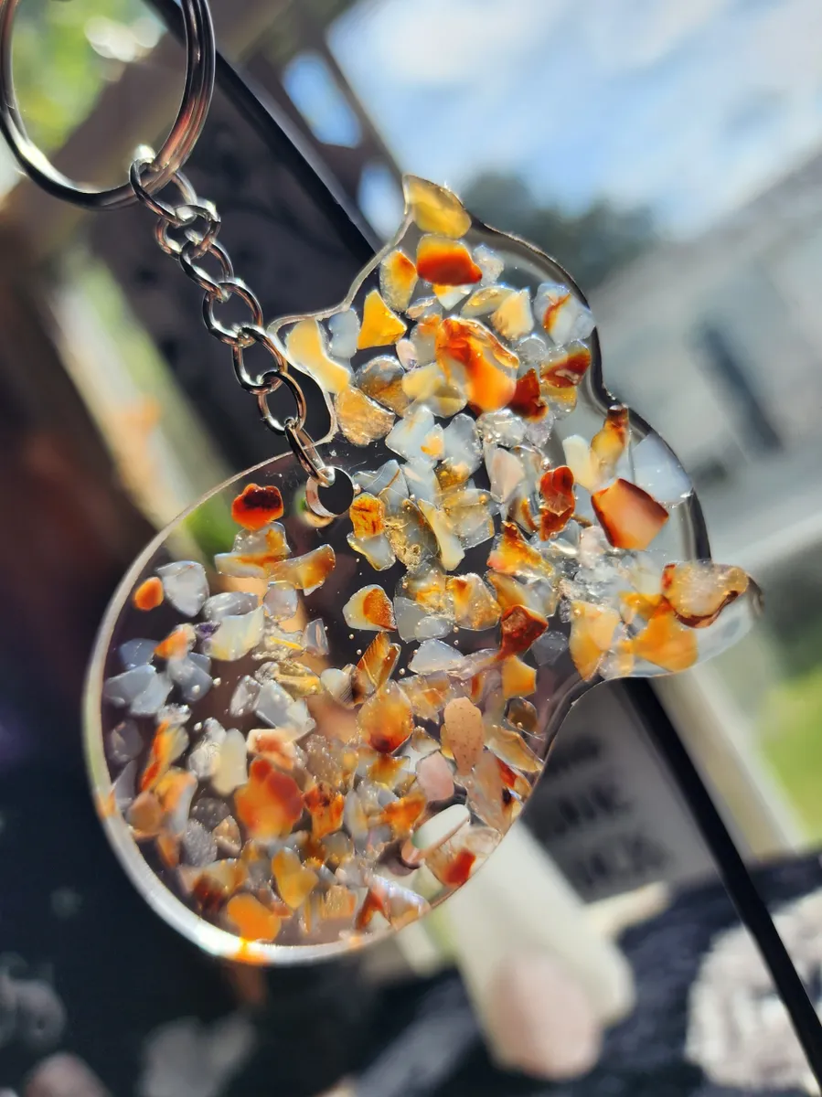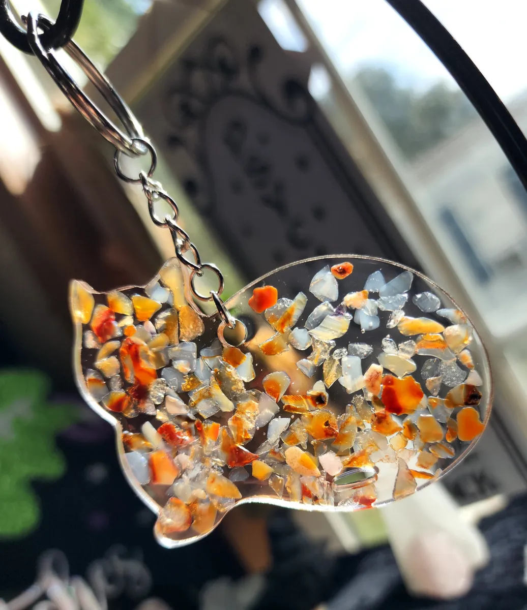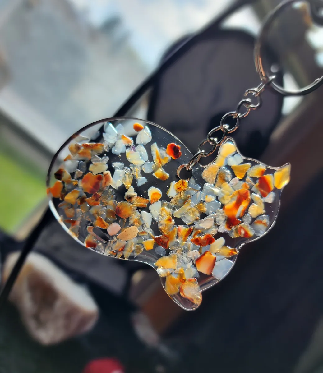 Introducing our exquisite Carnelian Cat Keychain, a delightful fusion of elegance and creativity. This meticulously crafted keychain showcases a captivating collage of images, taking you on a visual journey through the intricate process of its creation. Handcrafted by us, this accessory features a beautiful array of orange, yellow, and white stones on a sturdy metal chain. The vibrant hues of the carnelian beads exude warmth and positivity, while the charming cat design adds a touch of playfulness. Perfect for keeping your keys organized in style, this Carnelian Cat Keychain is an ideal accessory for any cat lover or a thoughtful gift for a dear friend. Elevate your everyday essentials with this unique and enchanting craft piece, exclusively from our craft_business.