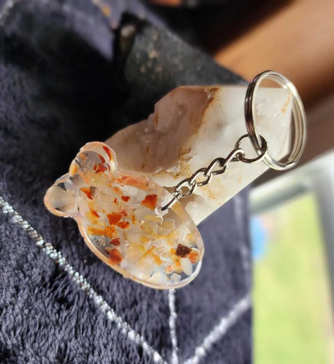 Introducing our Carnelian Fish Keychain, the ultimate accessory for all fish enthusiasts and crystal lovers! This whimsical keychain features a stunning collage of images that will surely catch everyone’s attention. With its vibrant and eye-catching design, this keychain showcases a beautiful carnelian fish charm, radiating positive energy and good luck. The crystal fish pendant adds a touch of elegance, making it a perfect accessory for your keys, bags, or even as a decorative piece. Crafted with meticulous attention to detail, this keychain is a must-have for any fashion-forward individual who appreciates unique and quirky accessories. So, dive into style with our Carnelian Fish Keychain and add a splash of charm to your daily routine!