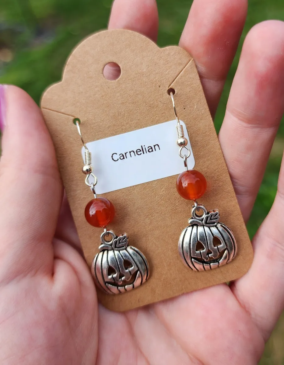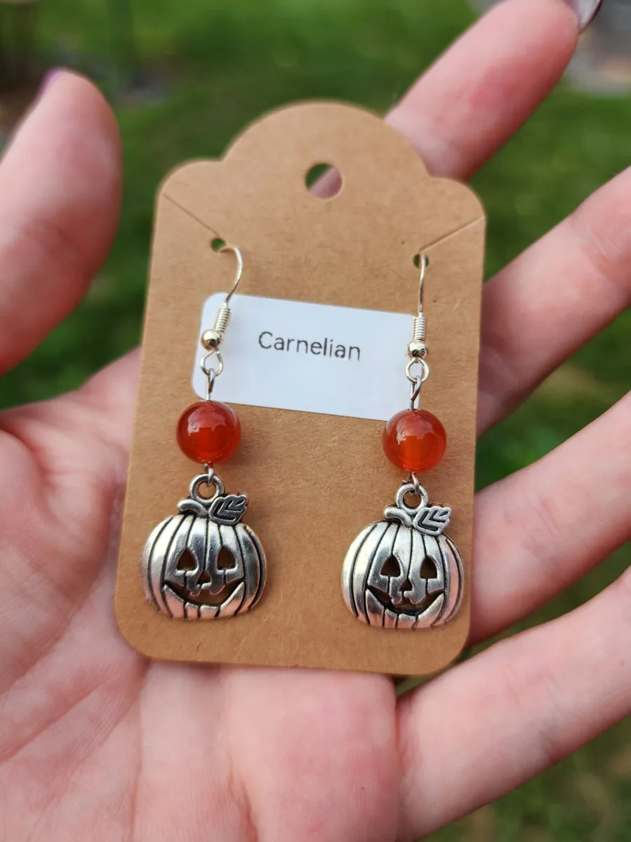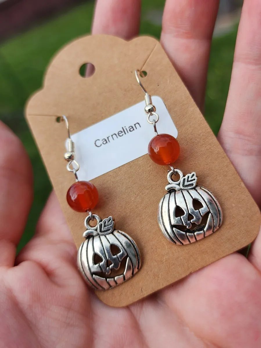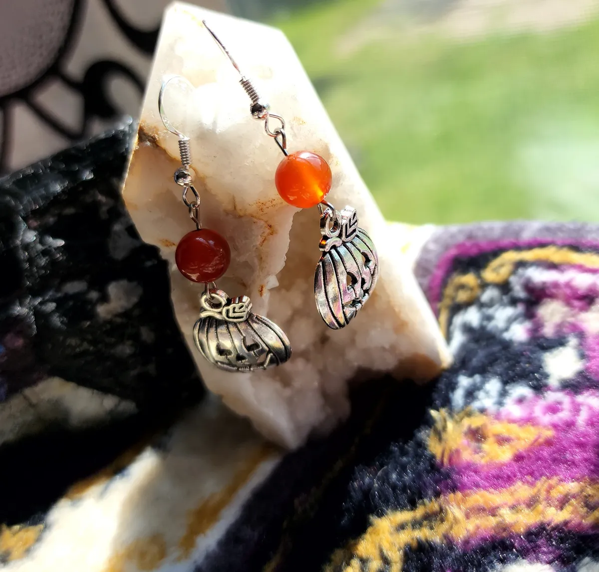 Get into the Halloween spirit with our Carnelian Jack OH Lantern Dangle Earrings! These festive earrings feature adorable pumpkin jack o lantern charms that are sure to add a touch of spooky fun to any outfit. Made with high-quality carnelian stones, these earrings are not only stylish but also bring positive energy and protection. Perfect for pumpkin lovers and Halloween enthusiasts, these earrings are a must-have accessory for the fall season. Whether you’re attending a costume party or just looking to add some seasonal flair to your look, these Carnelian Jack OH Lantern Dangle Earrings are sure to make a statement.