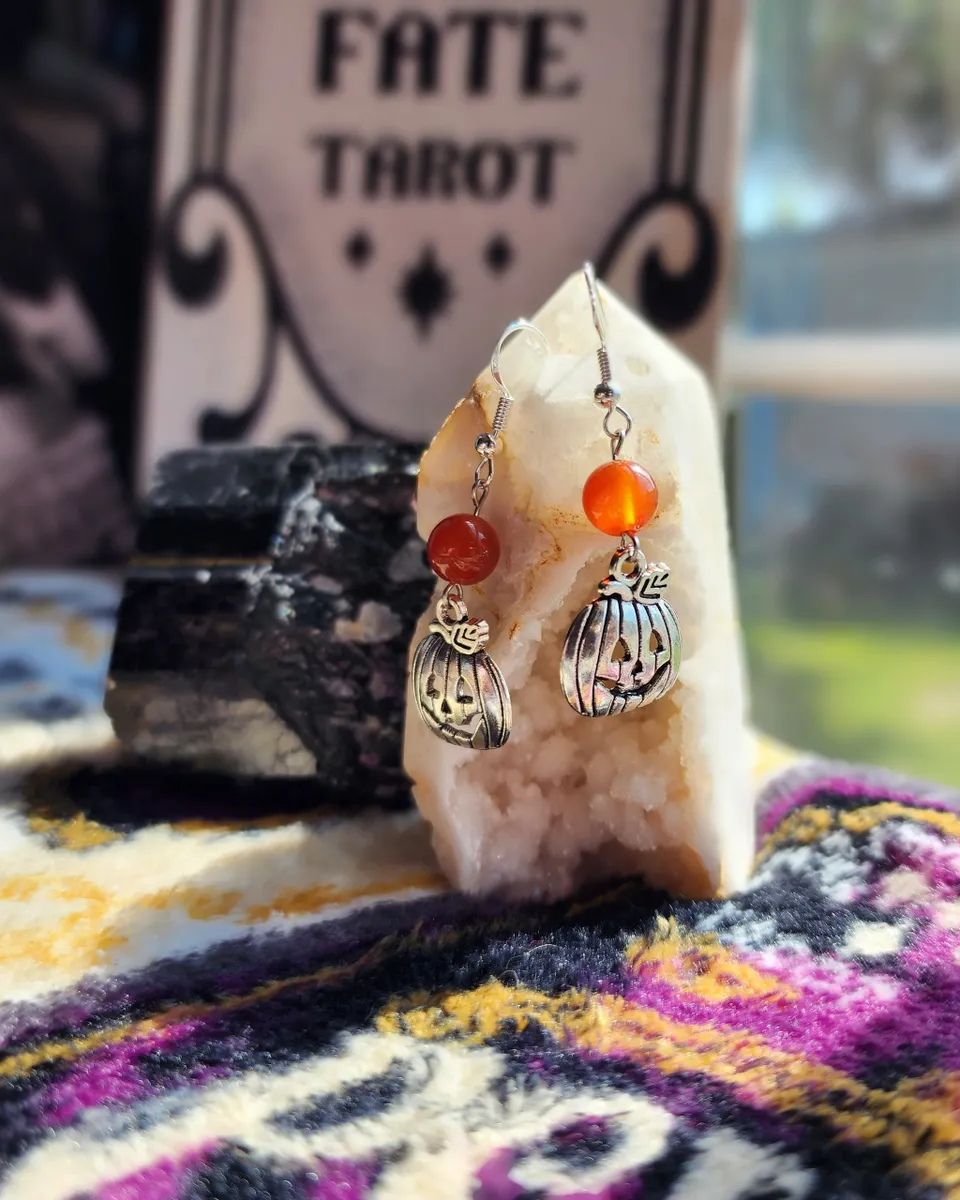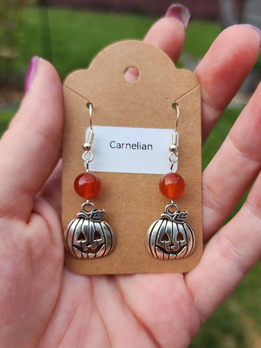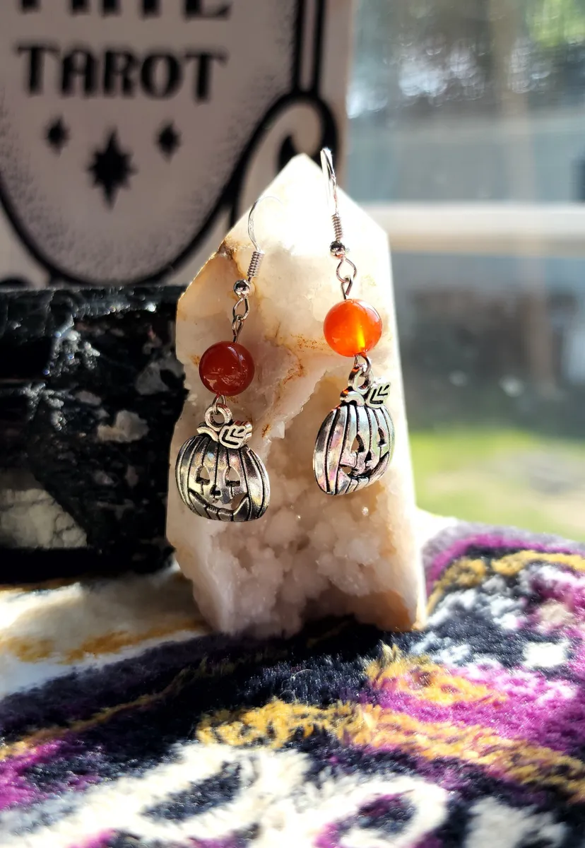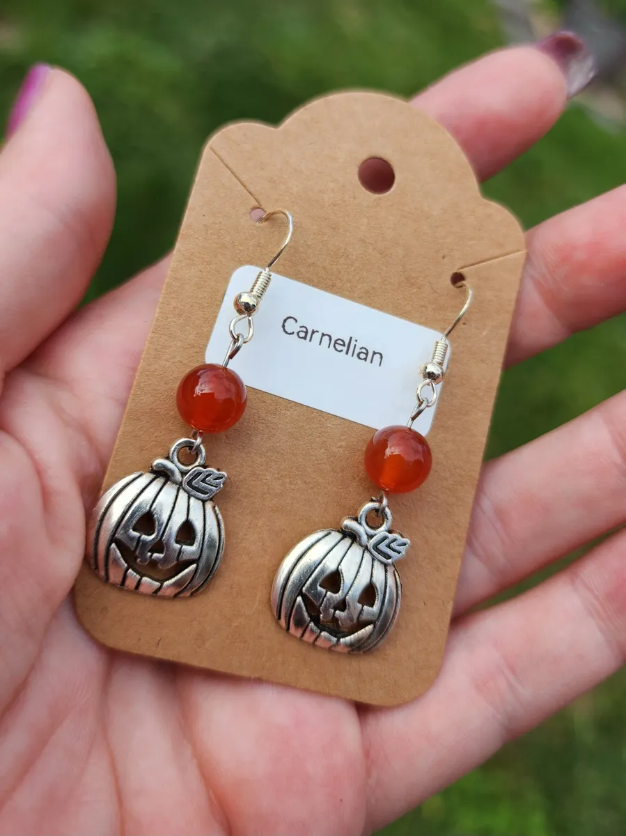 Get into the Halloween spirit with our Carnelian Jack OH Lantern Dangle Earrings! These festive earrings feature adorable pumpkin jack o lantern charms that are sure to add a touch of spooky fun to any outfit. Made with high-quality carnelian stones, these earrings are not only stylish but also bring positive energy and protection. Perfect for pumpkin lovers and Halloween enthusiasts, these earrings are a must-have accessory for the fall season. Whether you’re attending a costume party or just looking to add some seasonal flair to your look, these Carnelian Jack OH Lantern Dangle Earrings are sure to make a statement.