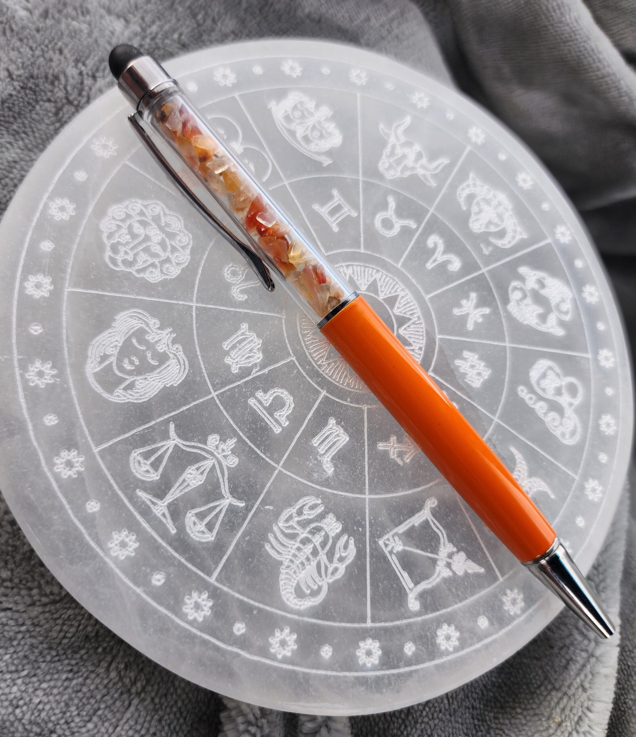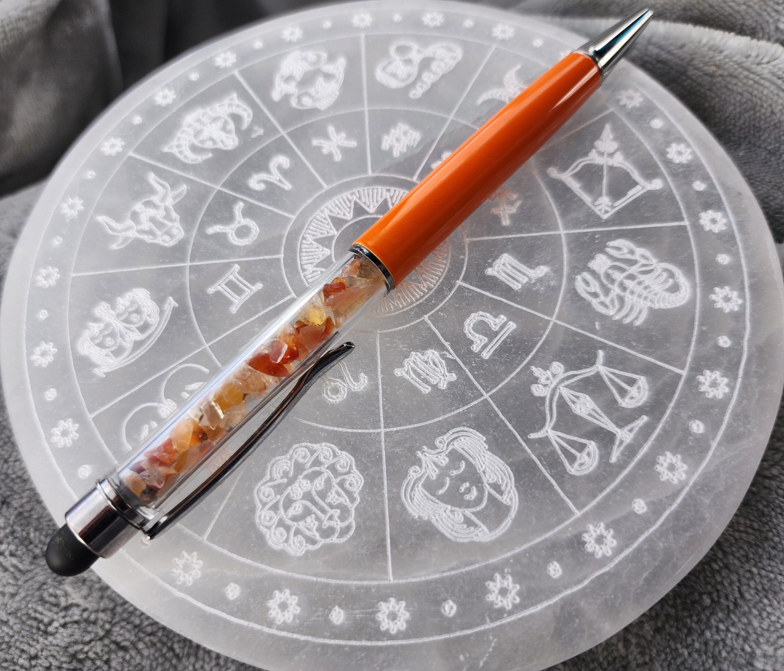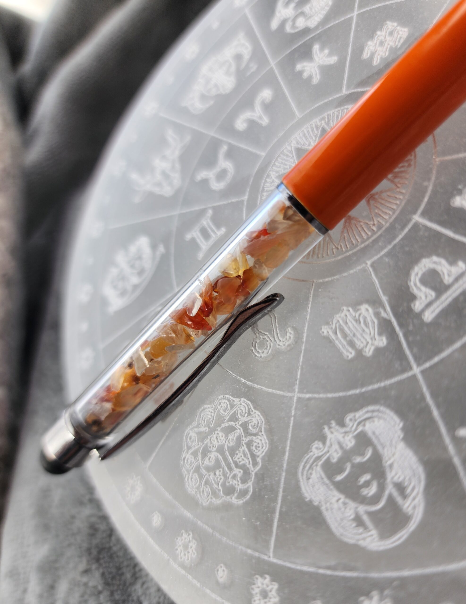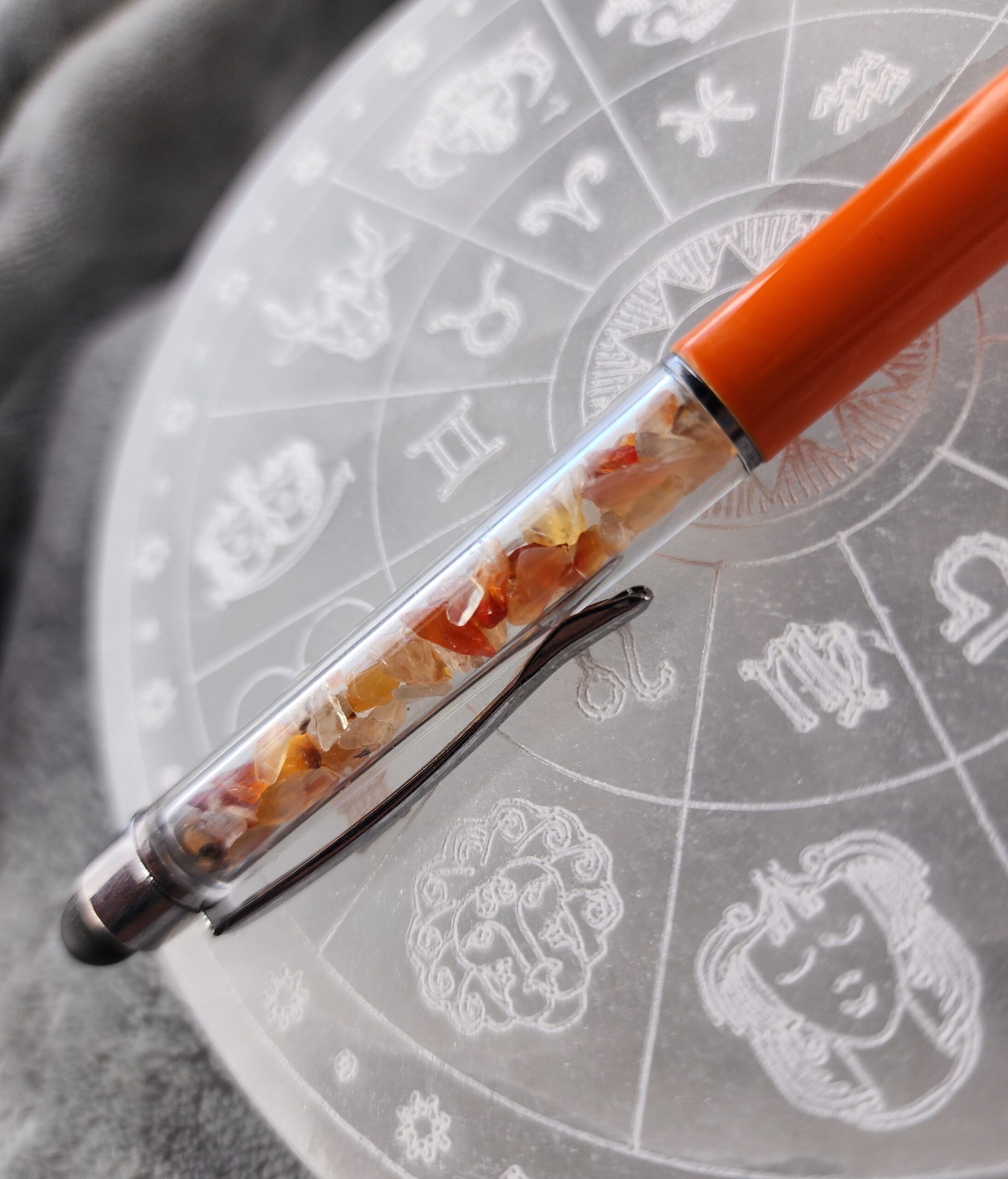 Infused with the warm glow of carnelian, this pen is more than a tool — it’s a little beacon of creativity. Scribble your thoughts, sketch your dreams, or swipe through your digital universe with smooth, effortless grace. Balanced and beautiful, it helps you find your flow, one inspired line at a time.