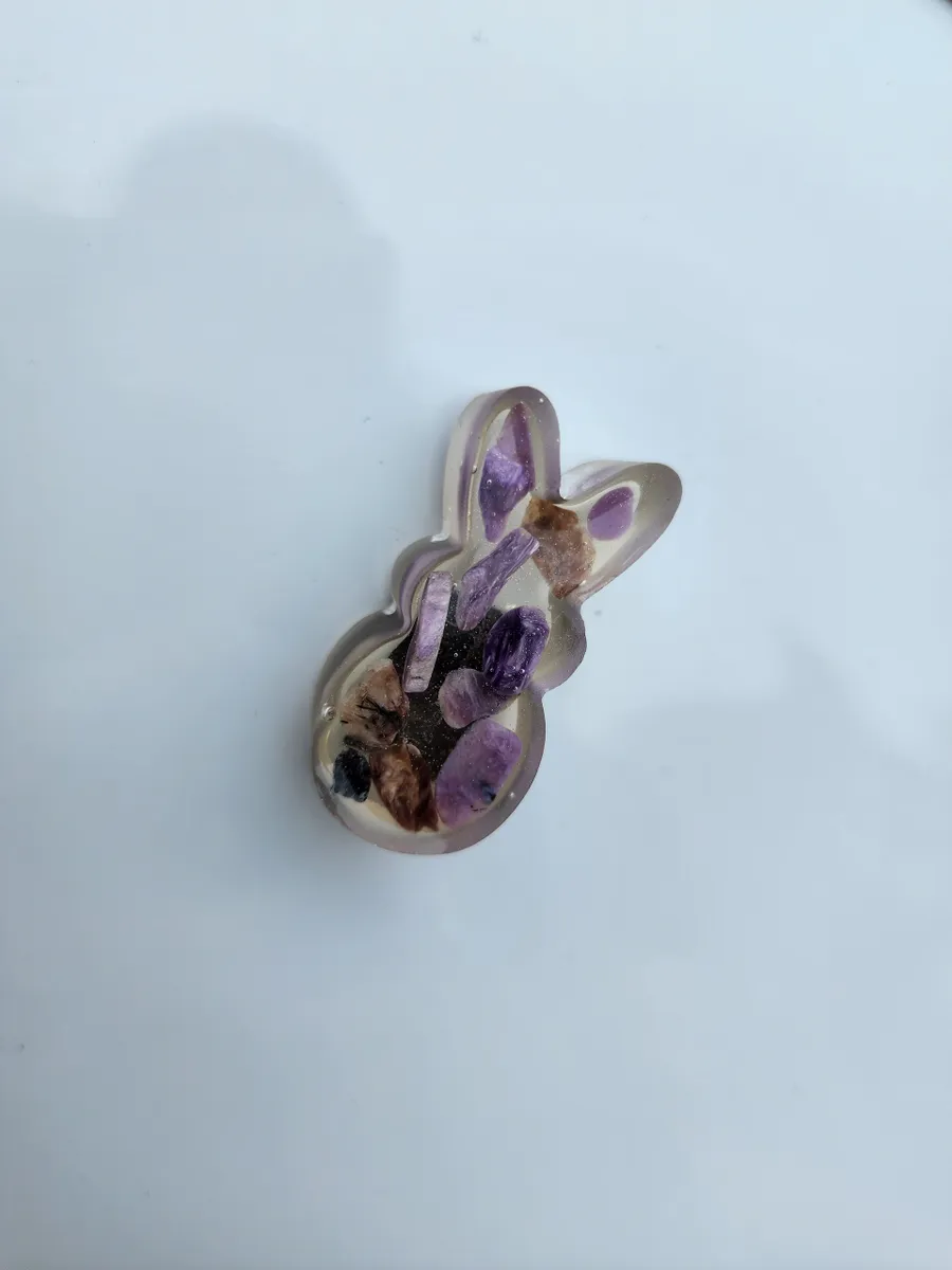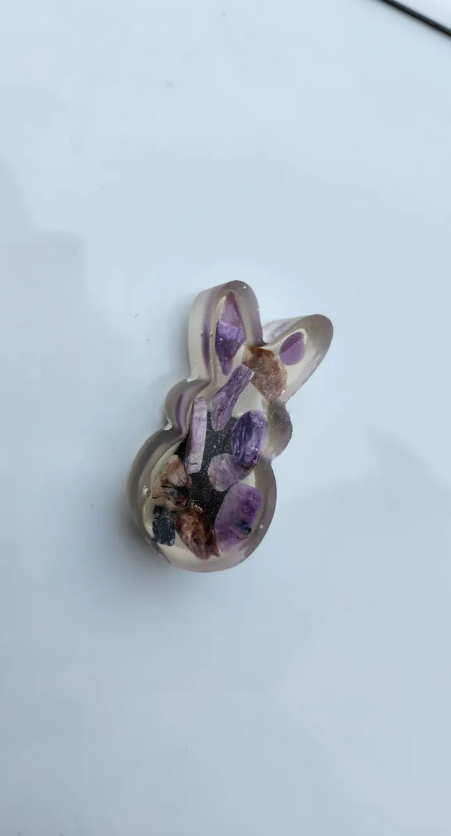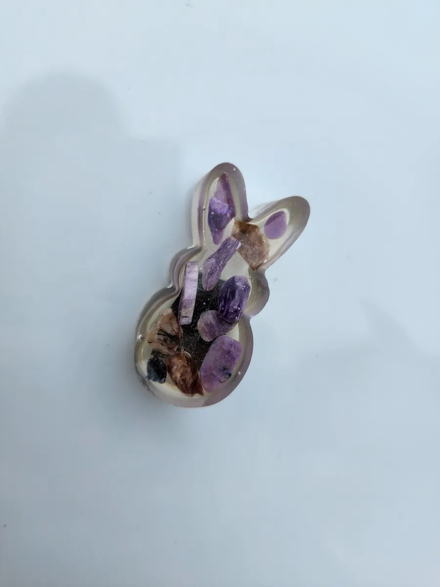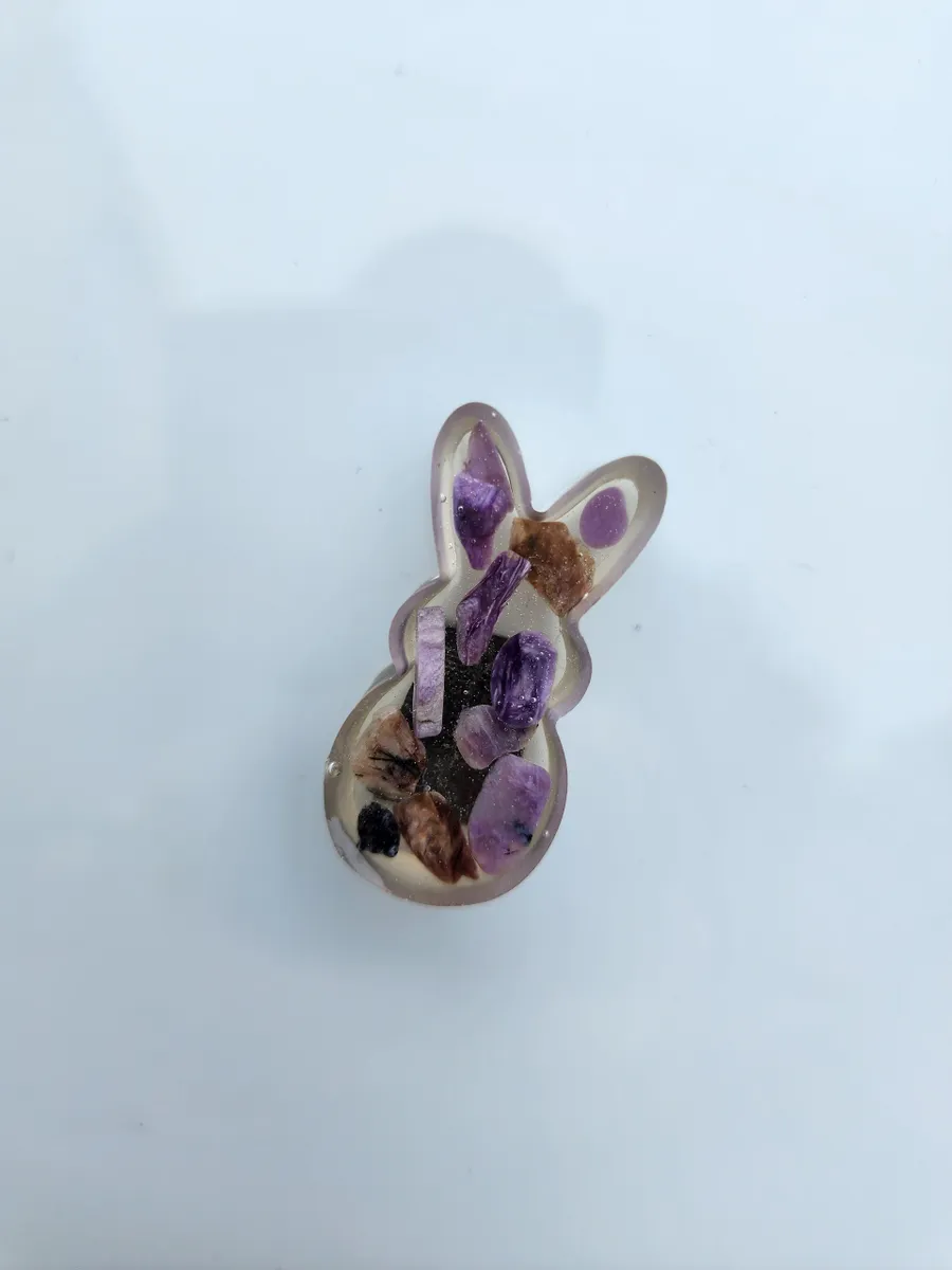 Add a touch of whimsy to your refrigerator or magnetic board with our adorable Charoite Bunny Magnet! This charming little bunny is handcrafted from epoxy, with purple-hued charoite stones inside, making each magnet truly unique. Simply stick this cute critter to any magnetic surface for a pop of color and a fun twist on traditional decor. Whether you’re a nature lover or just looking to add some personality to your space, the Charoite Bunny Magnet is sure to bring a smile to your face every time you see it. Get yours today and add a touch of charm to your home!