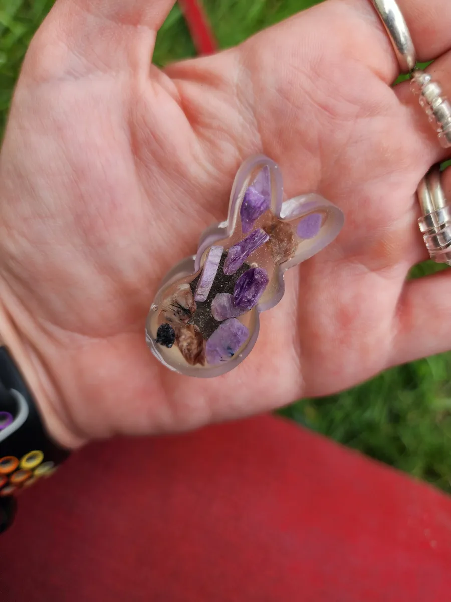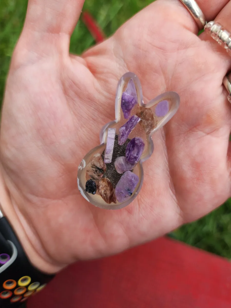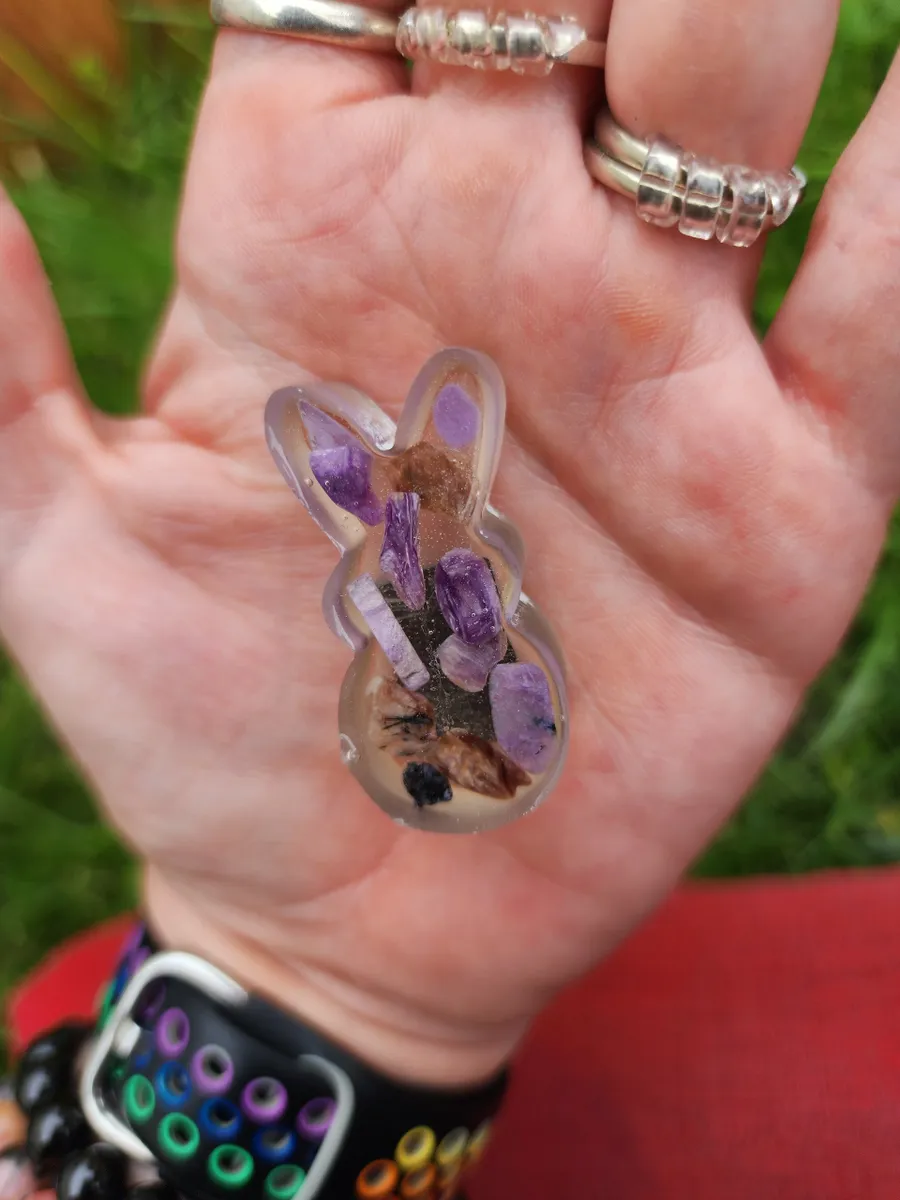 Add a touch of whimsy to your refrigerator or magnetic board with our adorable Charoite Bunny Magnet! This charming little bunny is handcrafted from epoxy, with purple-hued charoite stones inside, making each magnet truly unique. Simply stick this cute critter to any magnetic surface for a pop of color and a fun twist on traditional decor. Whether you’re a nature lover or just looking to add some personality to your space, the Charoite Bunny Magnet is sure to bring a smile to your face every time you see it. Get yours today and add a touch of charm to your home!