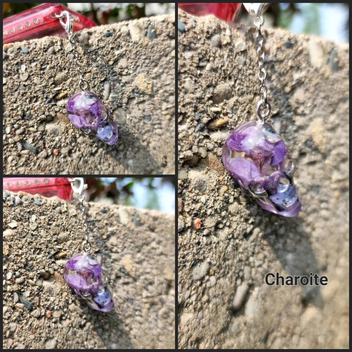 Elevate your phone’s style with our Charoite Skull Phone Charm. Made from genuine charoite gemstone, known for its stunning purple swirls and metaphysical properties, this charm features a distinctive skull design symbolizing transformation and protection. Lightweight and durable, it easily attaches to your phone or other devices, adding a unique and meaningful accessory to your everyday essentials. Perfect for those who appreciate rare gemstones and bold designs.