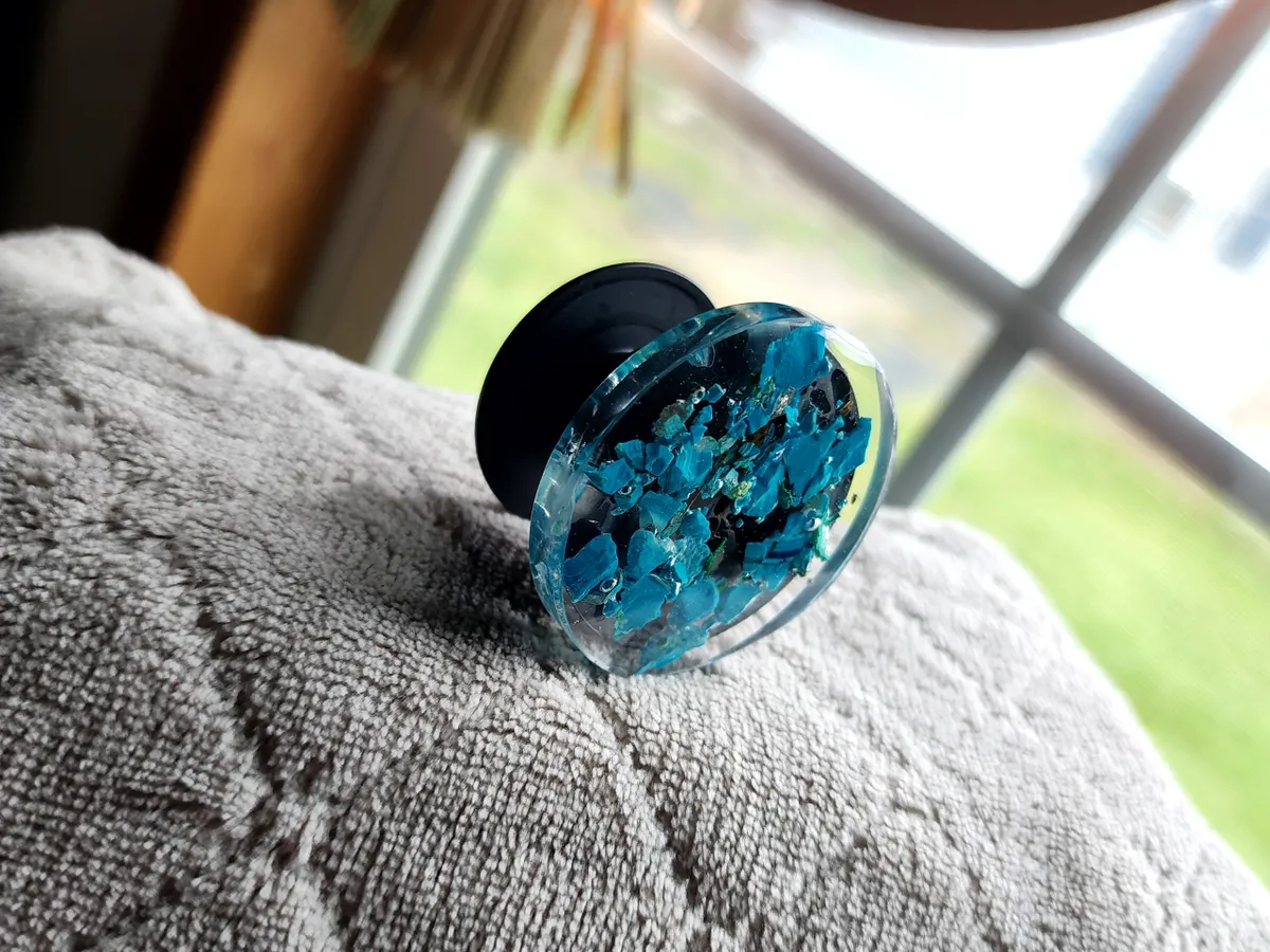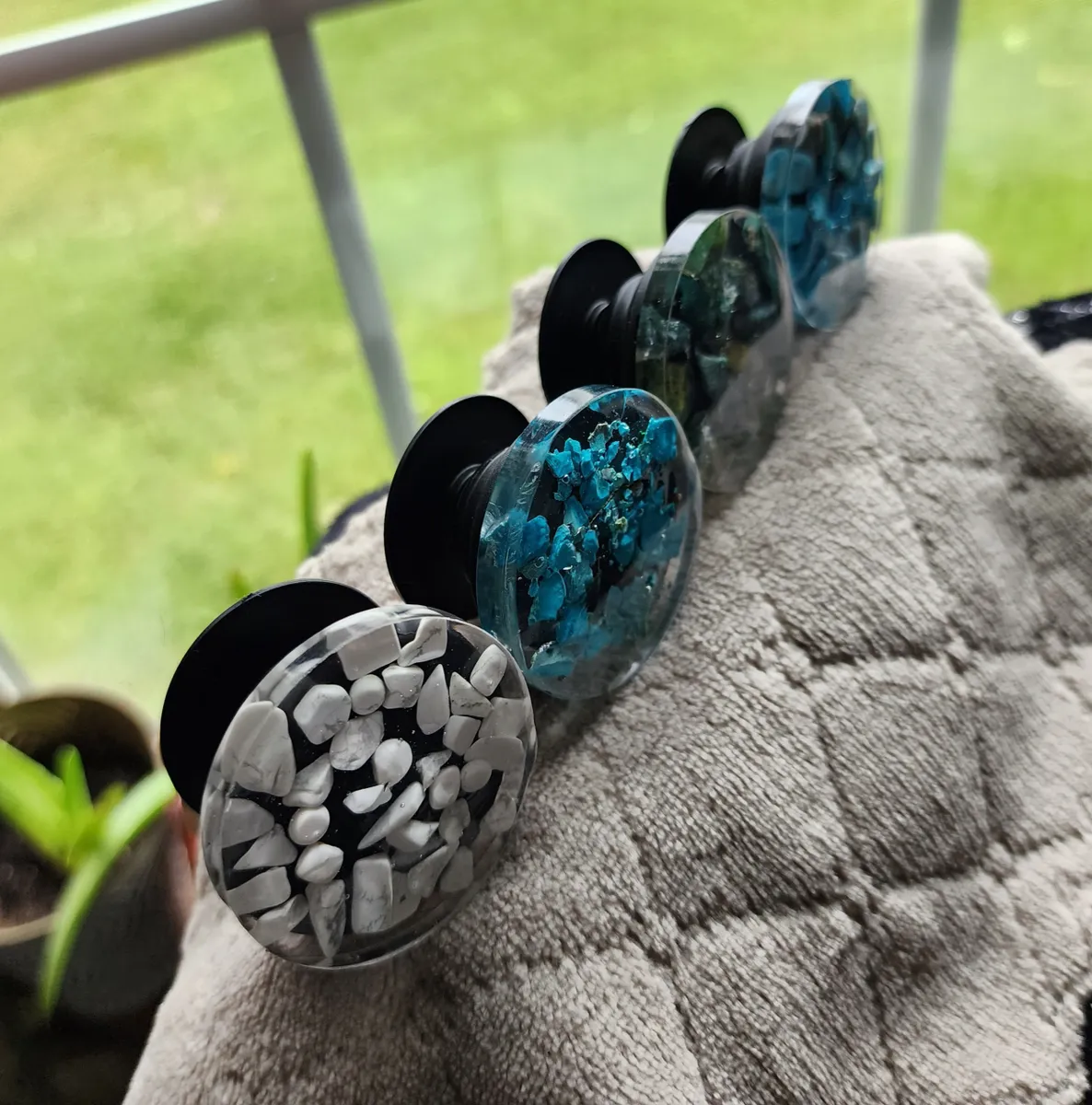 Introducing our Chrysocolla Phone Grip, a stunning fusion of nature and technology! This Crystal Phone Grip is a must-have accessory for any phone or crystal enthusiast. Crafted with genuine Chrysocolla stones, this grip not only adds a touch of elegance to your device but also provides a secure and comfortable grip while texting, taking selfies, or browsing. The beautiful collage of pictures featuring vibrant blue stones perfectly displays the calming aura of chrysocolla. With its unique design, this Stone Phone Grip is perfect for those who appreciate the beauty of nature combined with the convenience of a phone grip. Elevate your phone experience with our Chrysocolla Phone Grip today and stand out from the crowd!
