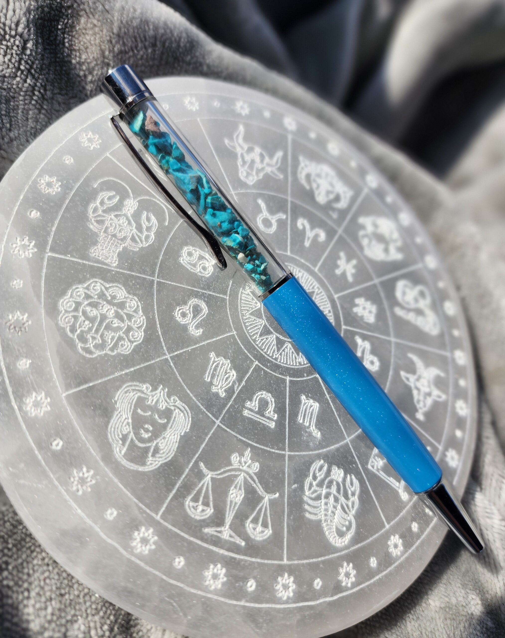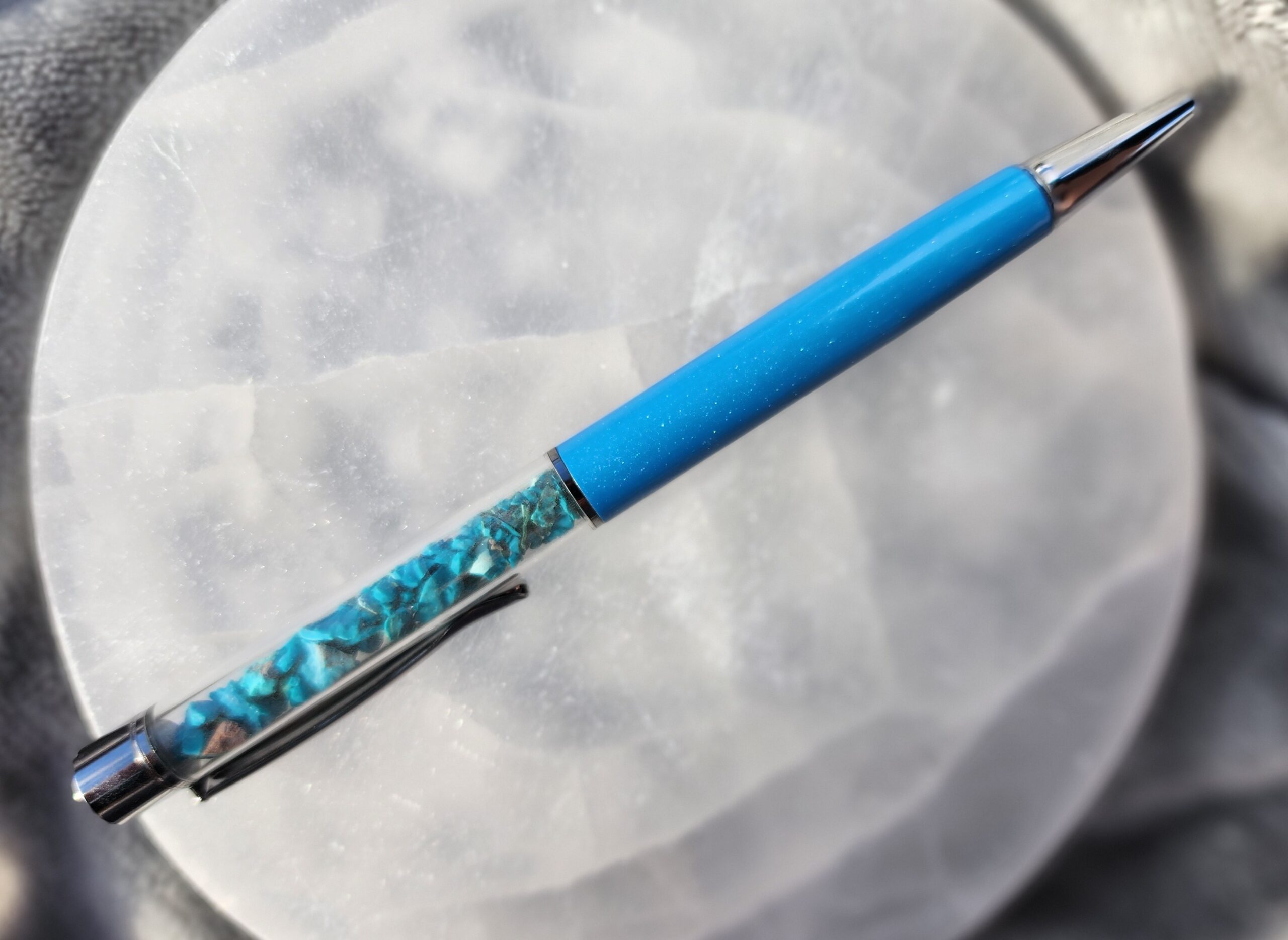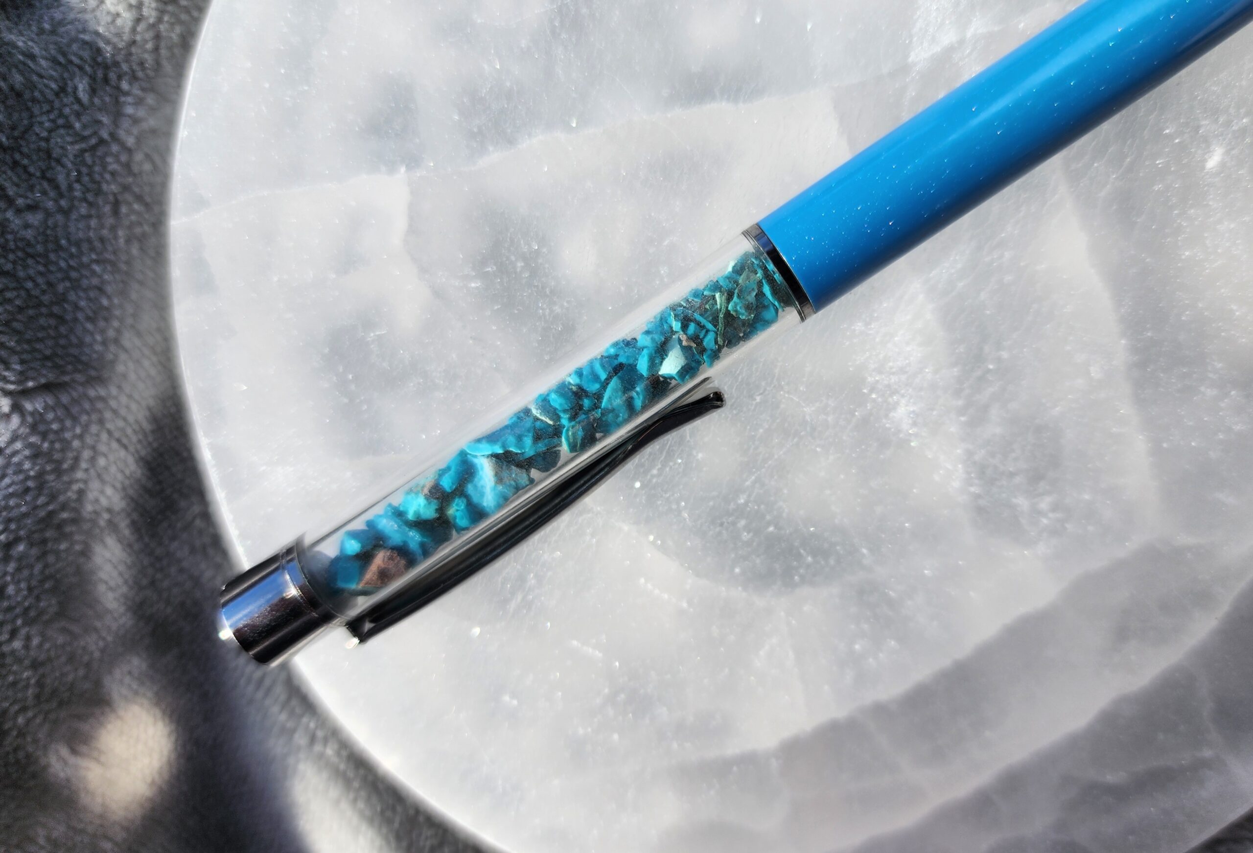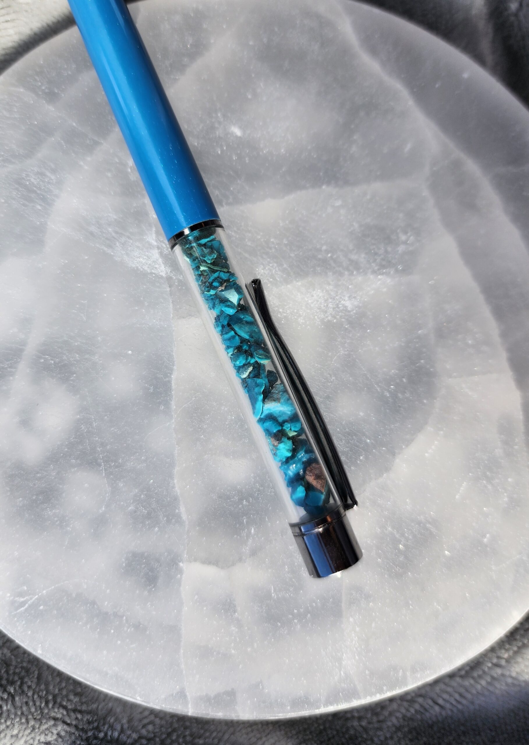 Let your thoughts drift and ideas flow with the Chrysocolla Zen Pen. Inspired by the tranquil, watery hues of chrysocolla stones, this pen carries a sense of balance, clarity, and a dash of everyday magic wherever you write.