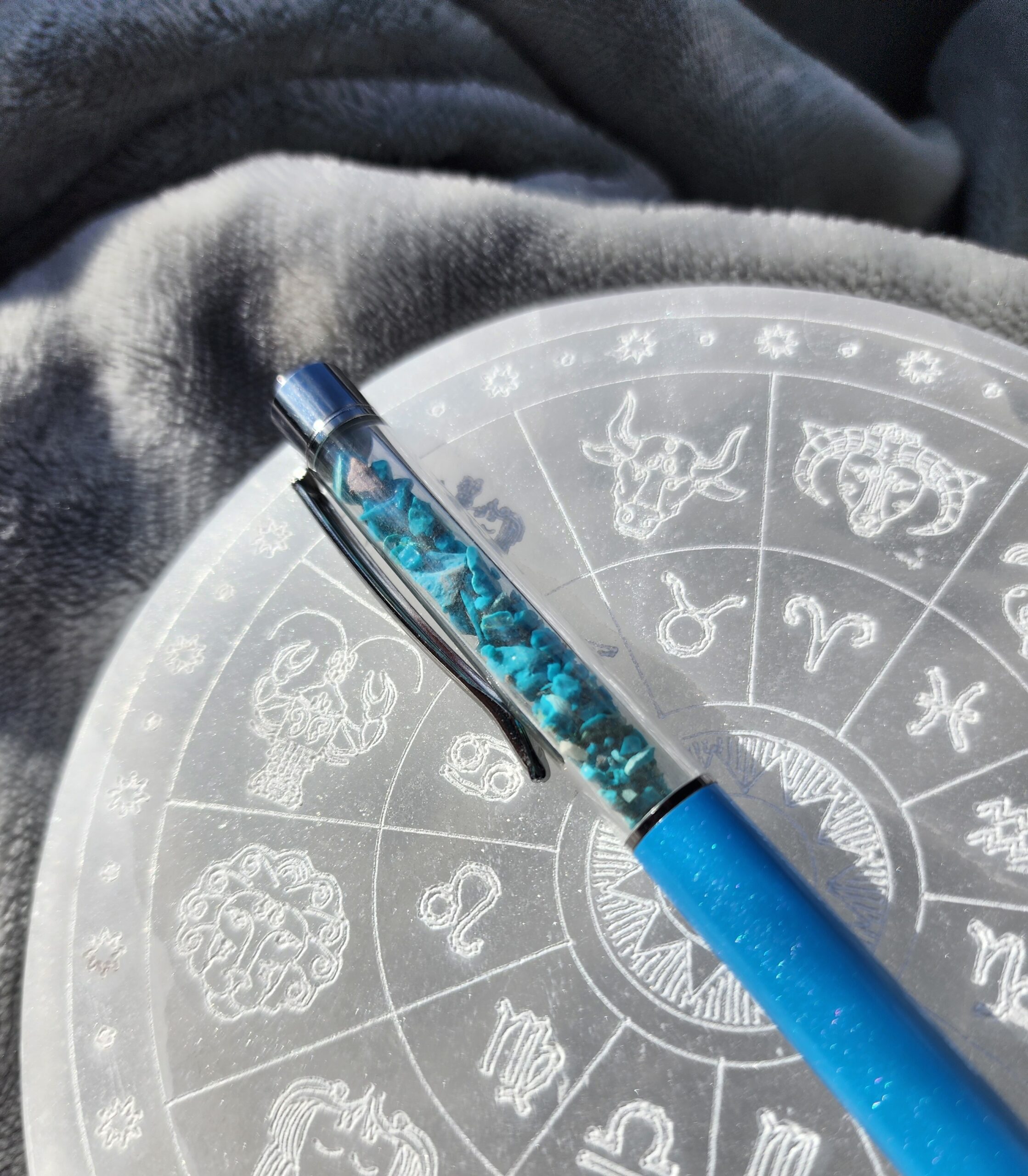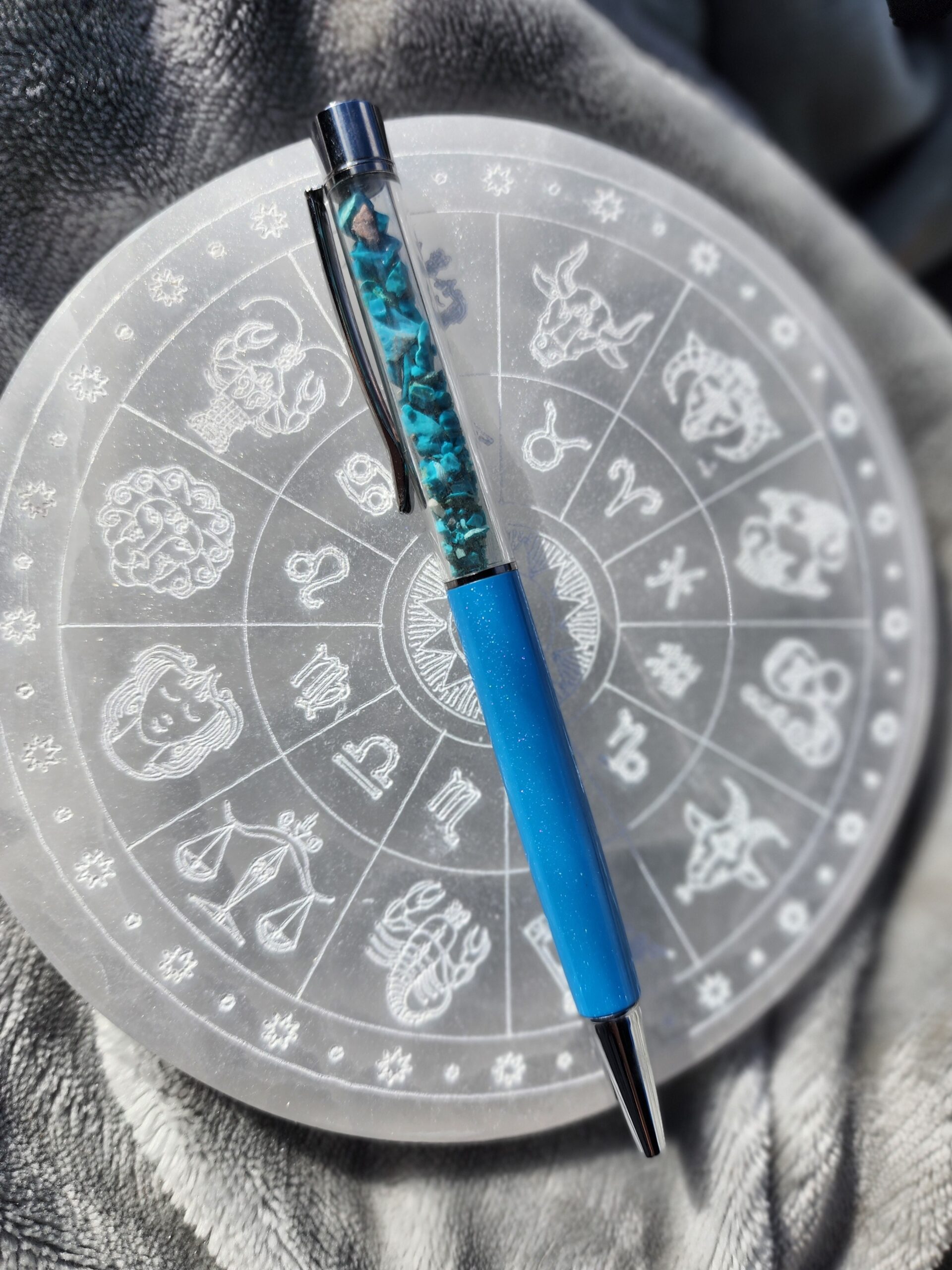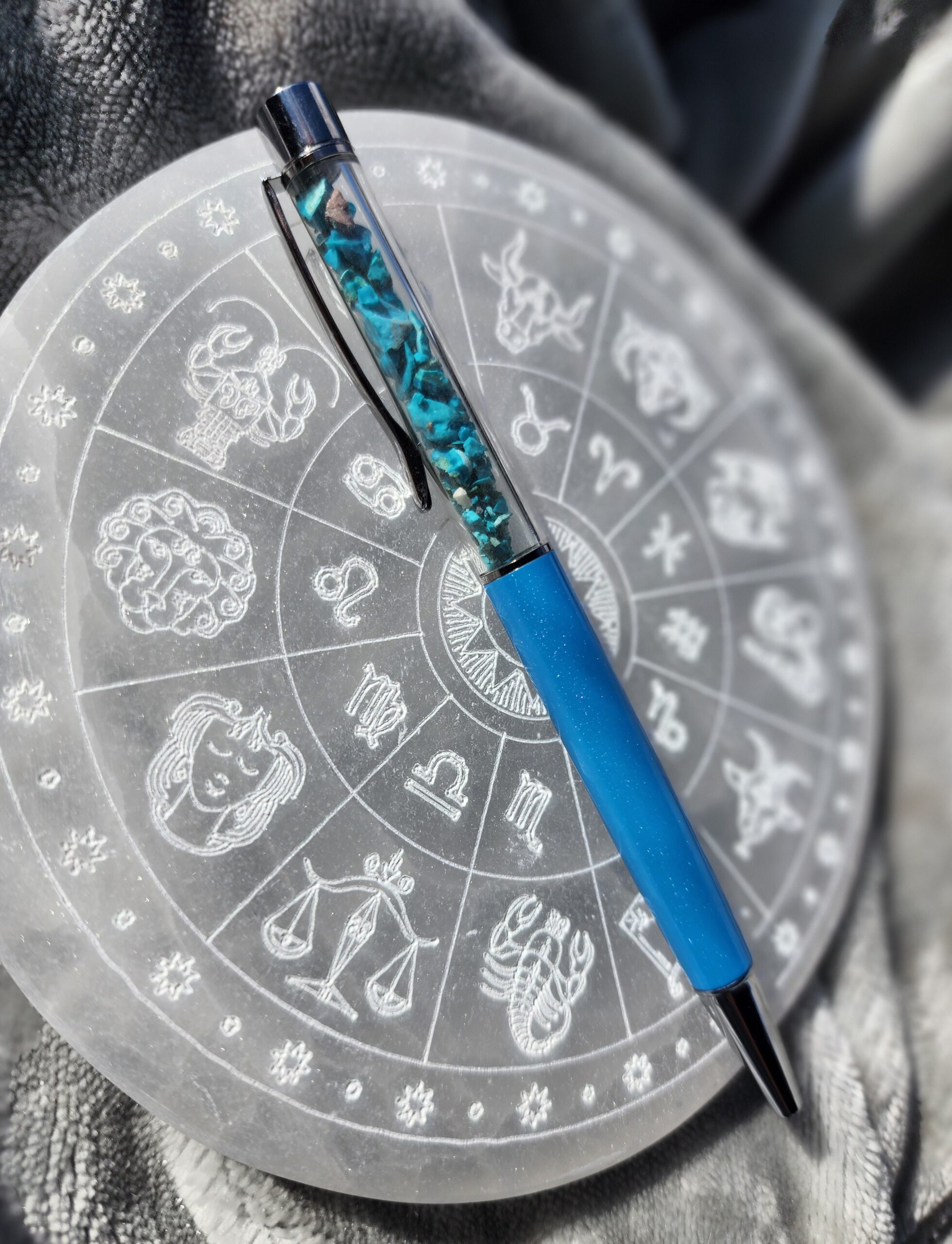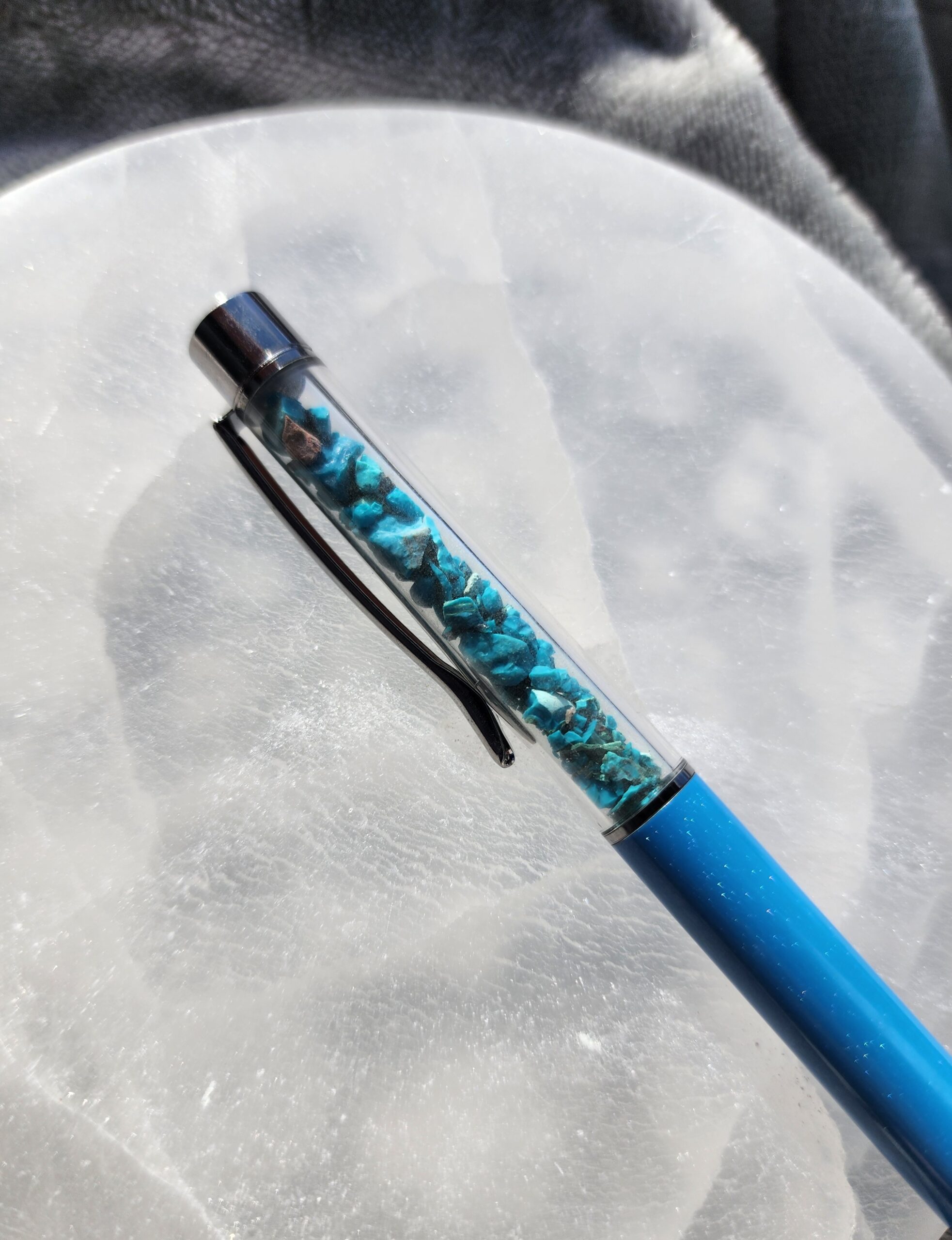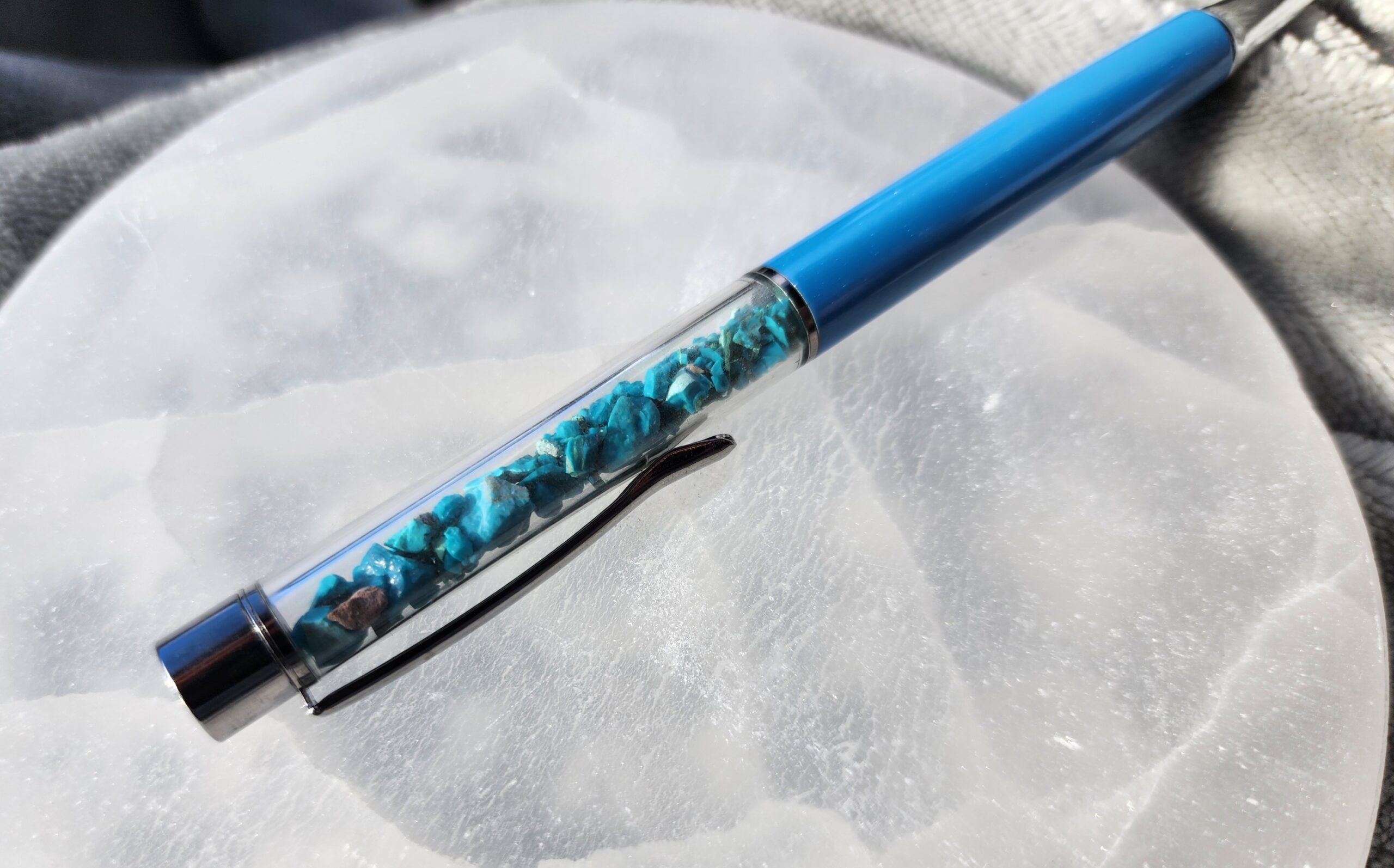 Let your thoughts drift and ideas flow with the Chrysocolla Zen Pen. Inspired by the tranquil, watery hues of chrysocolla stones, this pen carries a sense of balance, clarity, and a dash of everyday magic wherever you write.