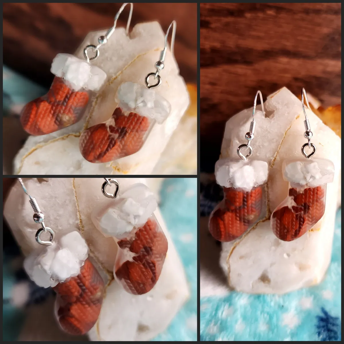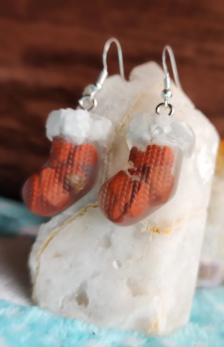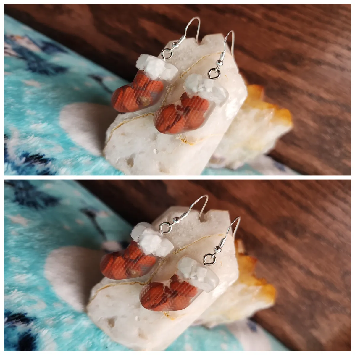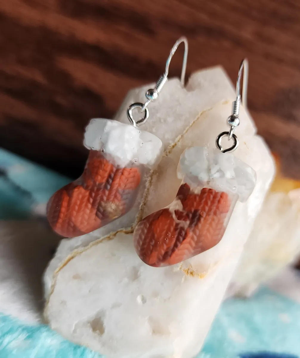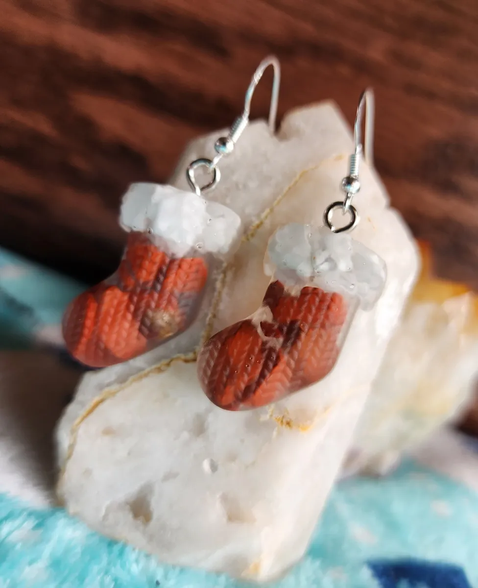 Introducing our Chunky Red Jasper and Howlite Stocking Earrings, the perfect accessory to add a dash of quirkiness to any outfit! Crafted with love, these earrings are a unique blend of epoxy and stones, resulting in an eye-catching design that is sure to turn heads. Picture this: a delightful combination of vibrant red jasper stones and calming howlite stones dangling from your ears like miniature stockings. So why settle for ordinary when you can rock these playful earrings? Grab a pair now and let your ears do the talking!