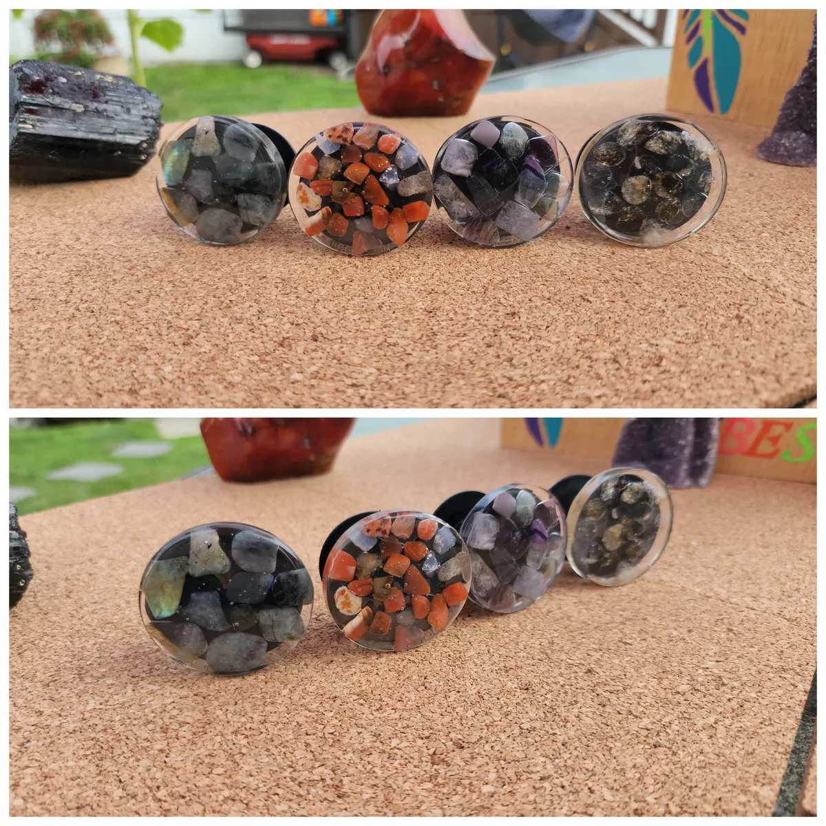 **Disclaimer** Since these are hand poured with epoxy resin and have stone inclusions, you may see imperfections such as bubbles, grooves and inconsistency. It’s part of what makes them so unique. No two will look identical! Thats why I love them!