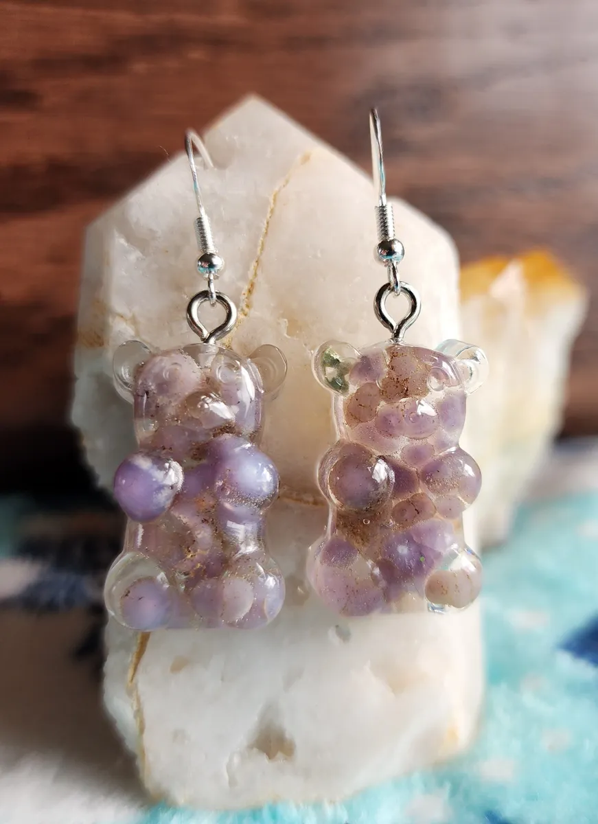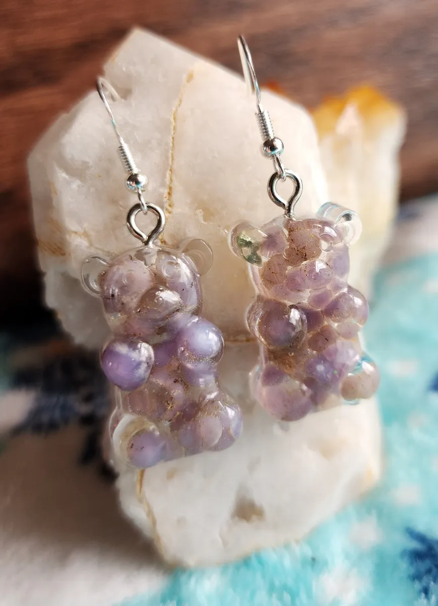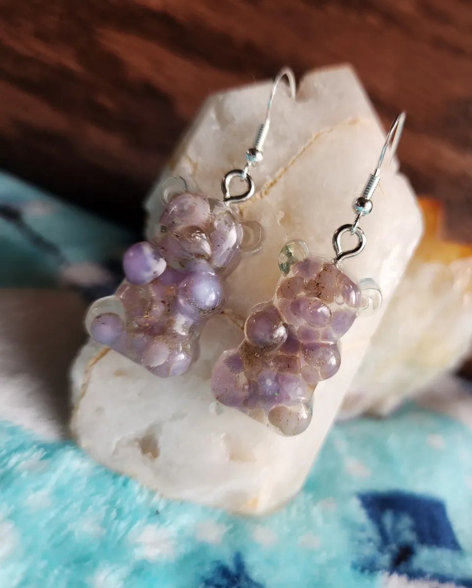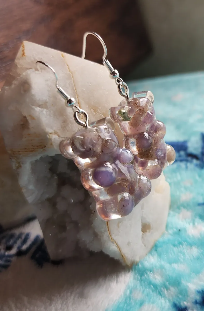 So, whether you are a fashionista or simply a candy enthusiast, these Grape Agate Gummy Bear Earrings are a must-have addition to your jewelry collection. Get ready to indulge in some sweet, whimsical fashion fun!