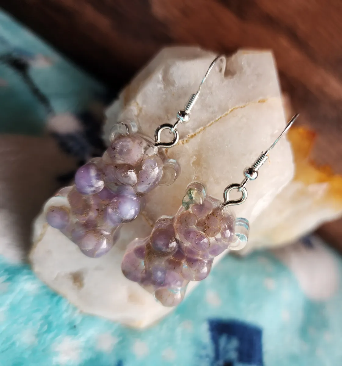 We take pride in creating unique and playful accessories that never fail to spark a conversation. These earrings are not only a treat for your eyes but also a delightful conversation starter. Made with epoxy and Grape Agate stones, they are comfortable to wear, ensuring you can flaunt your sweet style all day long.