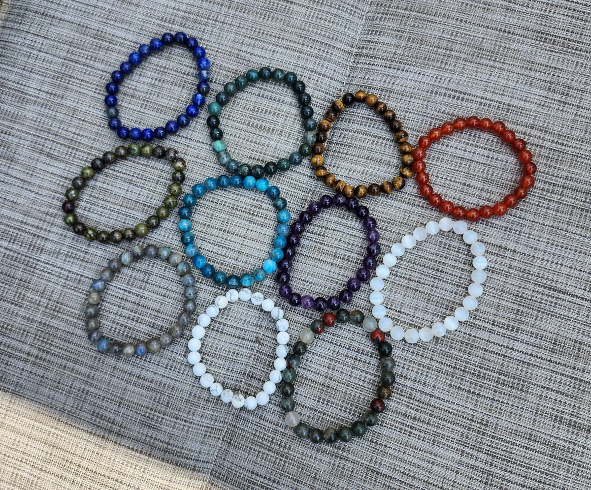 Find peace and calm with the Howlite Bracelet, handcrafted with genuine Howlite stones known for their calming and stress-relieving properties. The smooth, white marbled beads create a stylish and versatile accessory that complements any outfit while promoting relaxation and emotional balance. Perfect for those seeking tranquility or as a thoughtful gift. Embrace serenity and style with this elegant Howlite Bracelet today!