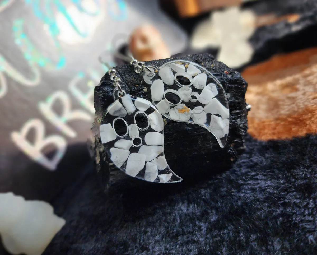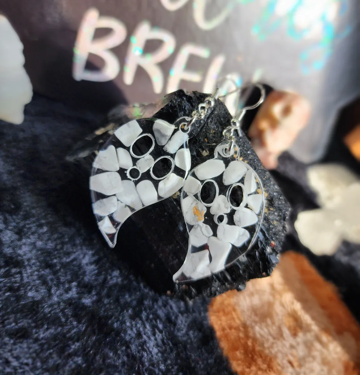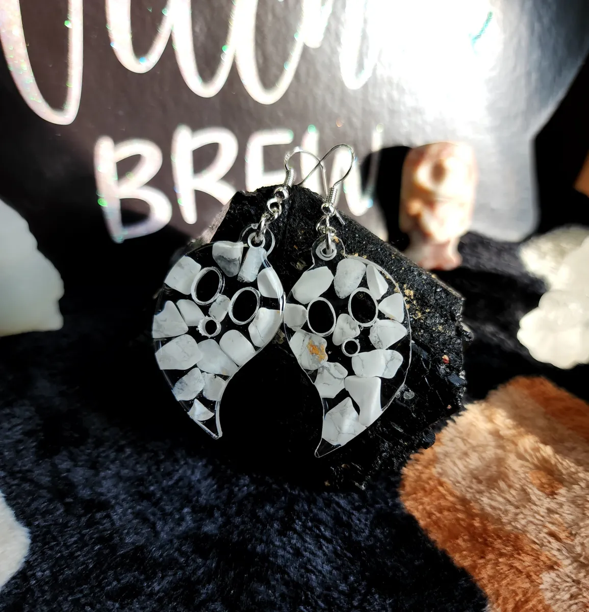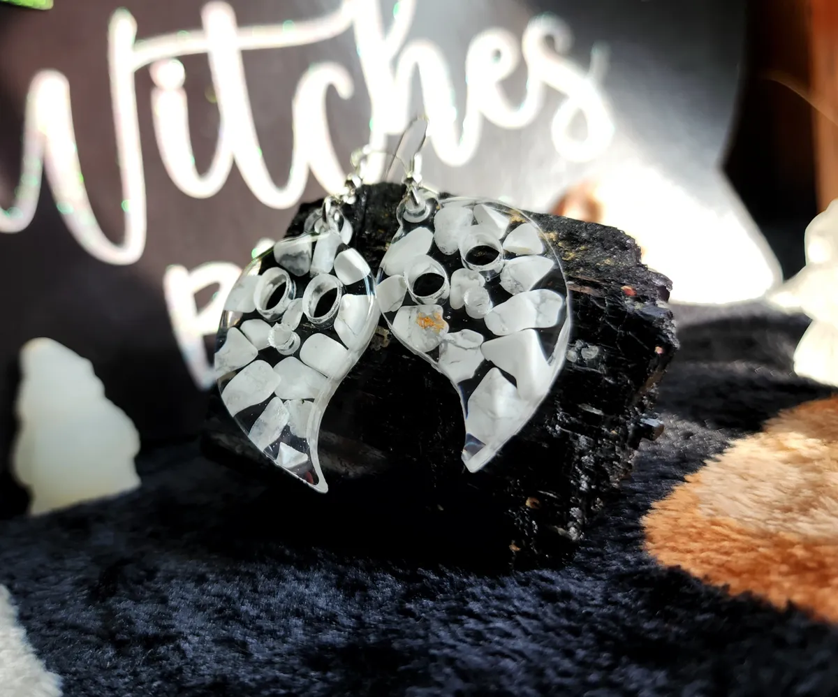 Introducing our exquisite Howlite Ghost Dangle Earrings, the perfect blend of elegance and mystique. The perfect Spooky-chic style! Crafted with utmost precision, these stone earrings are a true masterpiece for those who appreciate the metaphysical world. The stunning Howlite stones, known for their calming properties, are delicately placed into adorable epoxy ghost shapes, adding a touch of whimsy to any ensemble. The dainty sterling silver hooks ensure comfortable wear while exuding a sophisticated charm. Whether you’re attending a special occasion or simply want to elevate your everyday style, these earrings are a must-have addition to your jewelry collection. Embrace the ethereal beauty and make a statement with our Howlite Ghost Dangle Earrings.
