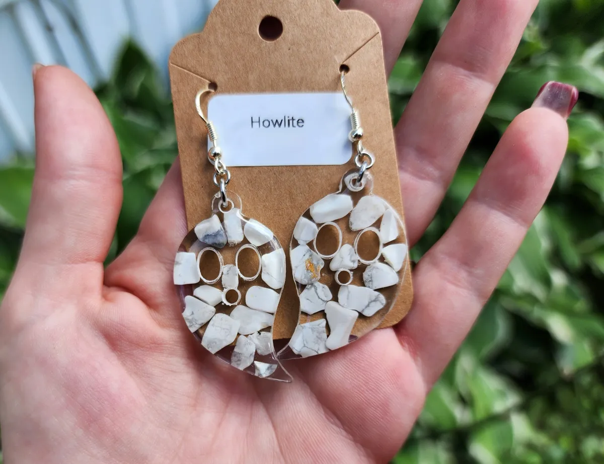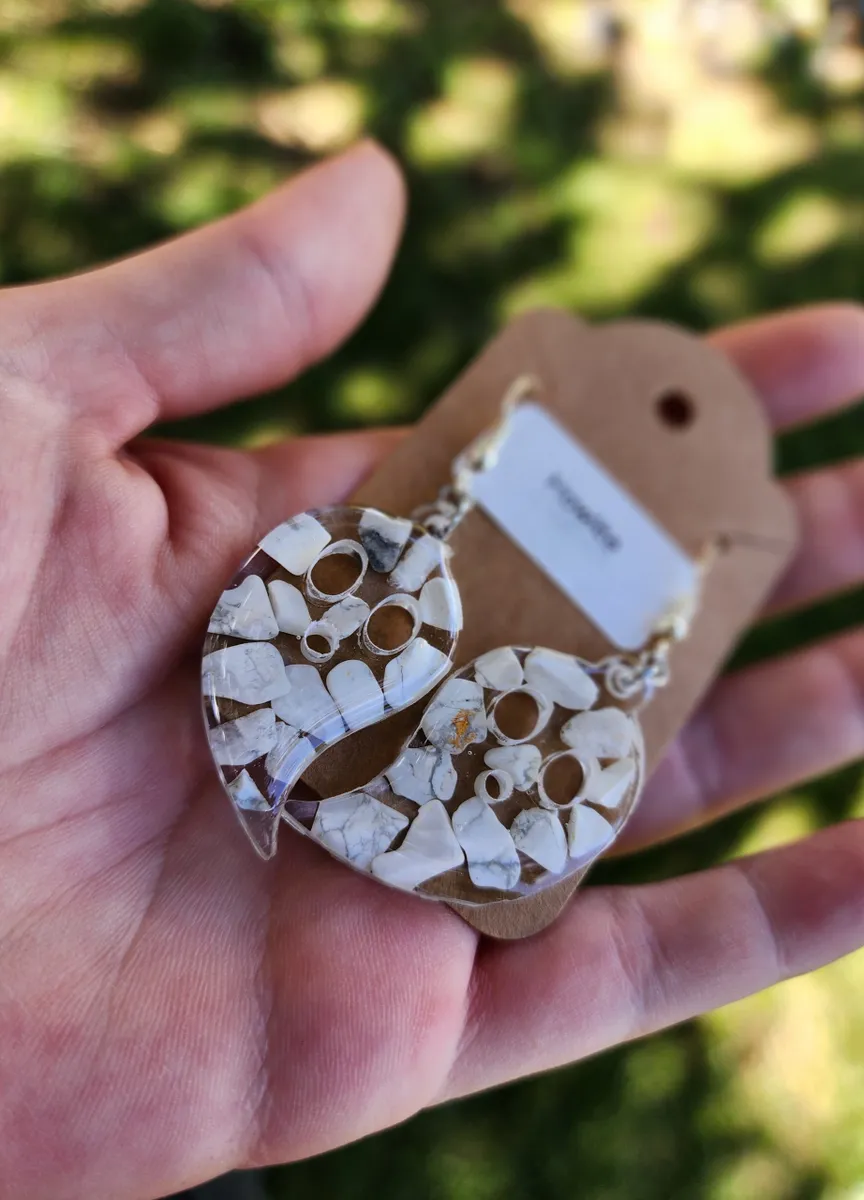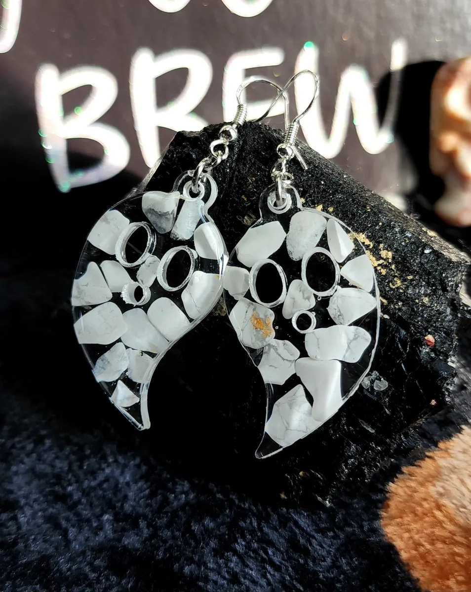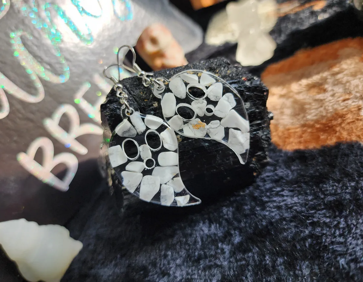 Introducing our exquisite Howlite Ghost Dangle Earrings, the perfect blend of elegance and mystique. The perfect Spooky-chic style! Crafted with utmost precision, these stone earrings are a true masterpiece for those who appreciate the metaphysical world. The stunning Howlite stones, known for their calming properties, are delicately placed into adorable epoxy ghost shapes, adding a touch of whimsy to any ensemble. The dainty sterling silver hooks ensure comfortable wear while exuding a sophisticated charm. Whether you’re attending a special occasion or simply want to elevate your everyday style, these earrings are a must-have addition to your jewelry collection. Embrace the ethereal beauty and make a statement with our Howlite Ghost Dangle Earrings.