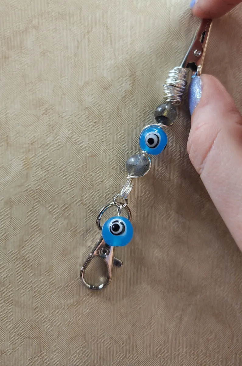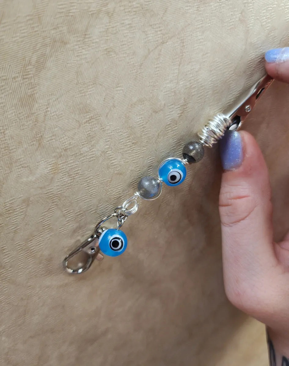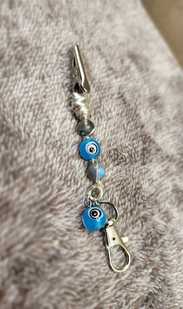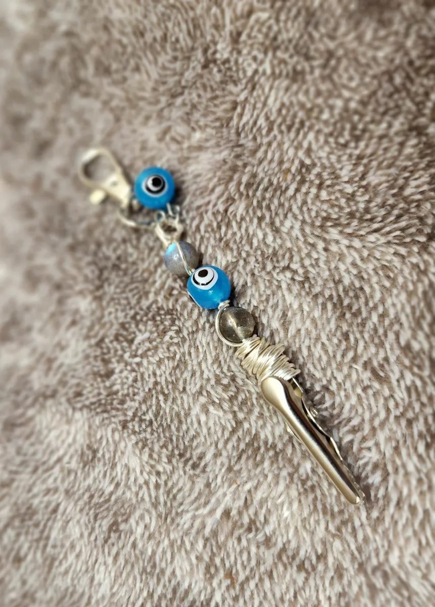 Introducing our Labradorite Mini Roach Clip Keychain, the ultimate accessory for the modern-day rebel! This crafty creation showcases a captivating collage of photos, boasting an alluring evil eye charm that’s bound to turn heads. Practicality meets style as this keychain doubles up as a roach clip, making it the perfect companion for those who appreciate life’s little indulgences. Crafted with care in our craft business, this keychain is the epitome of edgy elegance and a must-have for those who like to keep their rebellious spirit close at hand.