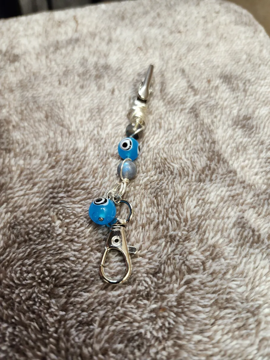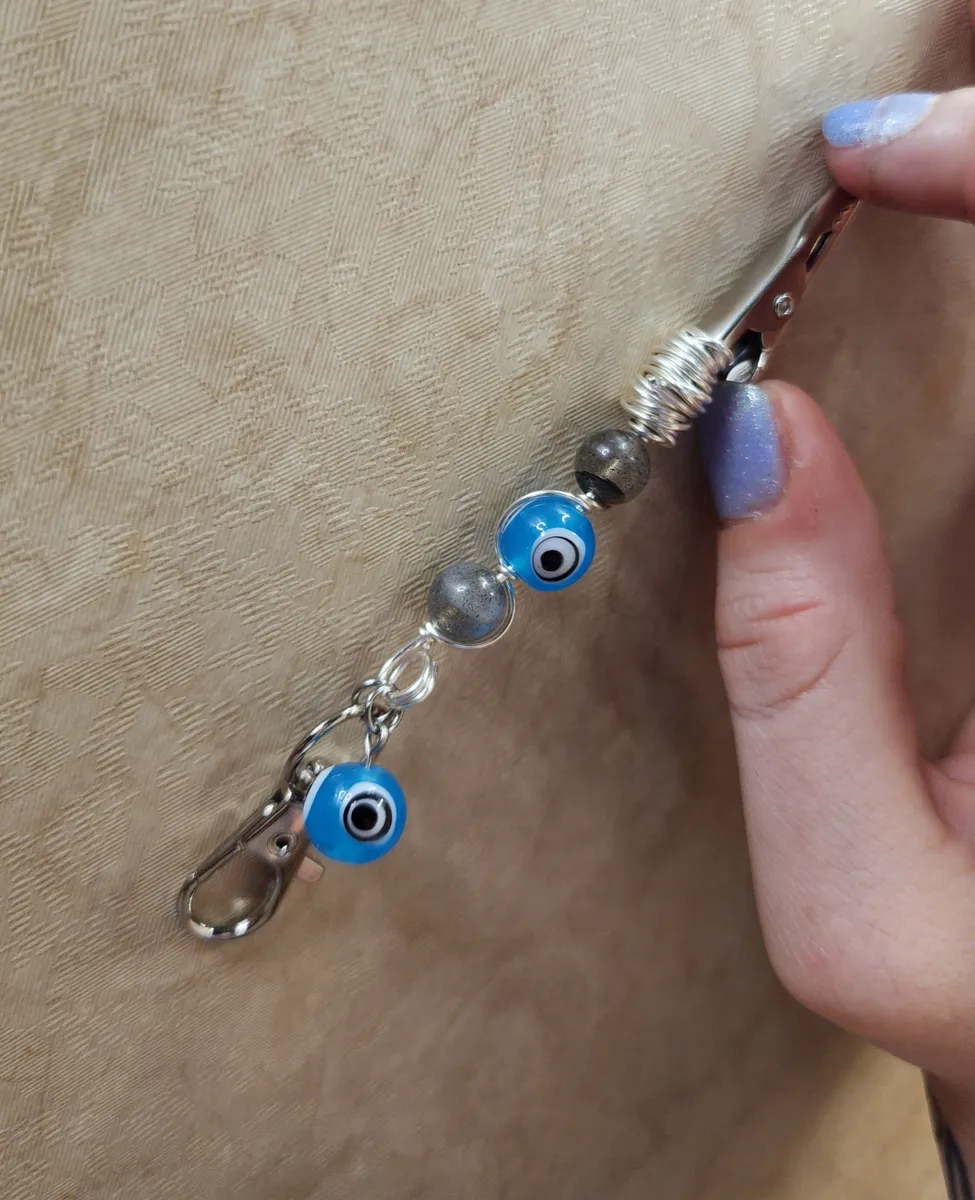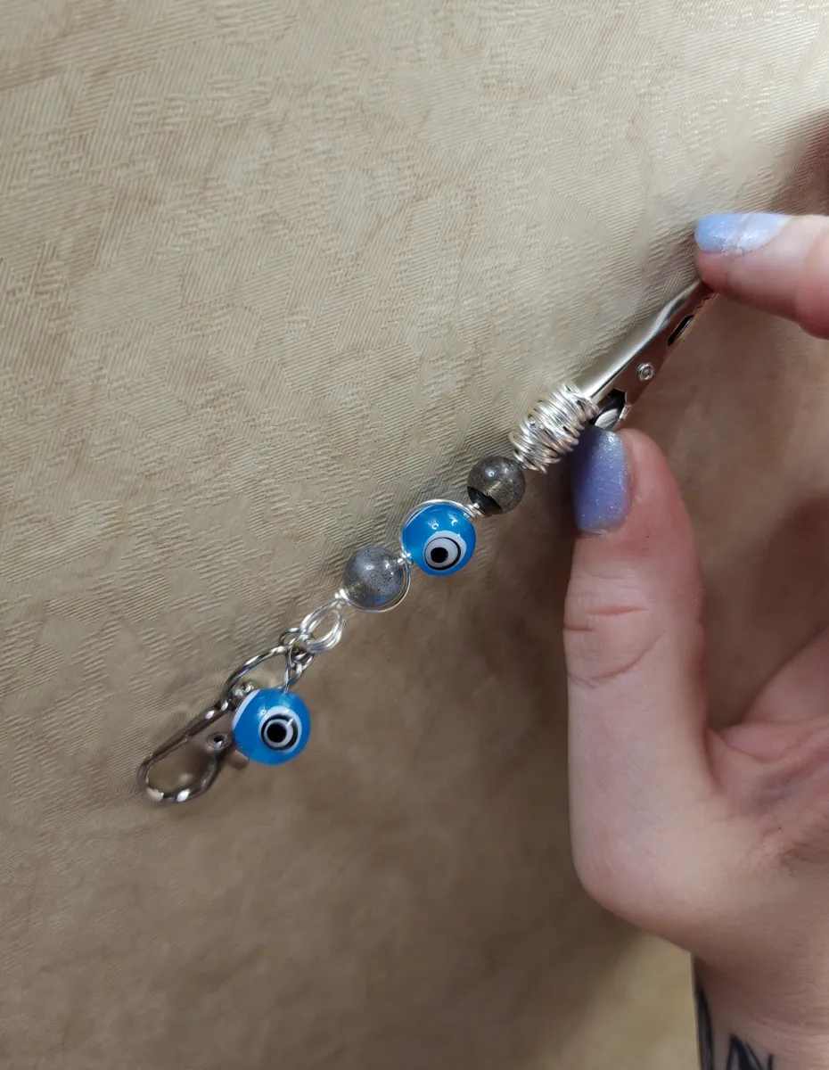 Introducing our Labradorite Mini Roach Clip Keychain, the ultimate accessory for the modern-day rebel! This crafty creation showcases a captivating collage of photos, boasting an alluring evil eye charm that’s bound to turn heads. Practicality meets style as this keychain doubles up as a roach clip, making it the perfect companion for those who appreciate life’s little indulgences. Crafted with care in our craft business, this keychain is the epitome of edgy elegance and a must-have for those who like to keep their rebellious spirit close at hand.