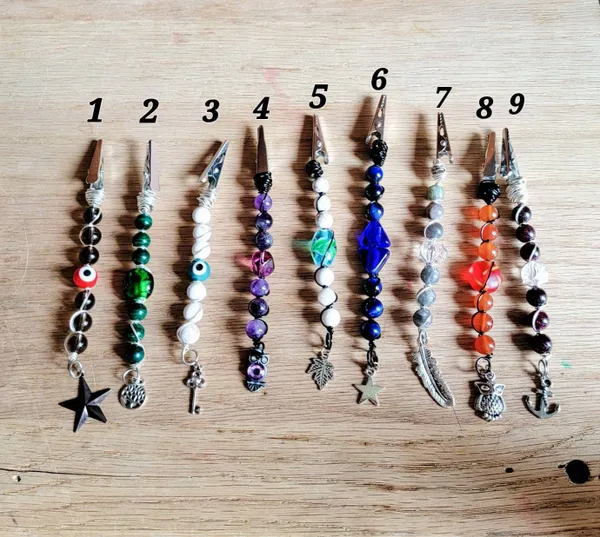 Add some good vibes to your toke with Handmade wire wrapped Labradorite Roach clips. These are 8mm crystal/stone beads with accent beads and dangle charms. They make you feel fancy while you smoke!