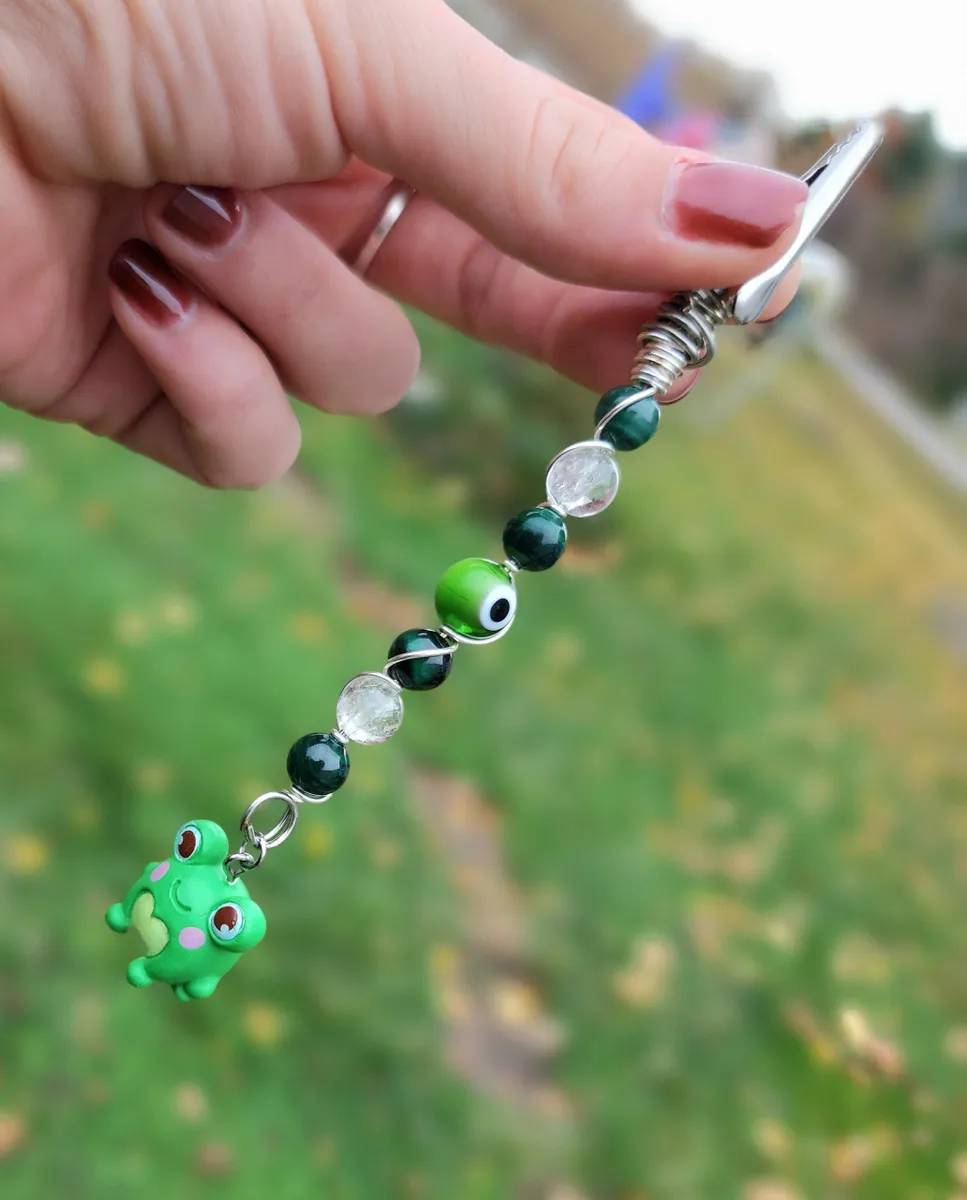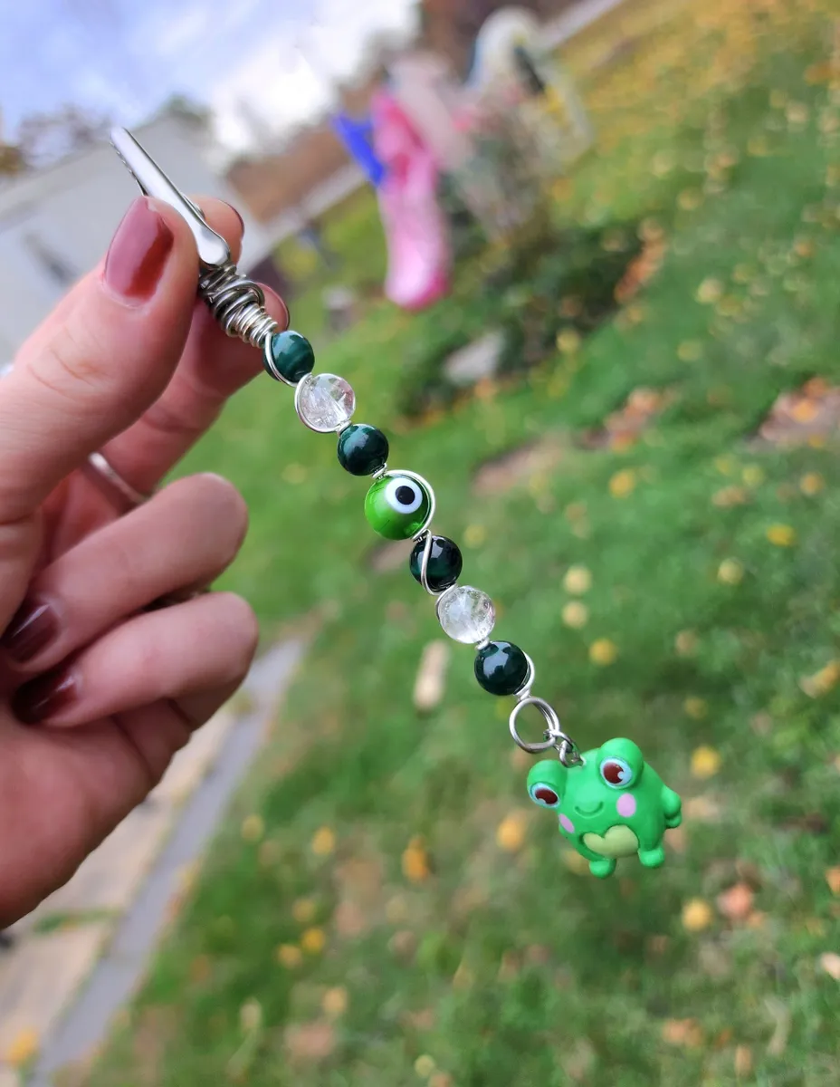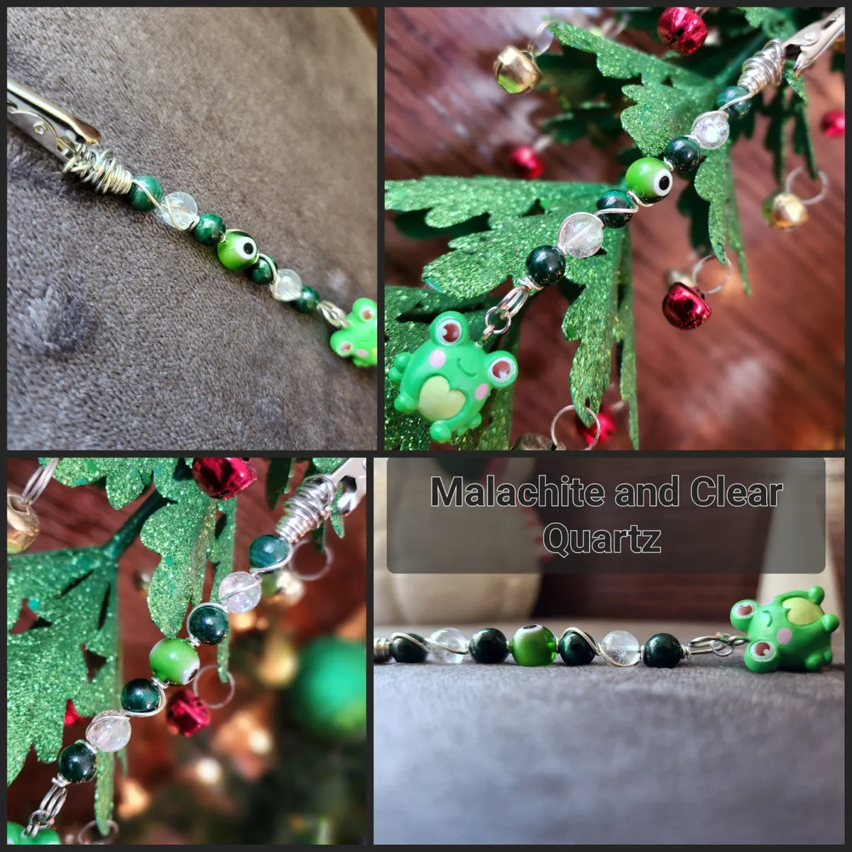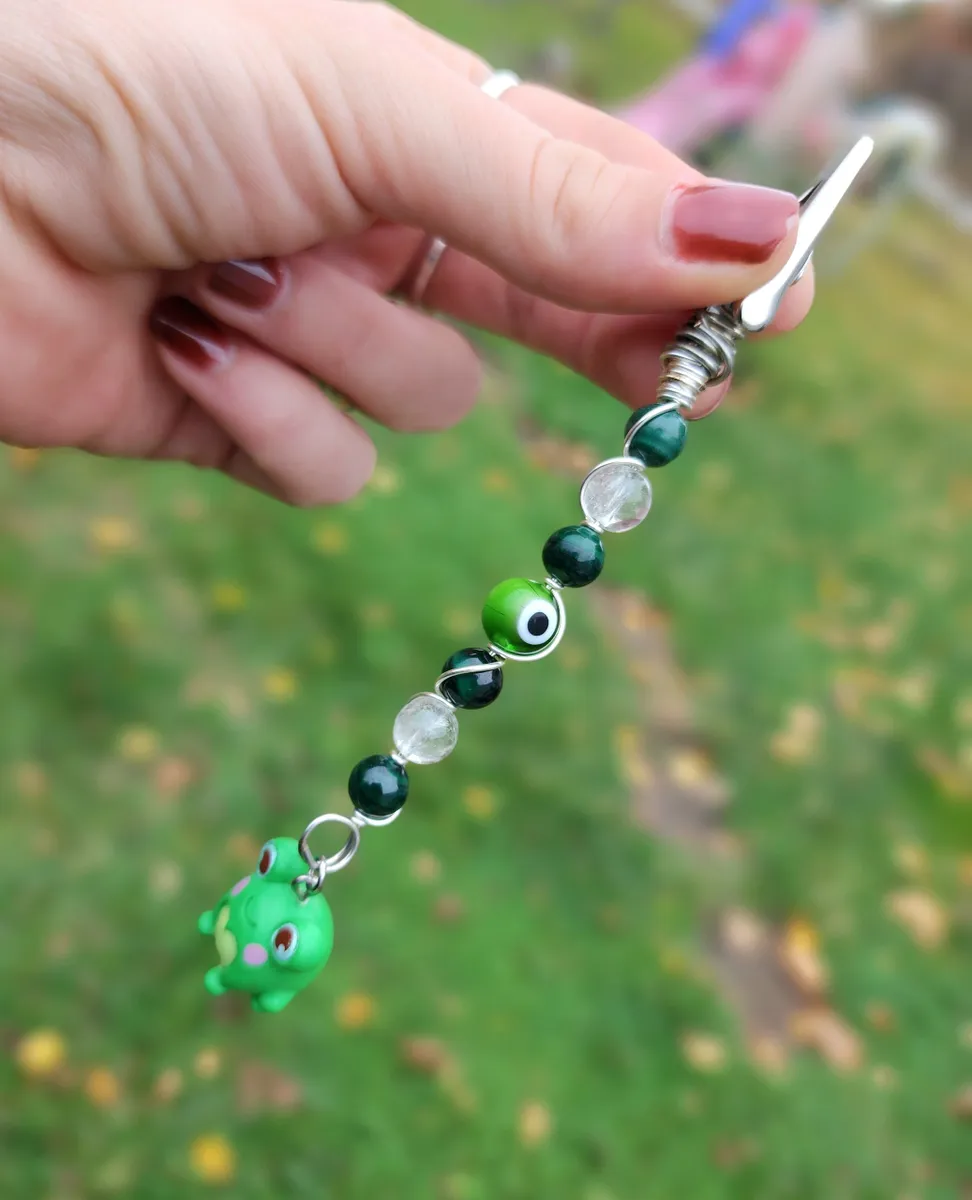 Introducing our exotic and enchanting hand wire-wrapped, Malachite and Clear Quartz Roach Clips with a whimsical Frog Charm! Crafted with utmost precision and care, these stunning accessories are a must-have for any cannabis connoisseur or nature enthusiast. The product image showcases a delightful collage of vibrant beads, capturing the essence of earthy beauty. Elevate your smoking experience with these unique roach clips, and let the magical combination of Malachite, Clear Quartz, and the adorable frog charm transport you to a world of pure joy and tranquility.