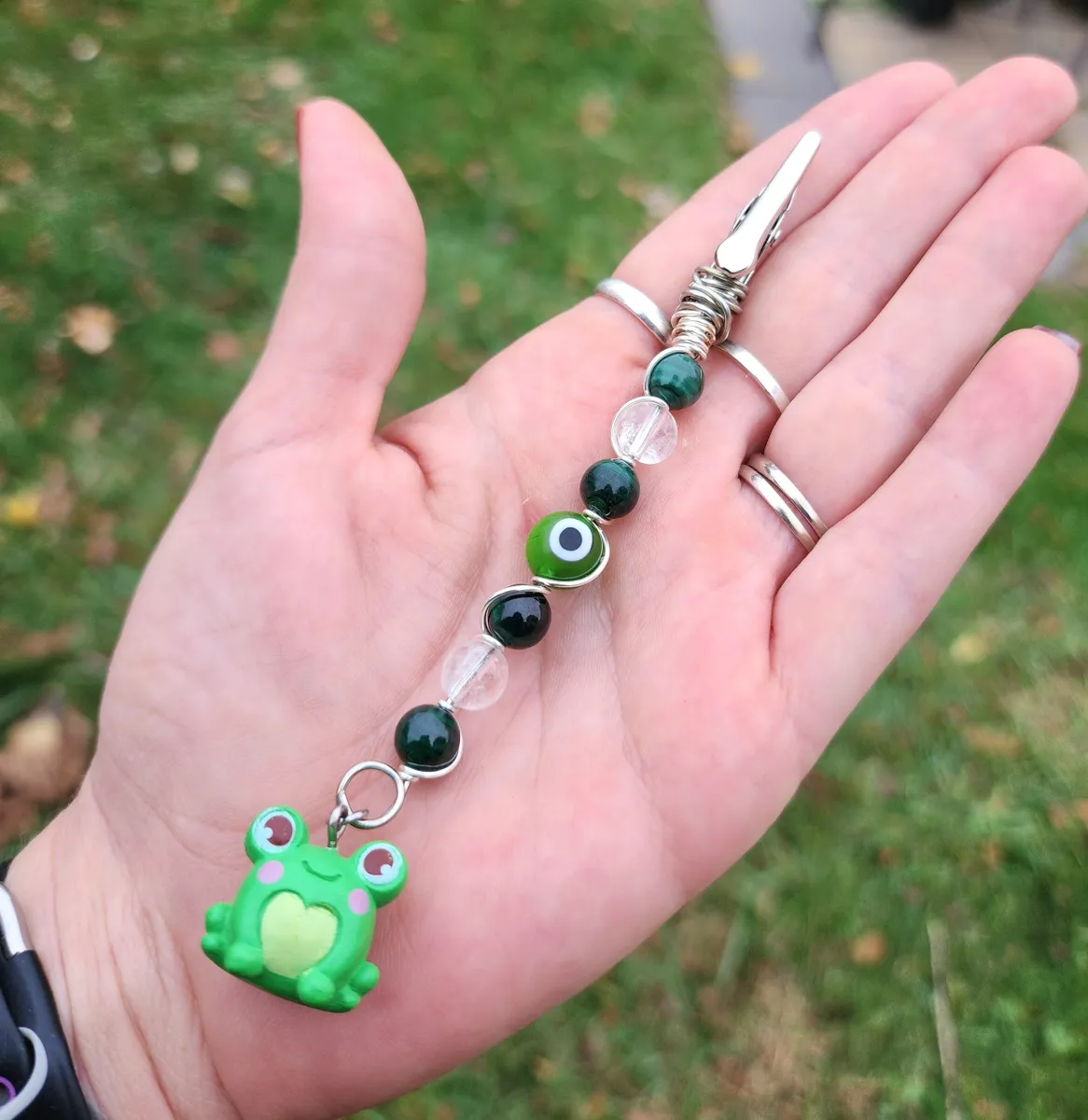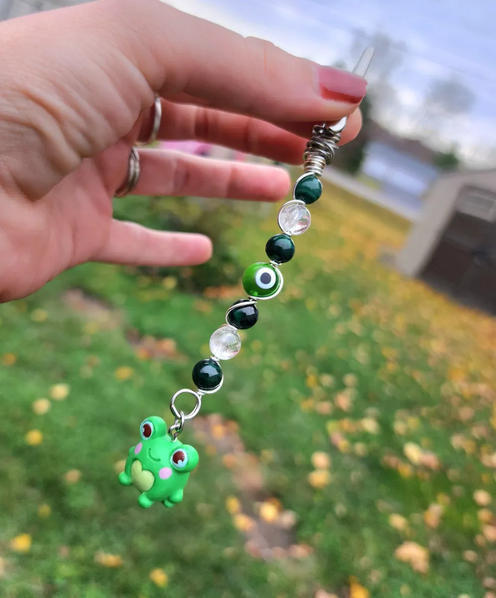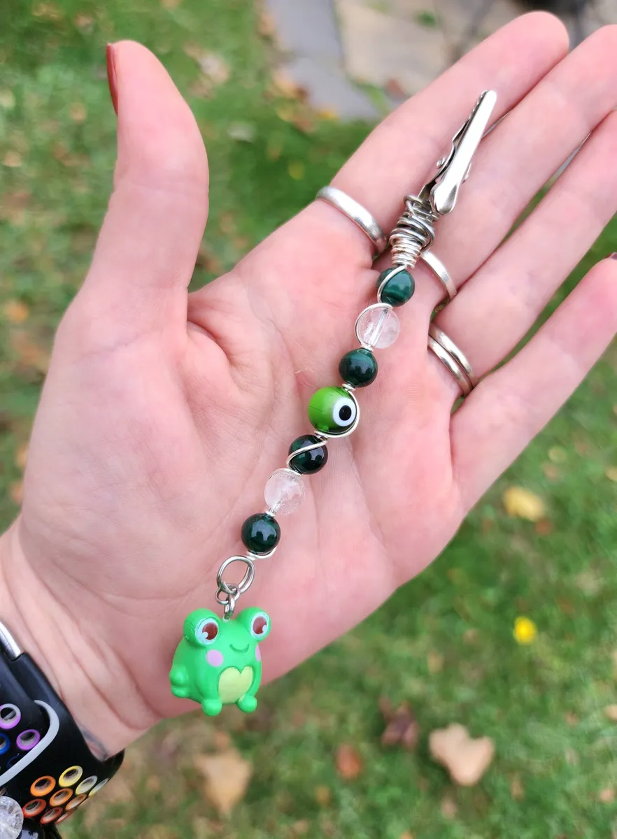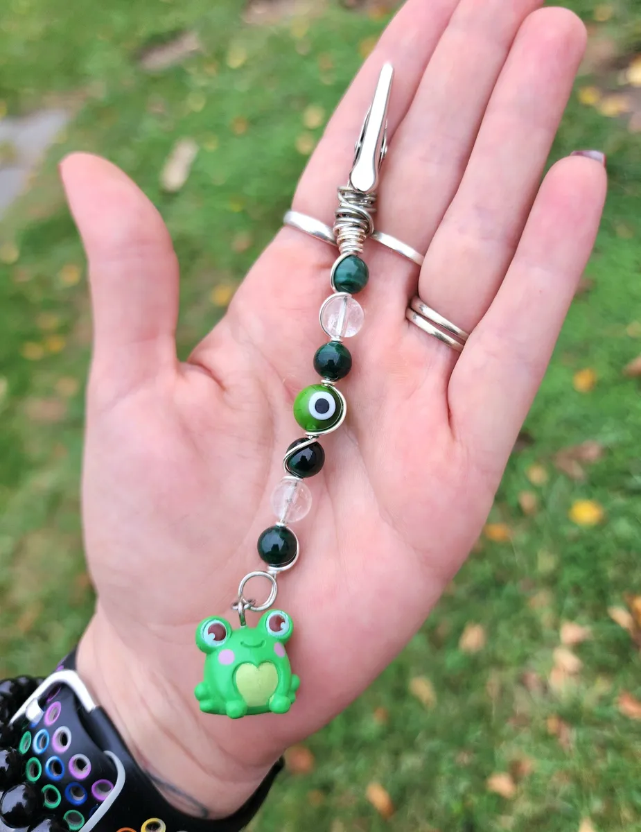 Introducing our exotic and enchanting hand wire-wrapped, Malachite and Clear Quartz Roach Clips with a whimsical Frog Charm! Crafted with utmost precision and care, these stunning accessories are a must-have for any cannabis connoisseur or nature enthusiast. The product image showcases a delightful collage of vibrant beads, capturing the essence of earthy beauty. Elevate your smoking experience with these unique roach clips, and let the magical combination of Malachite, Clear Quartz, and the adorable frog charm transport you to a world of pure joy and tranquility.