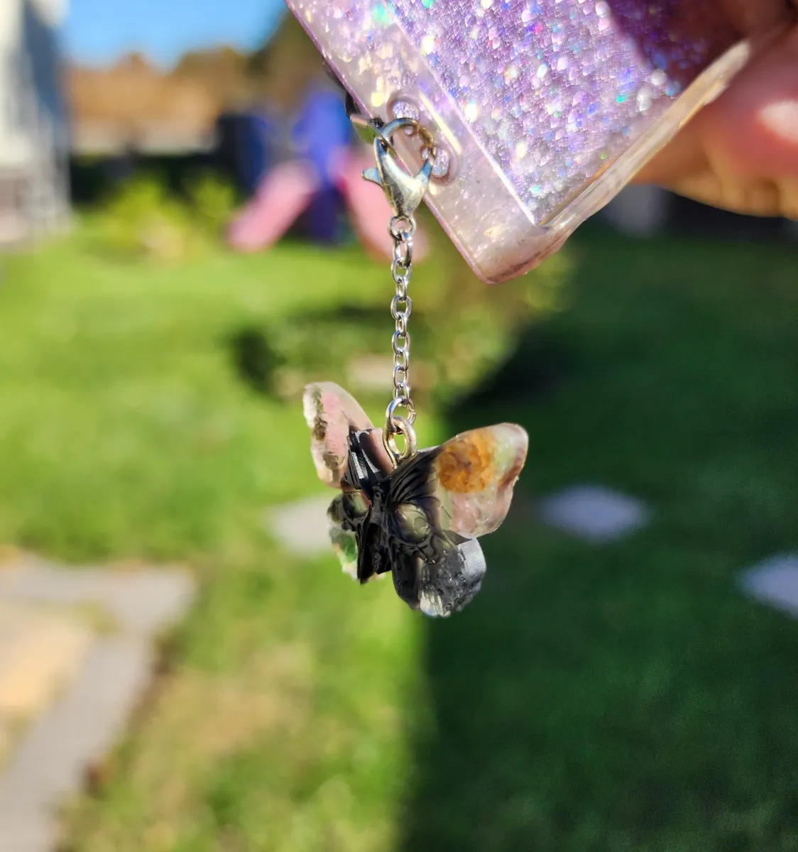 Mixed Tourmaline Butterfly Skull Phone Charm