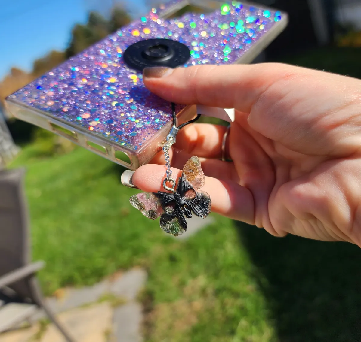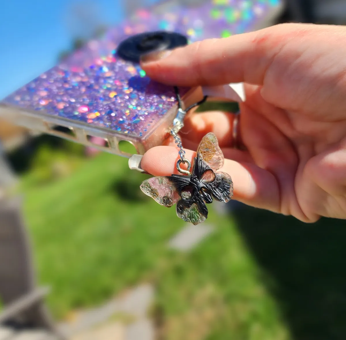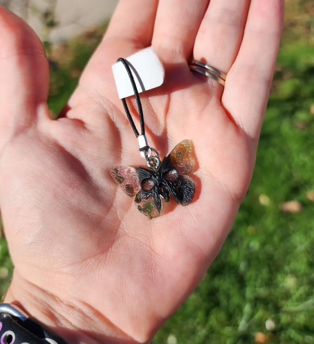 Add a touch of mystical elegance to your phone with our Mixed Tourmaline Butterfly Skull Phone Charm! This unique charm features a delicate butterfly design adorned with vibrant mixed tourmaline gemstones, creating a stunning and eye-catching accessory for your device. The intricate skull detail adds a touch of edgy flair, making it the perfect combination of beauty and edge. Simply attach it to your phone and let it sparkle and shine as you go about your day. Elevate your phone game with this charming accessory from our craft business collection!