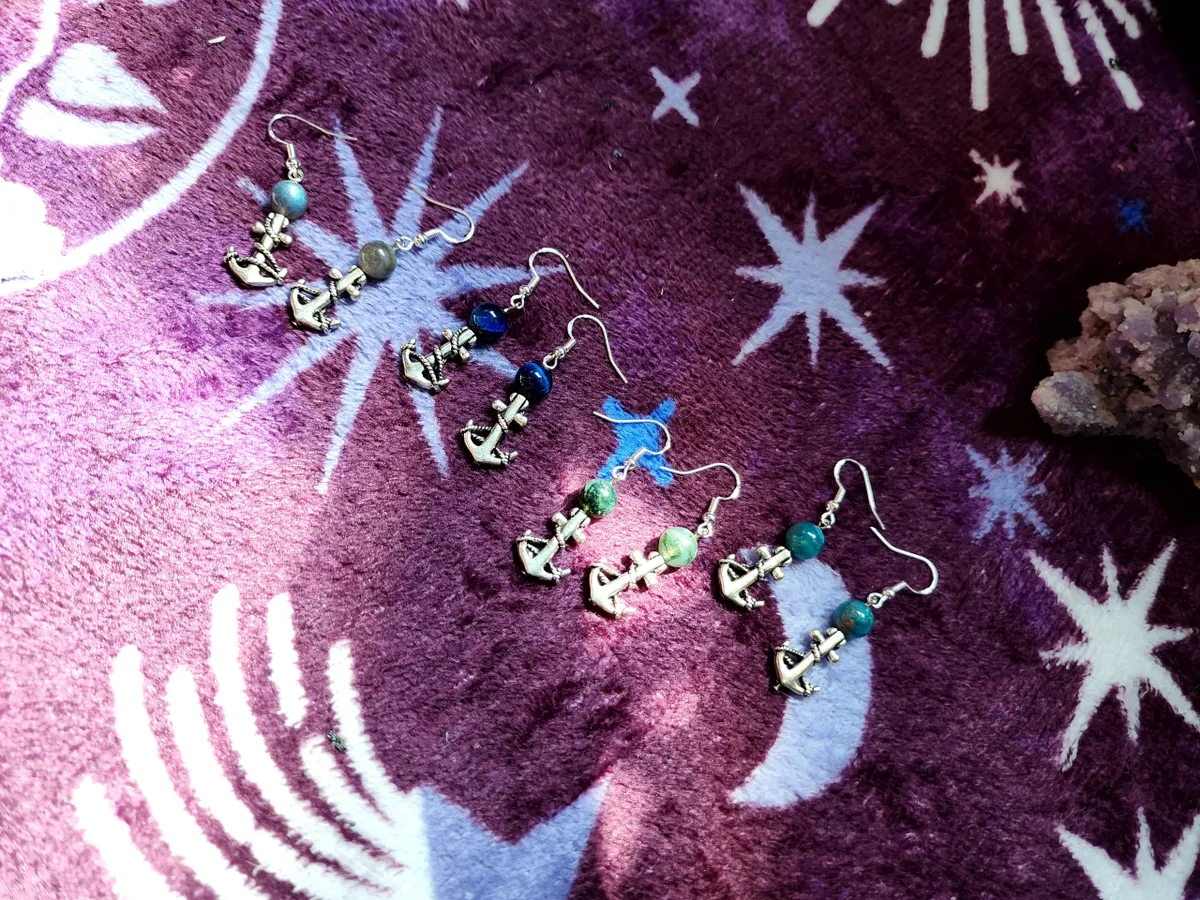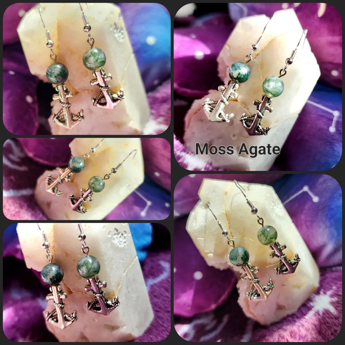 Introducing our exquisite Moss Agate Anchor Earrings , featuring the mesmerizing gemstones Moss Agate. Handcrafted with precision, these earrings are a true testament to the artistry and craftsmanship that defines our craft business. The Crystal Earrings with Anchor are a perfect blend of elegance and bohemian charm. Each pair is meticulously designed to showcase the natural beauty of the gemstones, offering a unique and captivating accessory for any occasion. Labradorite, with its enchanting play of colors, adds a touch of mystique to these earrings. Moss Agate, with its verdant hues, symbolizes growth and abundance. The earrings are delicately suspended from silver hooks, adding a touch of sophistication to their overall design. The contrasting combination of the vibrant gemstones against the silver accentuates their natural beauty, creating a striking and eye-catching piece of jewelry. Whether you’re attending a formal event or simply want to elevate your everyday style, our Crystal Earrings with Anchor are the perfect accessory to complete your look