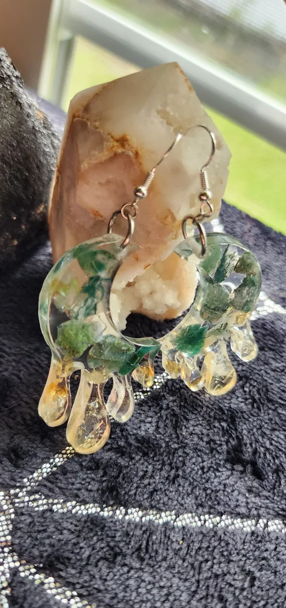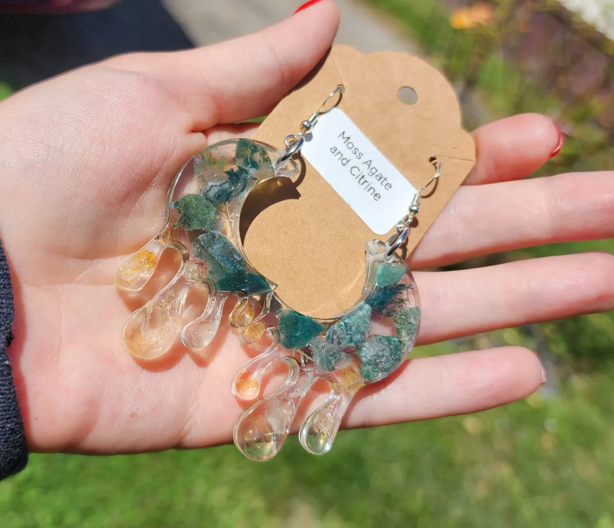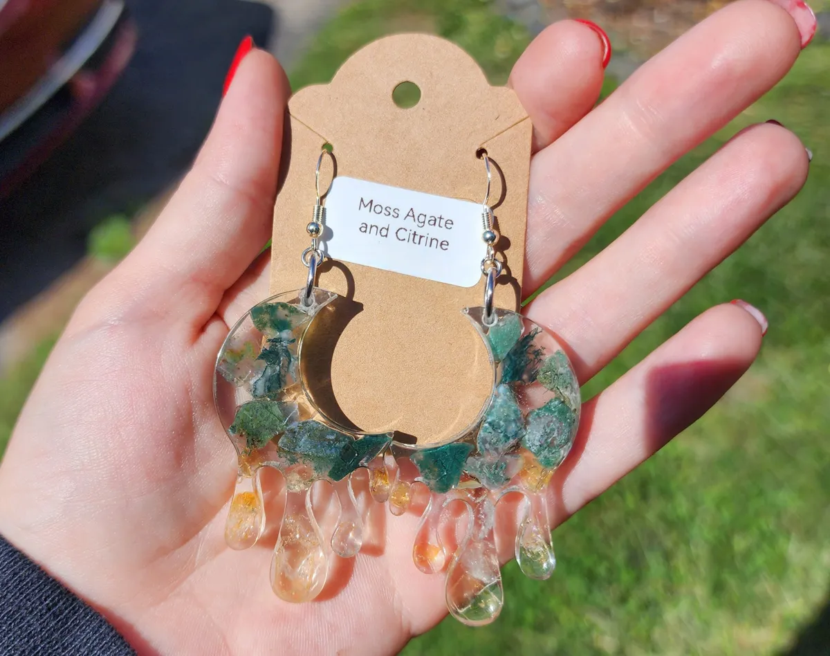 As a proud member of the craft_business community, we take pride in creating unique and timeless pieces that reflect our passion for craftsmanship. Elevate your style and embrace the beauty of nature with our Moss Agate and Citrine Moon Earrings.