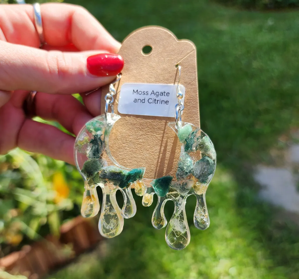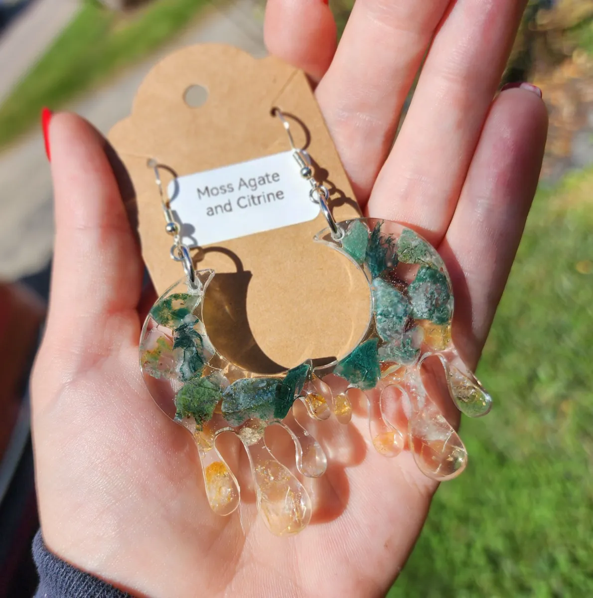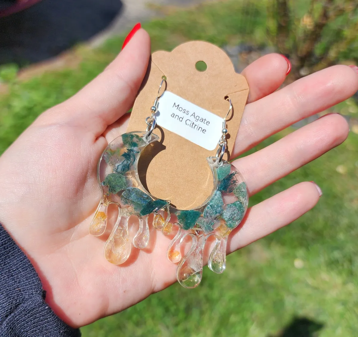 As a proud member of the craft_business community, we take pride in creating unique and timeless pieces that reflect our passion for craftsmanship. Elevate your style and embrace the beauty of nature with our Moss Agate and Citrine Moon Earrings.