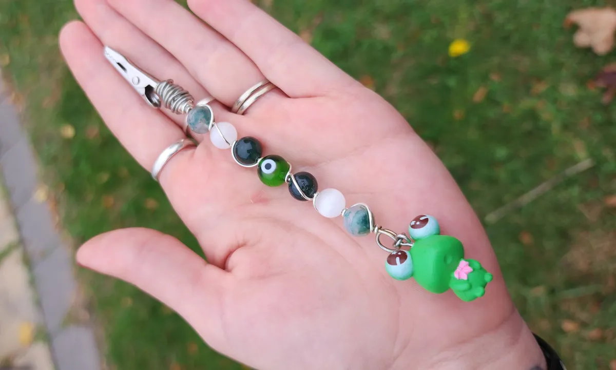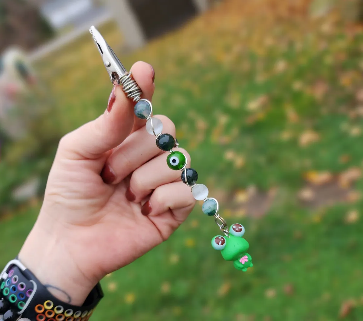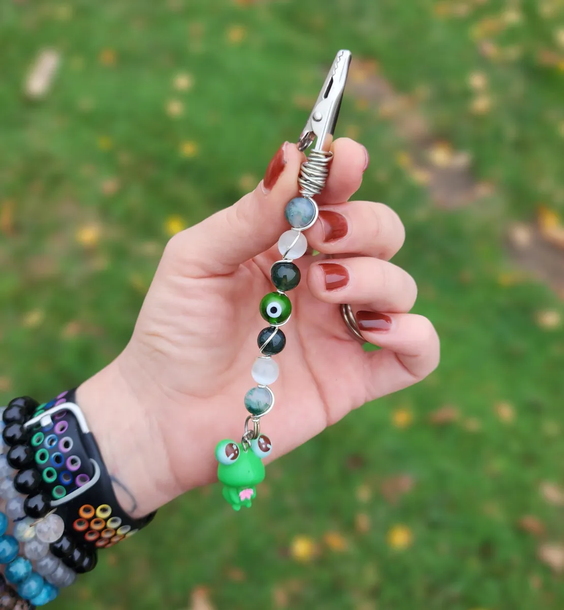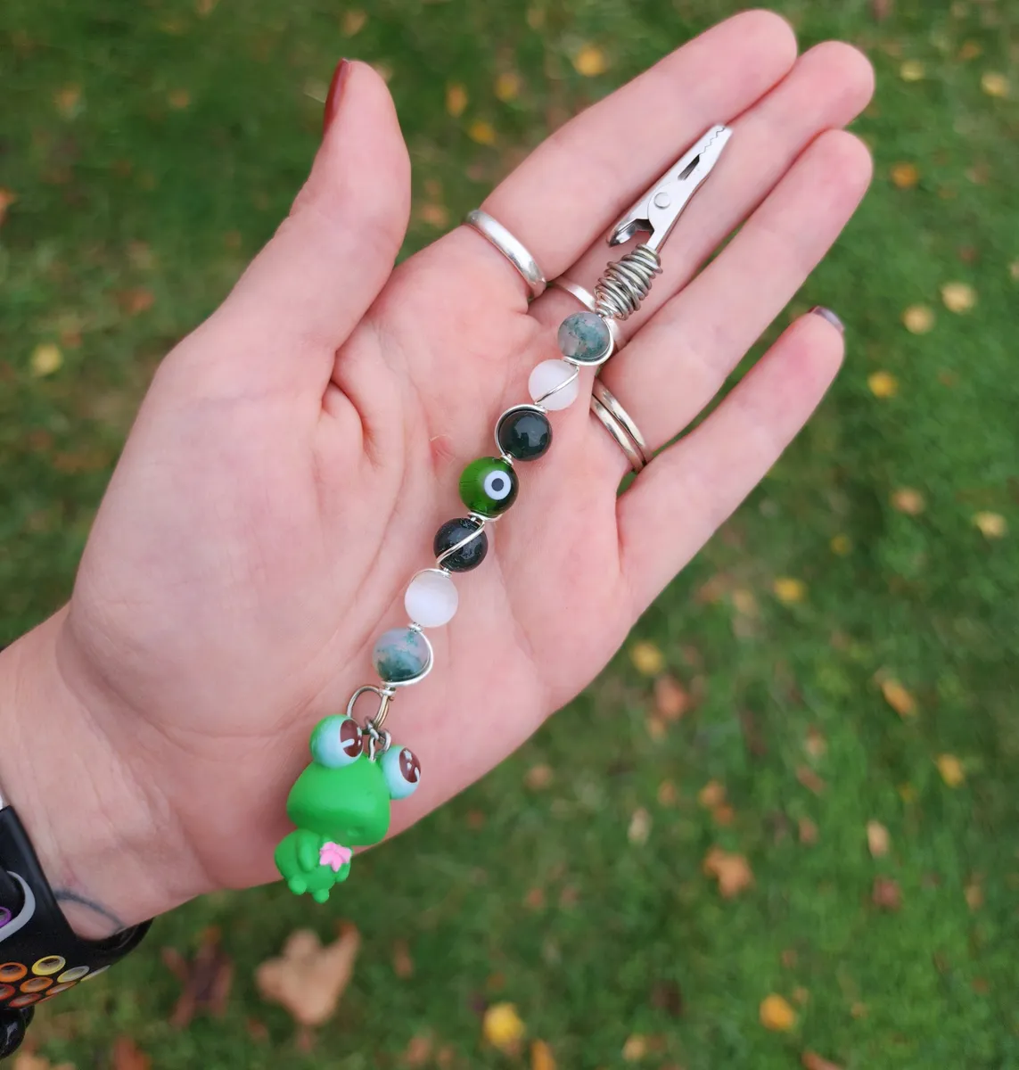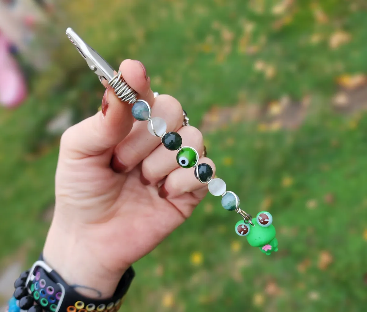 Introducing our hoppingly-awesome Moss Agate and Selenite Roach Clips with Frog Charm! This unique craft_business creation is a must-have for all you nature enthusiasts out there. Not only are these roach clips perfect for keeping your rolled delights secure, but they also add a touch of whimsy to your style game. The exquisite green beads and adorable frog charm make these clips a true statement piece. It’s like Mother Nature herself whispered some crafty secrets. So, whether you’re chilling in the forest or strutting your stuff in the concrete jungle, these roach clips will have you feeling frog-tastic!