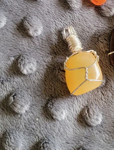 Hand Made Wire Wrapped Orange Calcite Pendant.