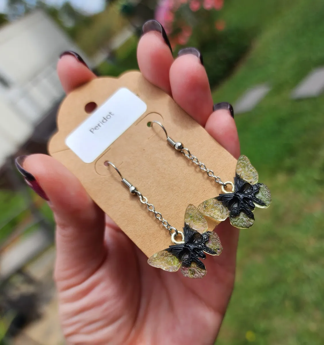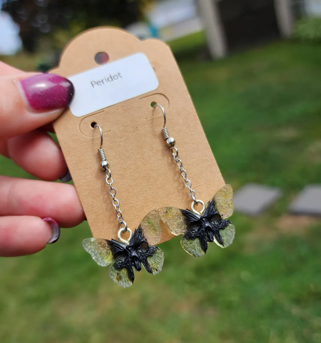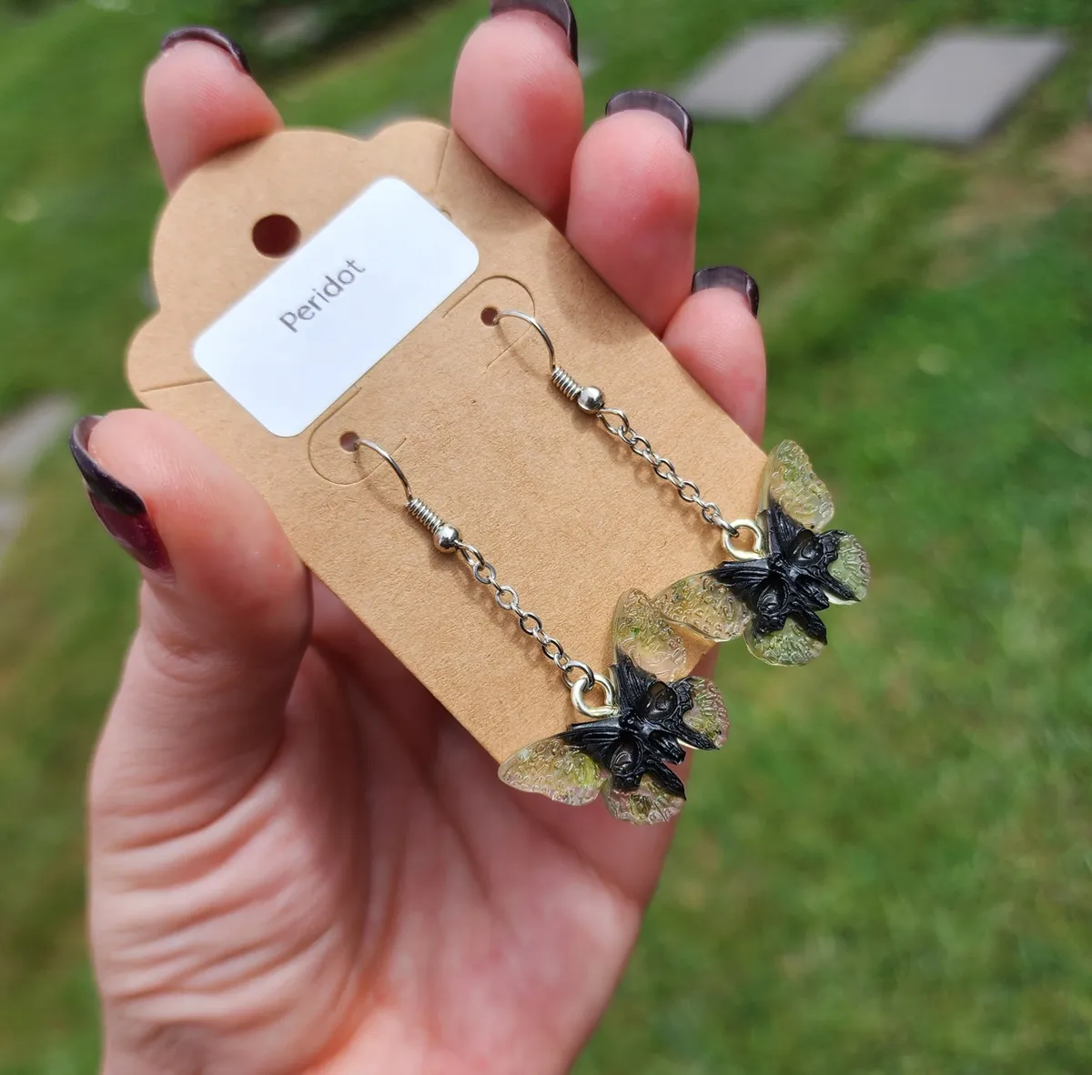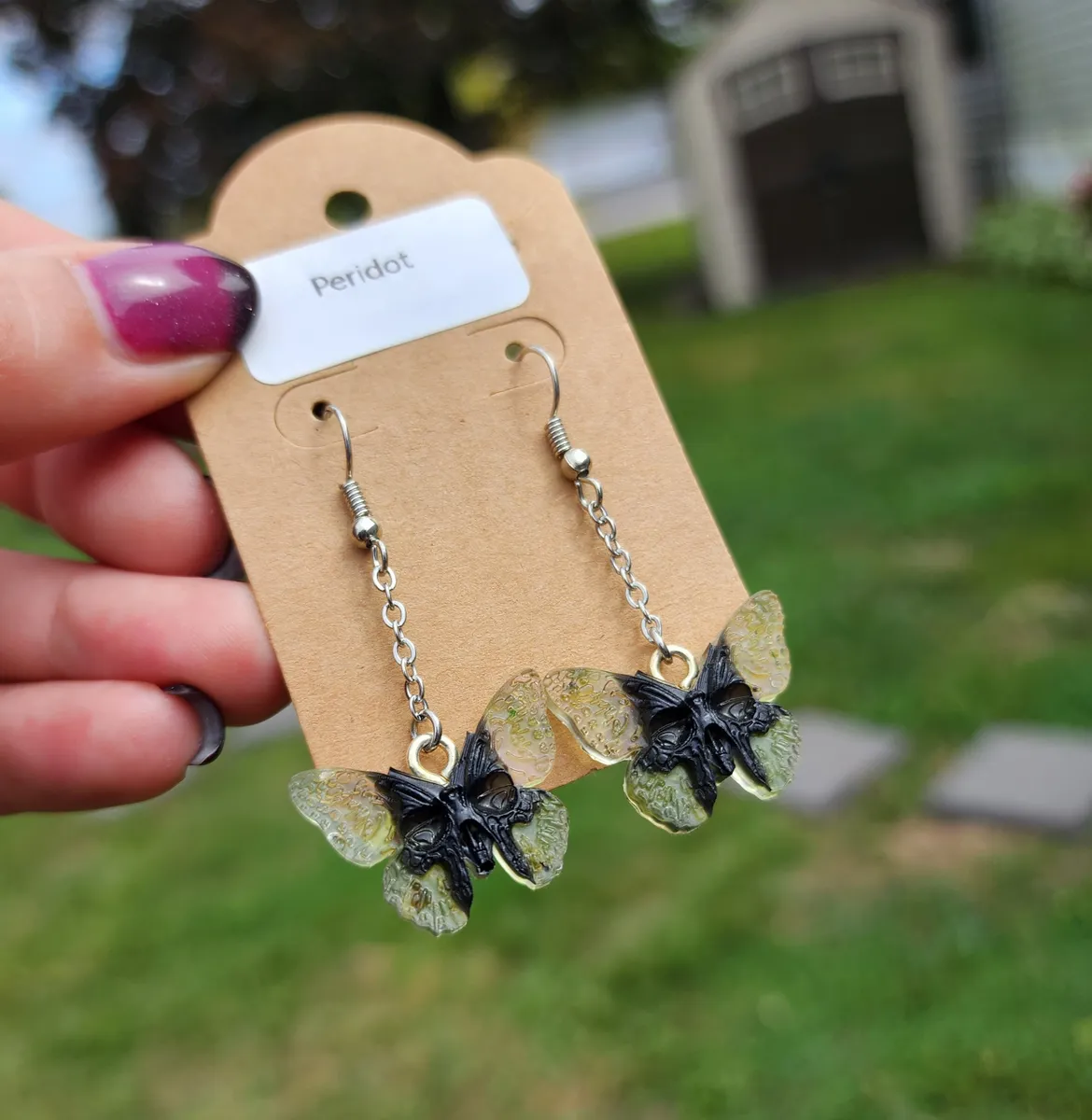 Introducing our stunning Peridot Butterfly Skull Earrings! These unique and eye-catching earrings are perfect for anyone looking to make a statement. Crafted with intricate detail, these earrings feature a beautiful combination of peridot gemstones, butterfly wings, and skull . Each pair is handmade with care and attention to detail, ensuring that you receive a one-of-a-kind piece. Whether you’re dressing up for a special occasion or adding a touch of edgy flair to your everyday look, these earrings are sure to turn heads. Treat yourself or give them as a thoughtful gift to a loved one. Upgrade your accessory game with our Peridot Butterfly Skull Earrings today!