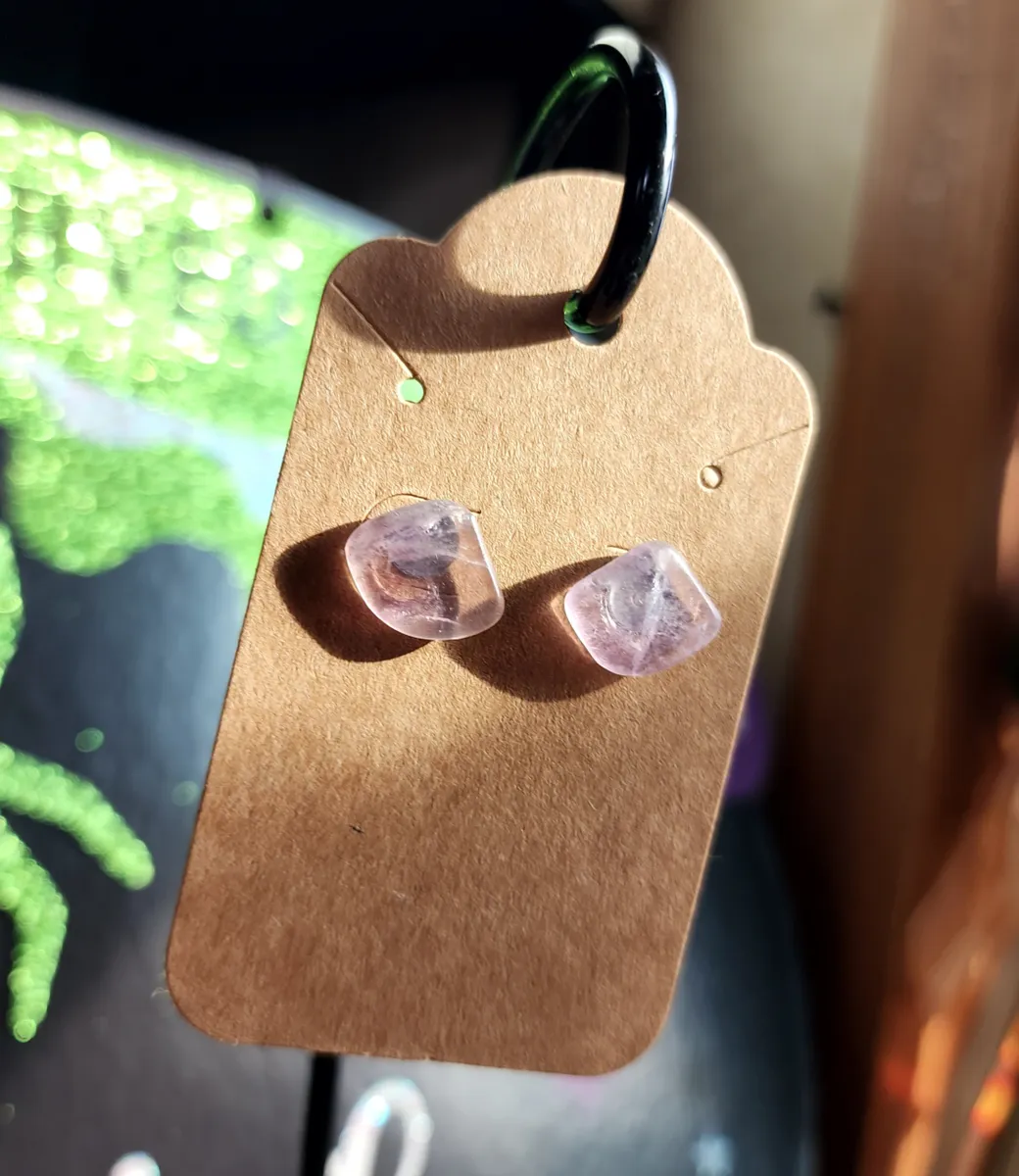 Indulge yourself or surprise a loved one with these Purple Fluorite Post Earrings, Crystal Post Earrings. Embrace the beauty of nature and the art of craftsmanship with this enchanting piece. Elevate your style and let your inner radiance shine through!