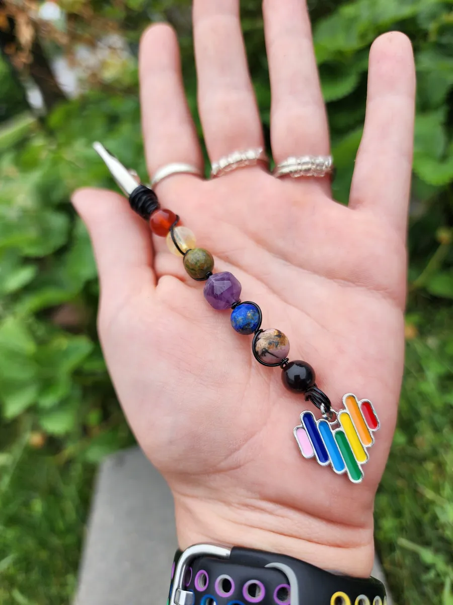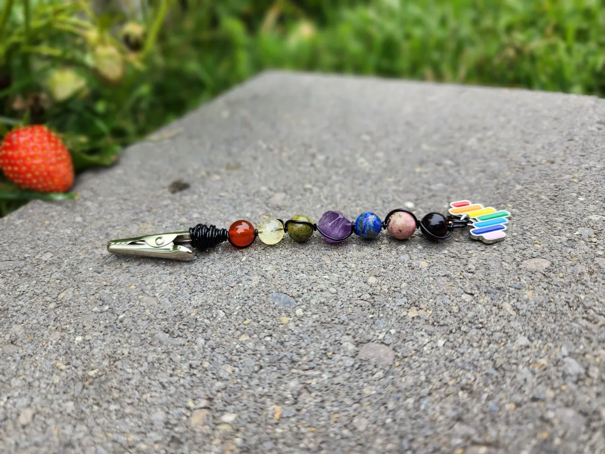 Rainbow Pride Crystal Roach Clips include the following Crystal beads; Carnelian, Citrine, Unakite, Amethyst, Lapis Lazuli, Rhodonite and Red Tigers Eye.