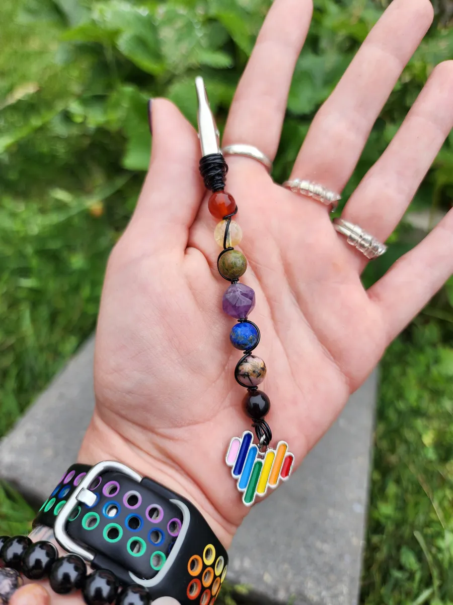 Rainbow Pride Crystal Roach Clips, Carnelian, Citrine, Unakite, Amethyst, Lapis Lazuli, Rhodinite, Red Tigers Eye