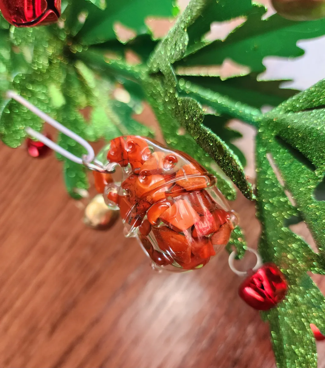 Introducing our charming Red Jasper Gnome Ornament, the perfect whimsical addition to your holiday decor! Crafted with care and attention to detail, this delightful little gnome will bring a touch of enchantment to any setting. With Red Jasper inside, he is ready to sprinkle joy and laughter wherever he goes.