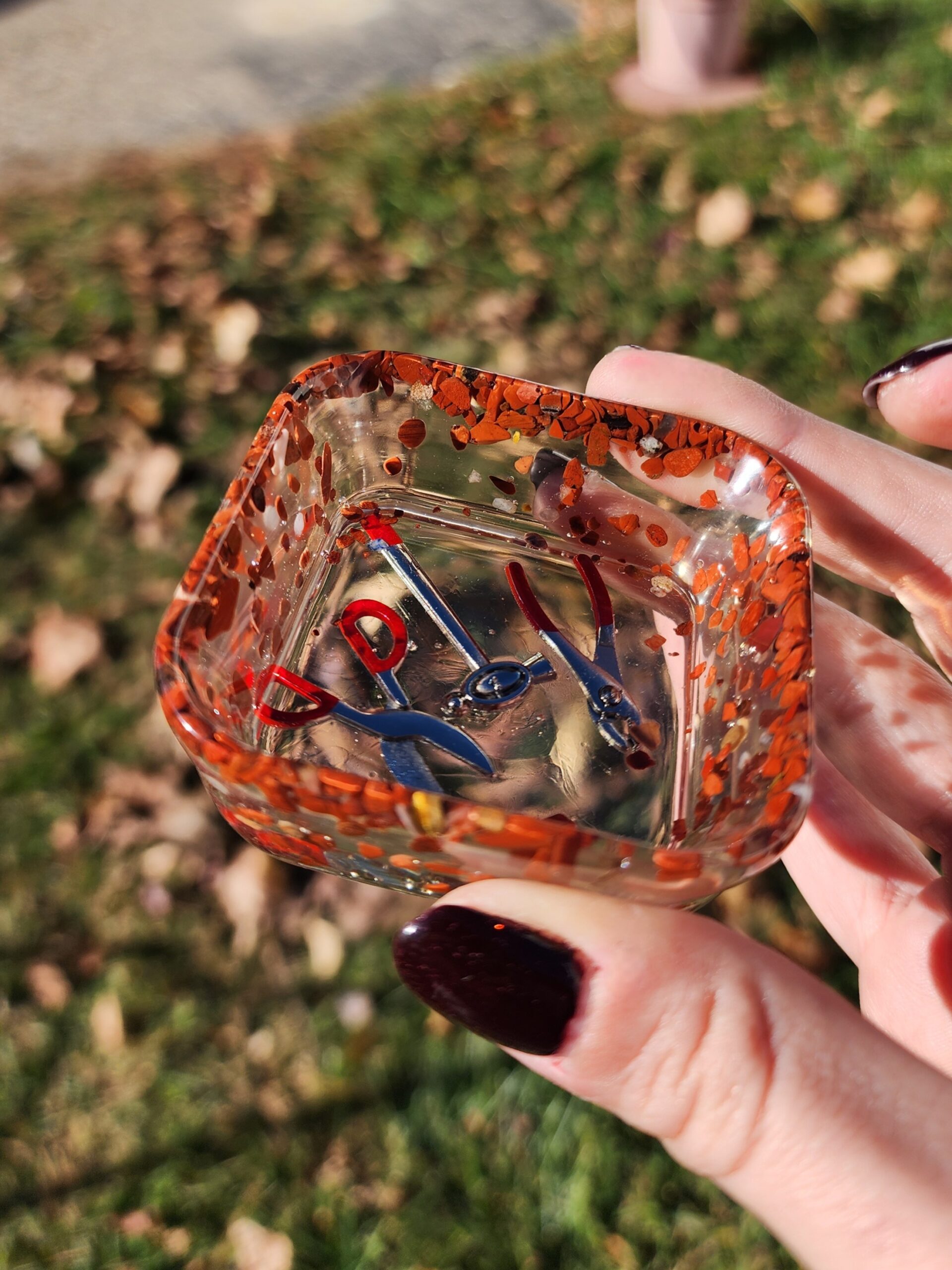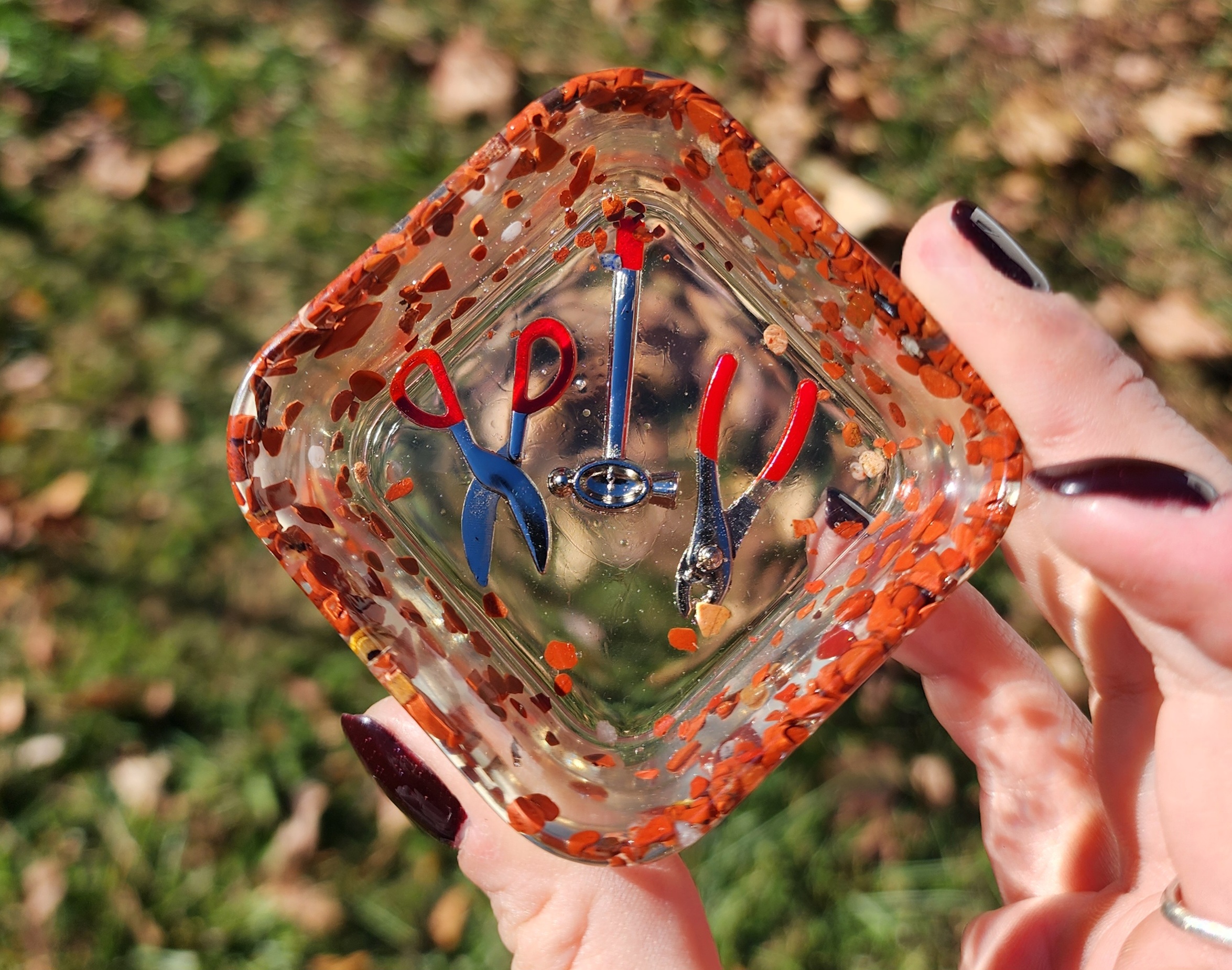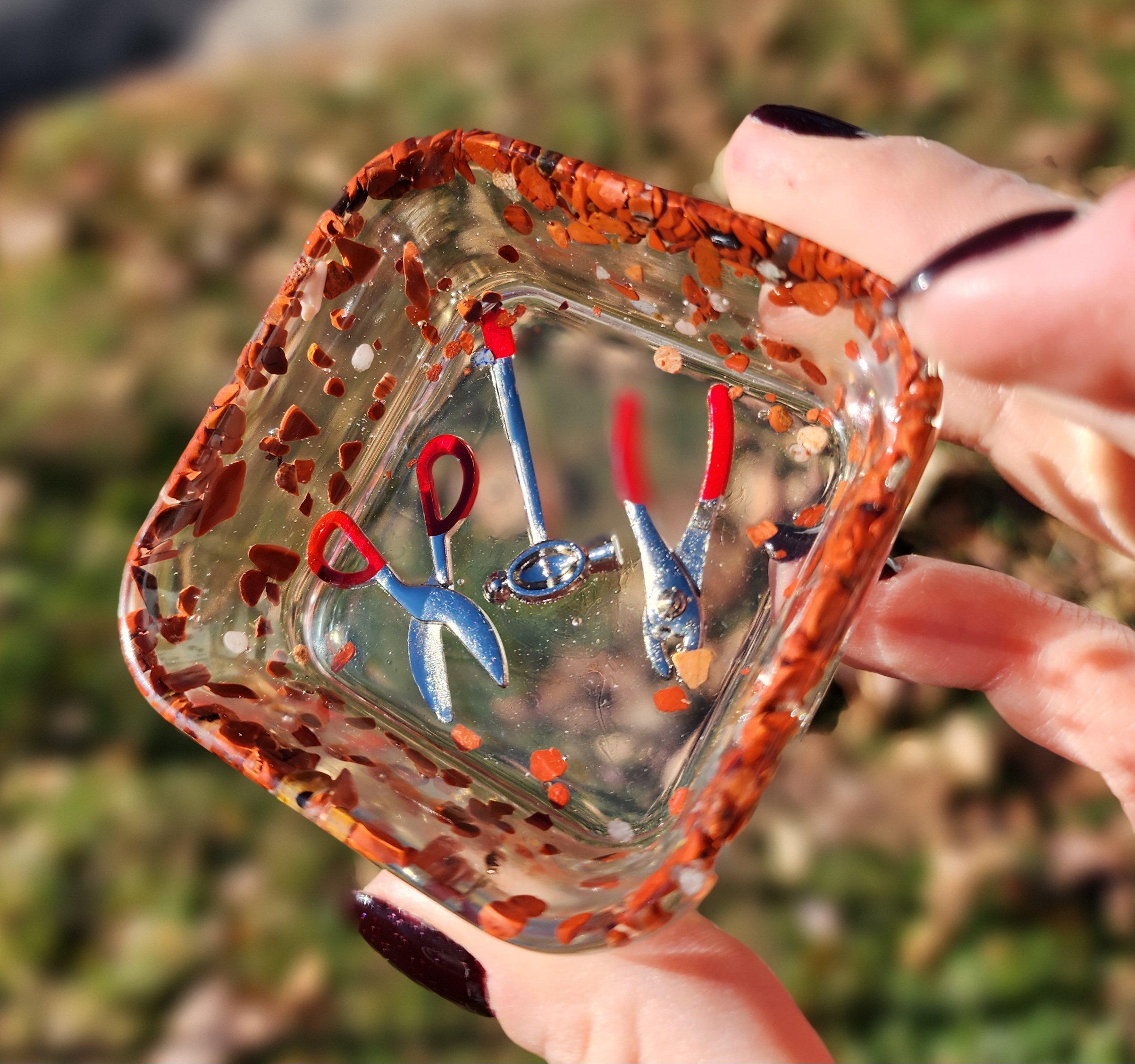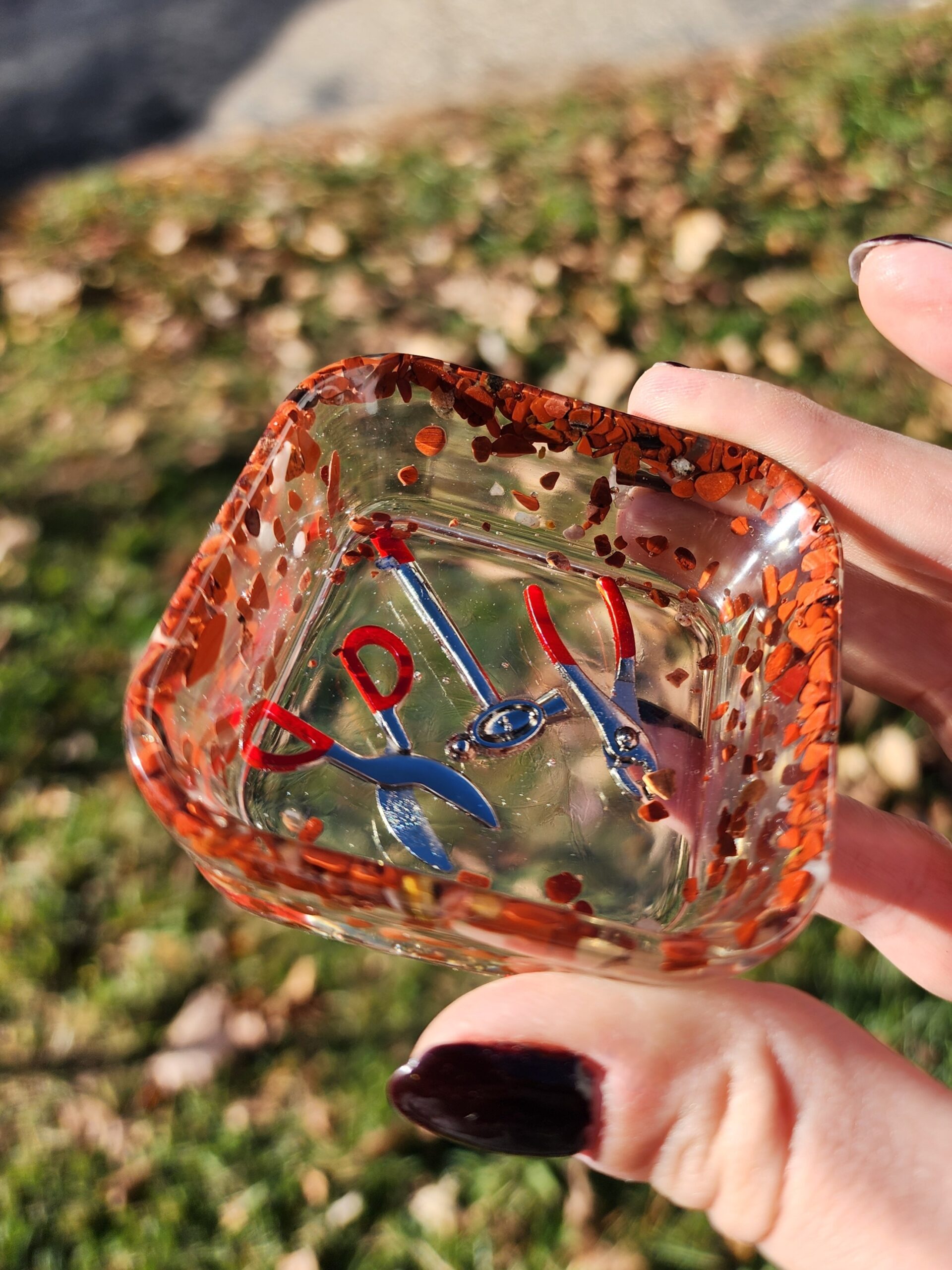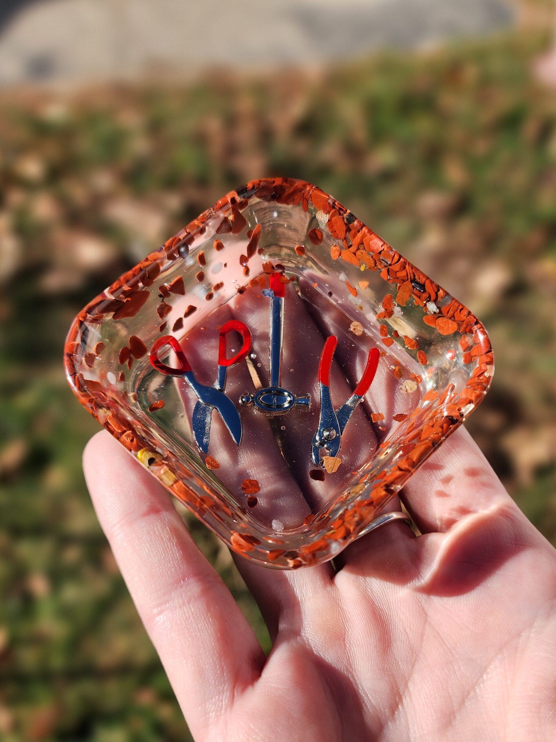 Introducing our quirky and captivating Red Jasper Mini Bowl with Tool Trinkets! This little gem is not your ordinary bowl; it’s a delightful burst of color that will add charm to any space. Crafted with finesse, this red bowl sits proudly atop your table, demanding attention like a diva! Our mini bowl also comes with a set of tool trinkets inside the bottom of the dish to add a touch of whimsy and creativity to your day. Get your craft on with a wink and a smile!
