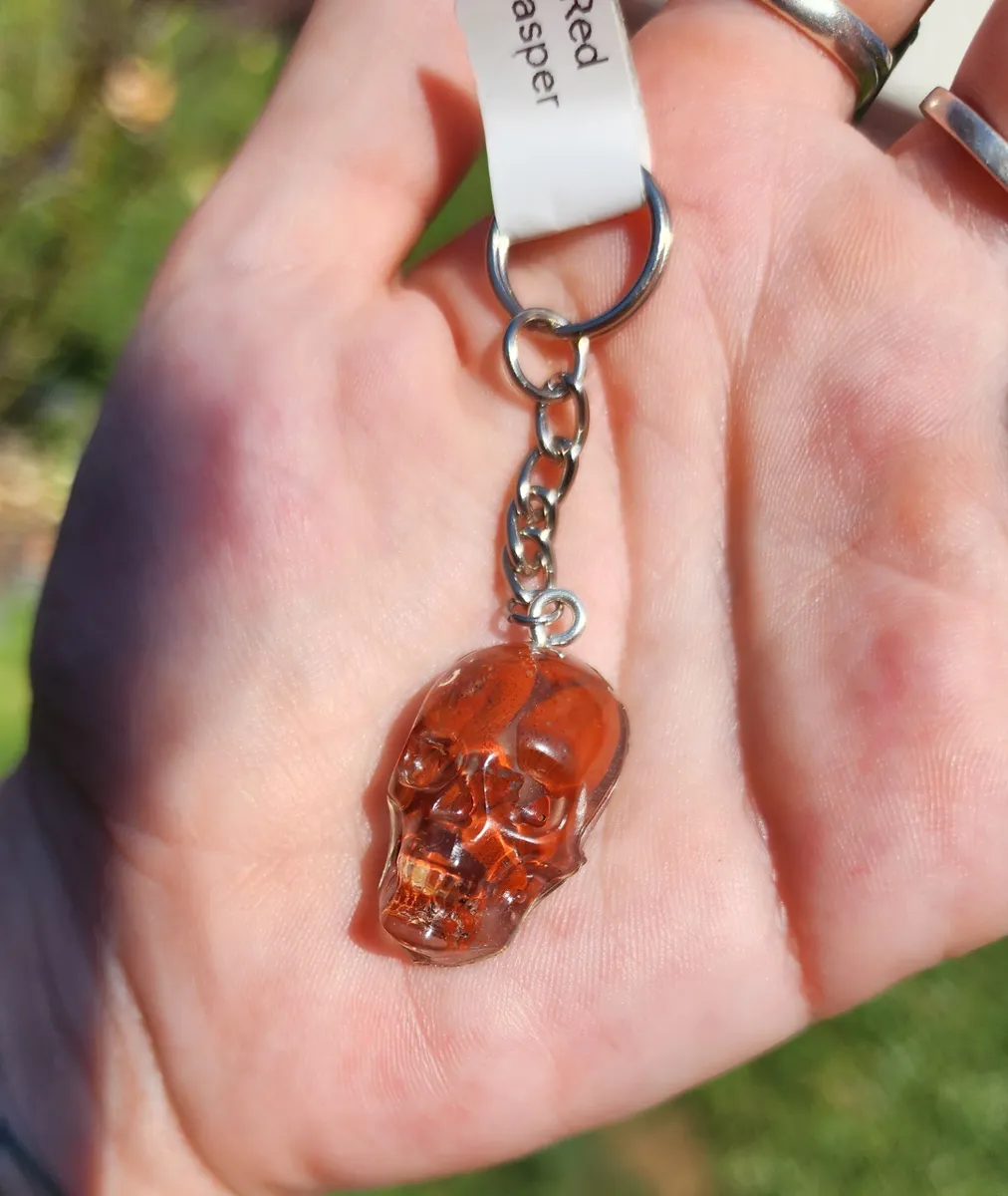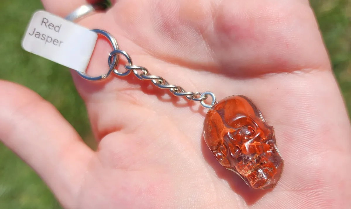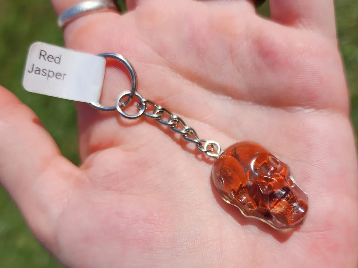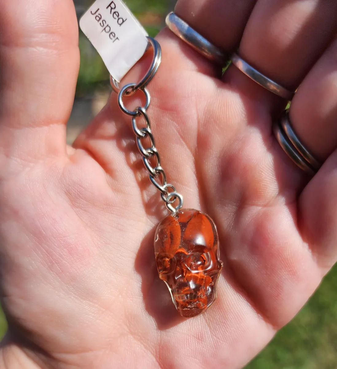 Add a touch of edgy style to your keys with our Red Jasper Skull Keychain! This unique accessory features a detailed skull design with vibrant red jasper stone . Made from high-quality plastic with a sturdy metal ring, this keychain is both durable and eye-catching. Whether you’re a fan of skulls or just looking to spice up your key collection, this keychain is the perfect choice. Stand out from the crowd and make a statement with our Red Jasper Skull Keychain! Perfect for craft business enthusiasts looking for that extra touch of personality.