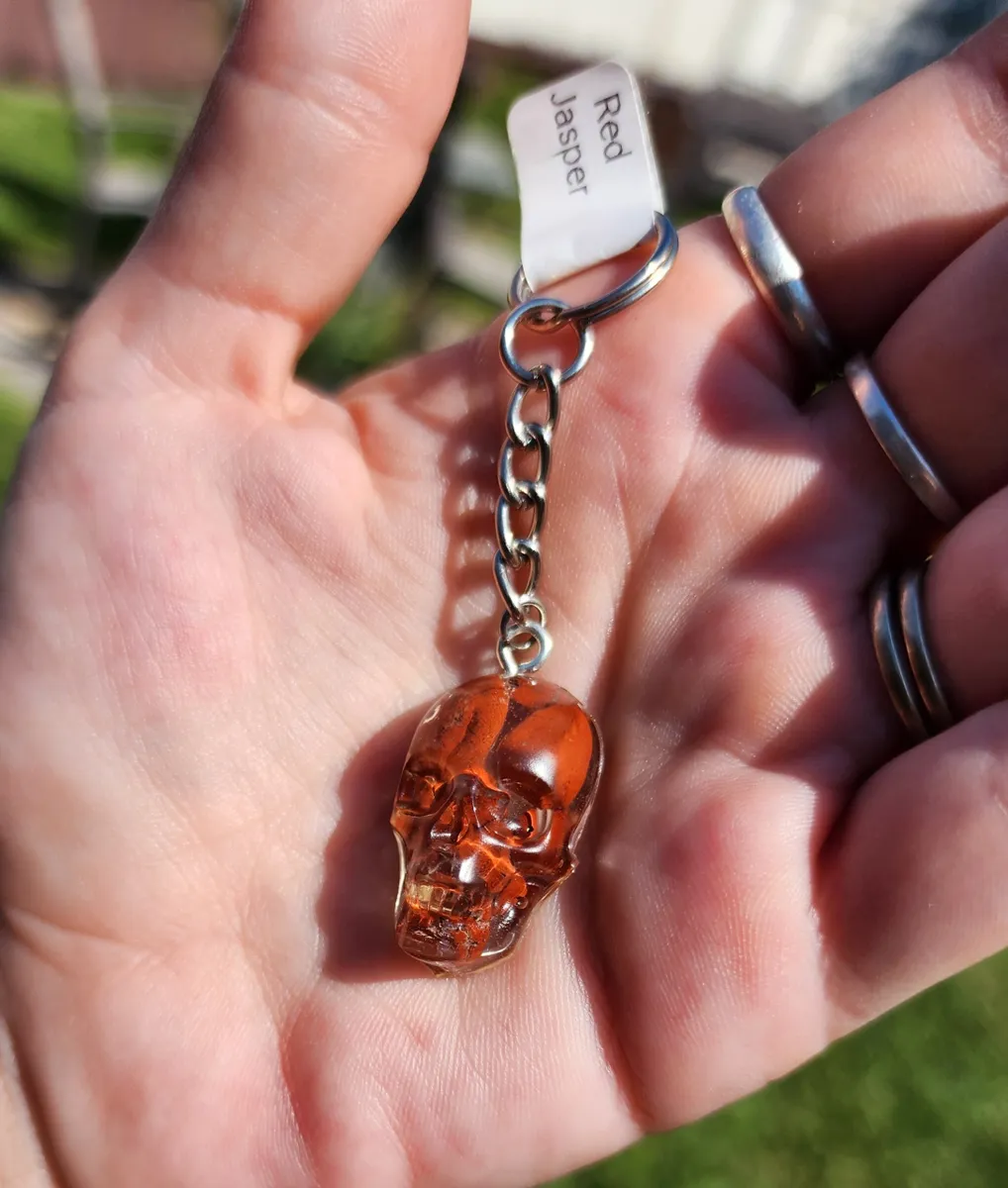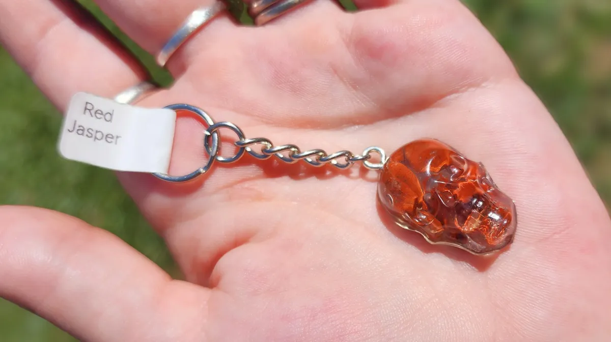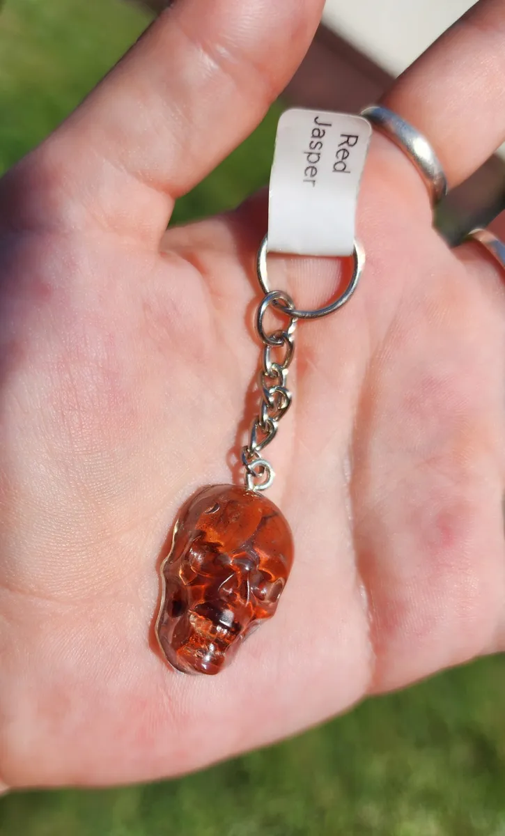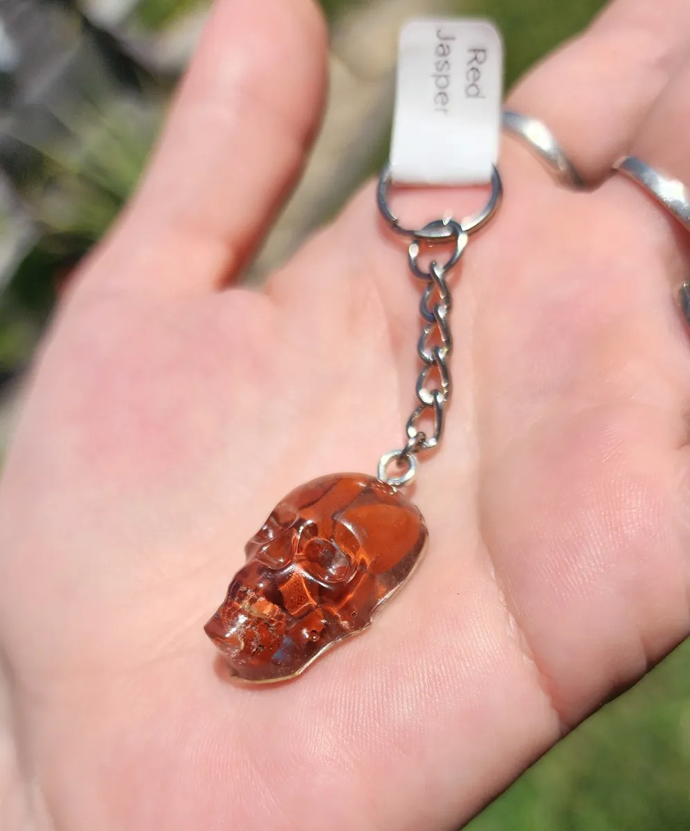 Add a touch of edgy style to your keys with our Red Jasper Skull Keychain! This unique accessory features a detailed skull design with vibrant red jasper stone . Made from high-quality plastic with a sturdy metal ring, this keychain is both durable and eye-catching. Whether you’re a fan of skulls or just looking to spice up your key collection, this keychain is the perfect choice. Stand out from the crowd and make a statement with our Red Jasper Skull Keychain! Perfect for craft business enthusiasts looking for that extra touch of personality.