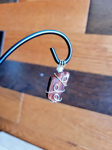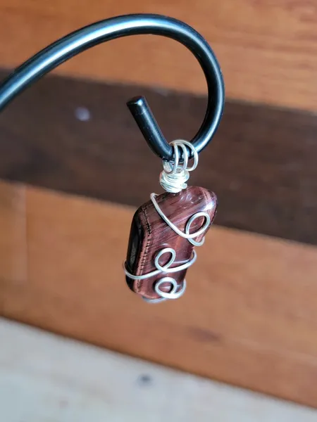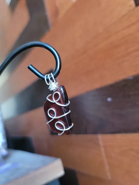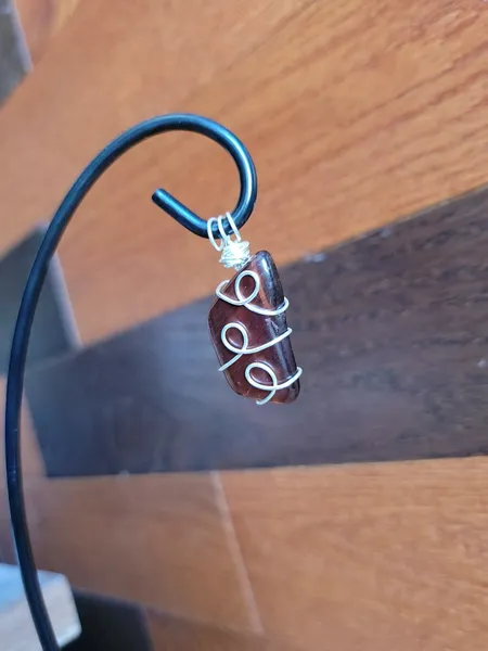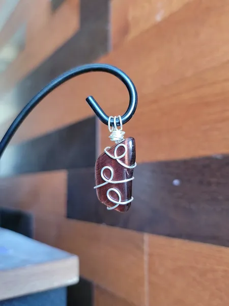 Introducing the fierce and fabulous Red Tigers Eye Wire Wrapped Pendant Necklace! This stunning piece features a bold red tigers eye stone wrapped in intricate wire detailing, making it a unique and eye-catching accessory. The pendant hangs elegantly on a black cord necklace, creating a striking focal point. Perfect for adding a pop of color and personality to any outfit, this necklace is a must-have for any craft lover looking to stand out from the crowd. Get ready to unleash your inner wild side with this Red Tigers Eye pendant!