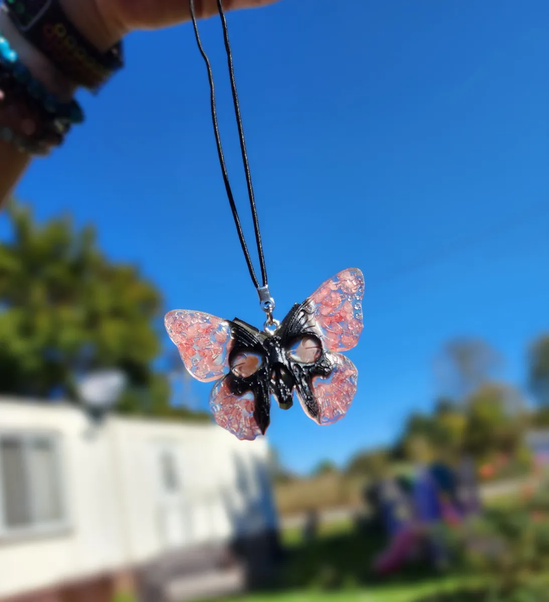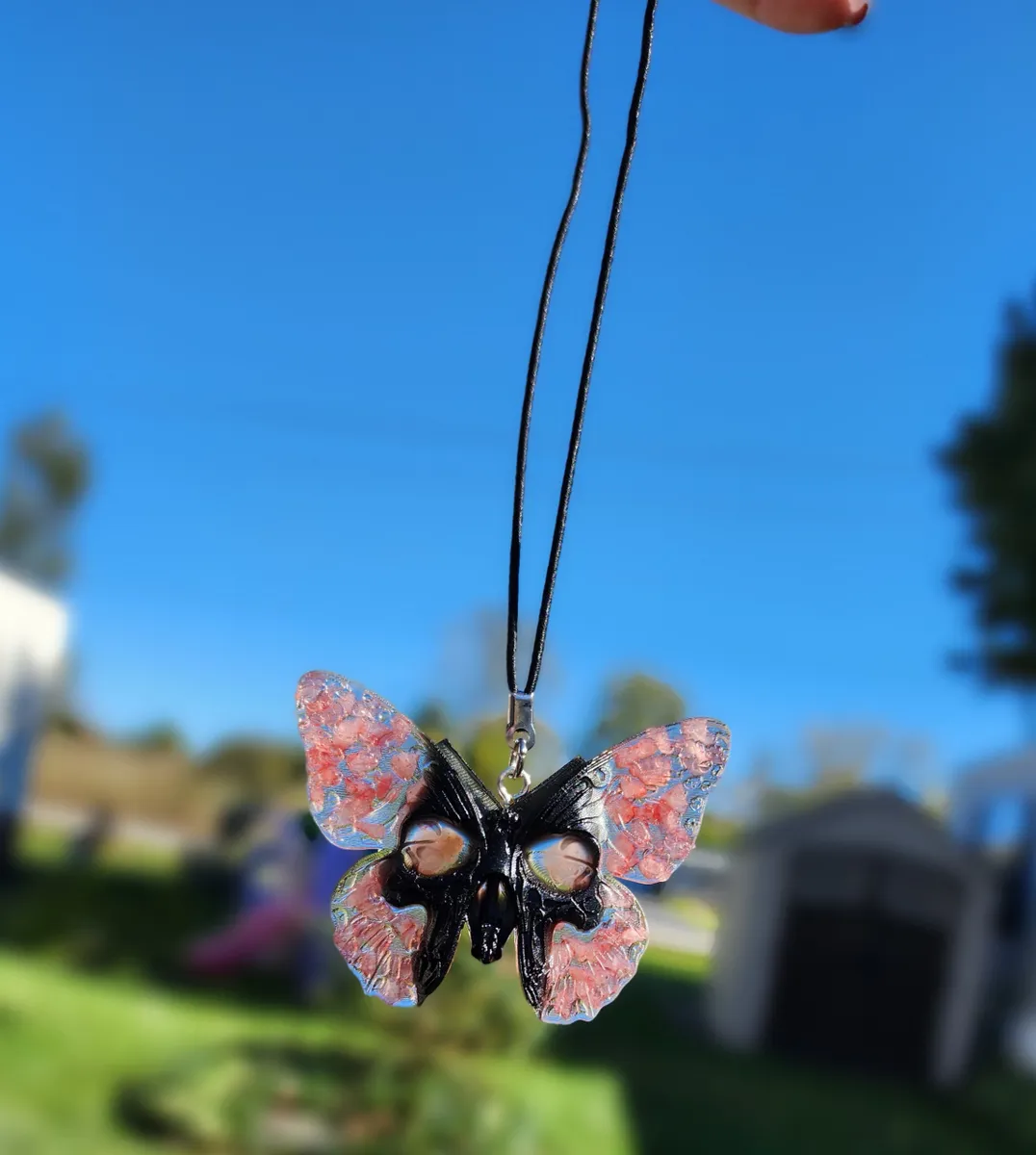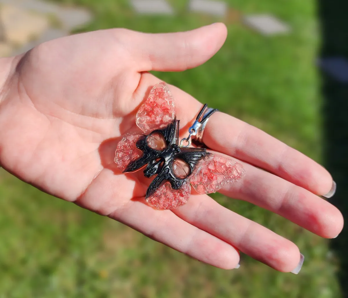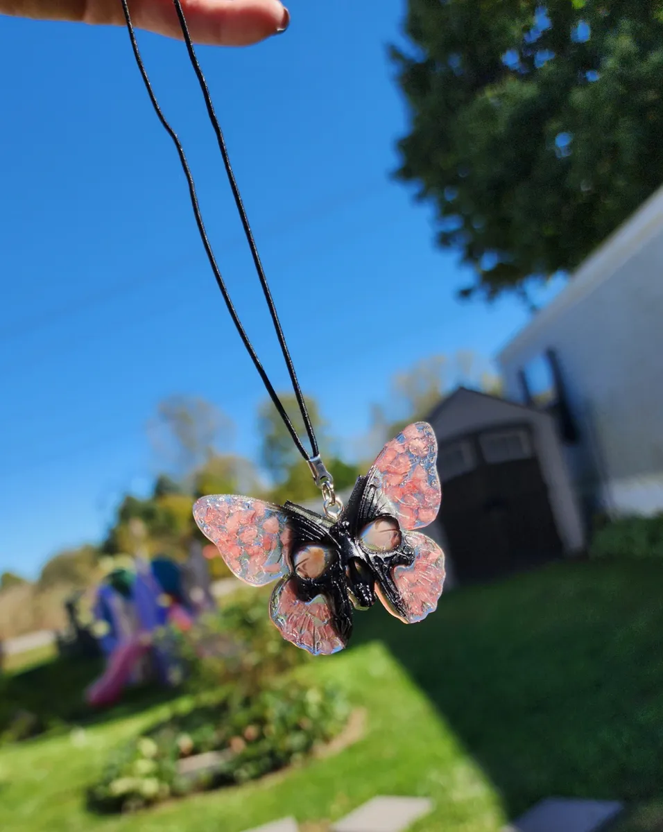 Add a touch of whimsical charm to your space with our stunning Rose Quartz Butterfly Skull Hanger! This unique ornament features a beautiful butterfly shape adorned with a delicate rose quartz gemstone, adding a pop of color and positive energy to any room. Hang it in your home, office, car or garden for a touch of enchantment and style. Handcrafted with care and attention to detail, this hanger is perfect for those who appreciate the beauty of nature and art. Embrace your creativity and showcase your love for all things magical with this one-of-a-kind piece. Perfect for any craft_business enthusiast!